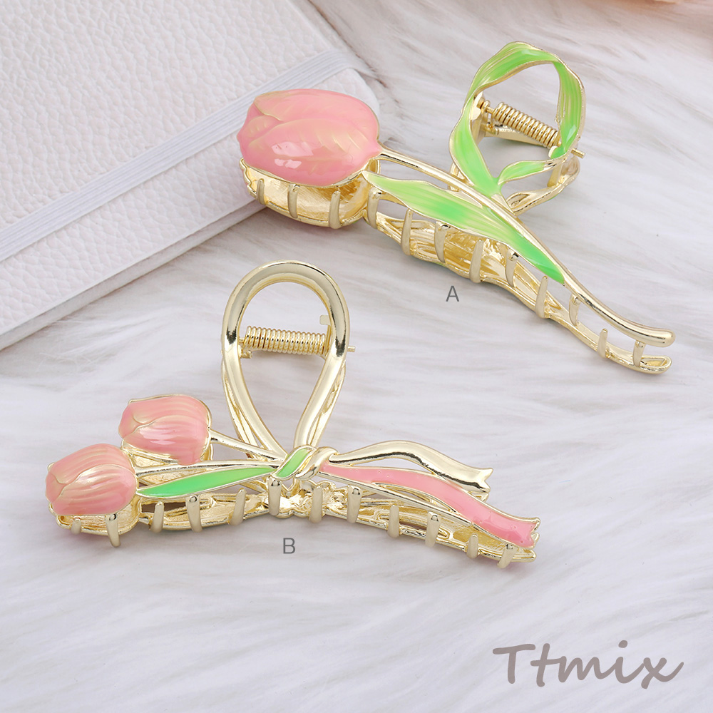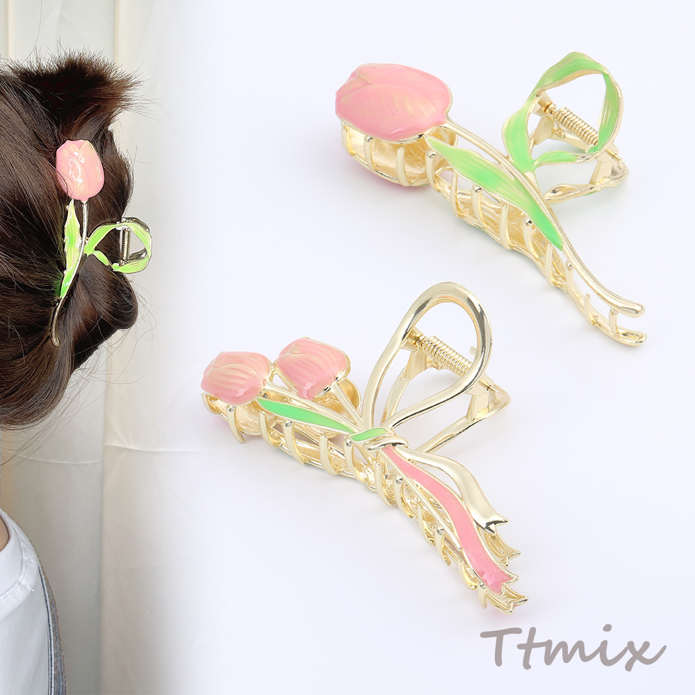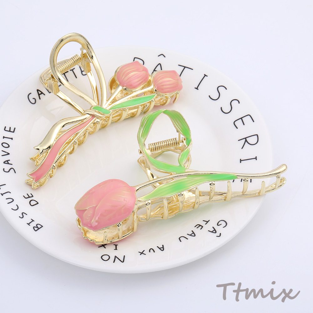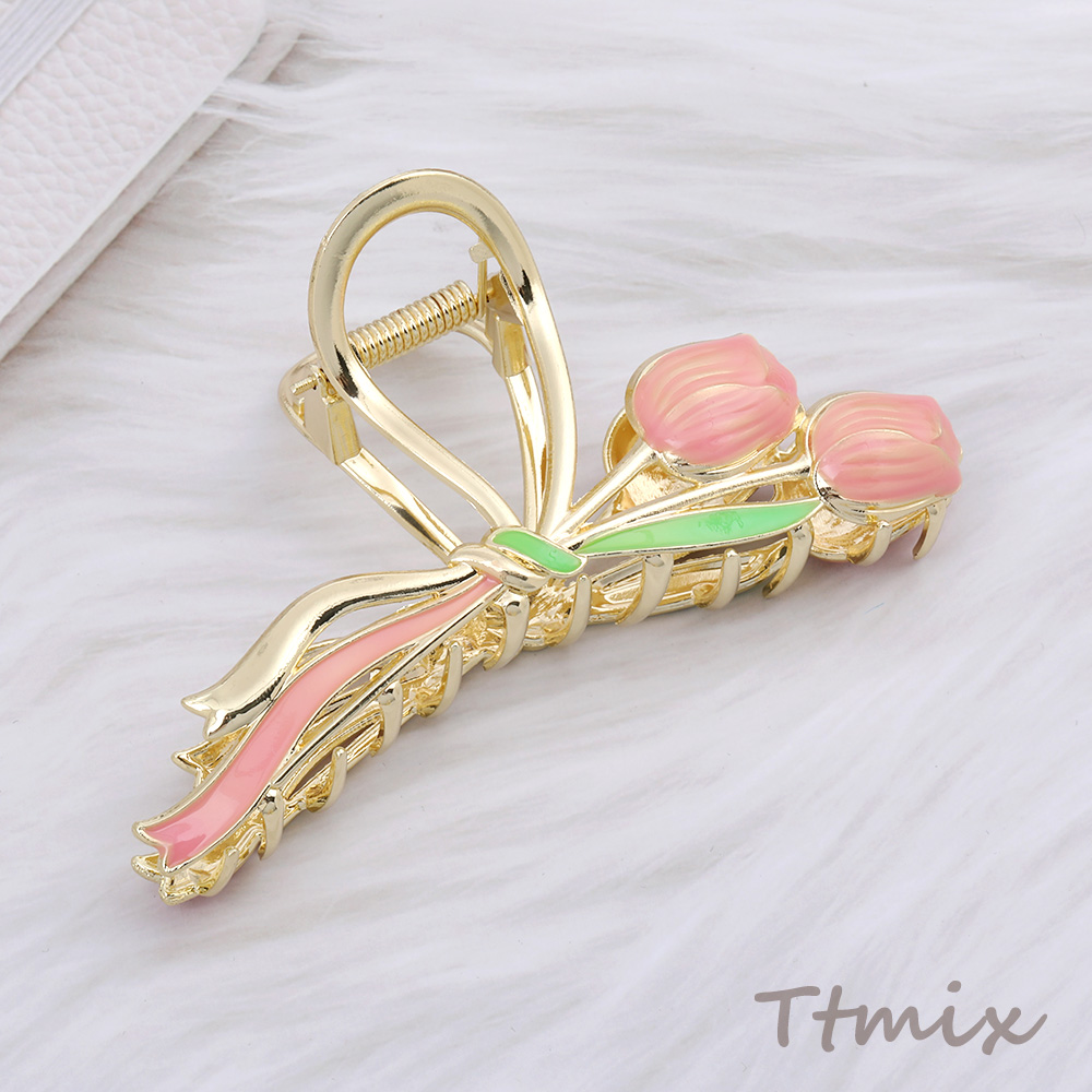 バンスクリップ メタルヘアクリップ チューリップモチーフデザイン ゴールド