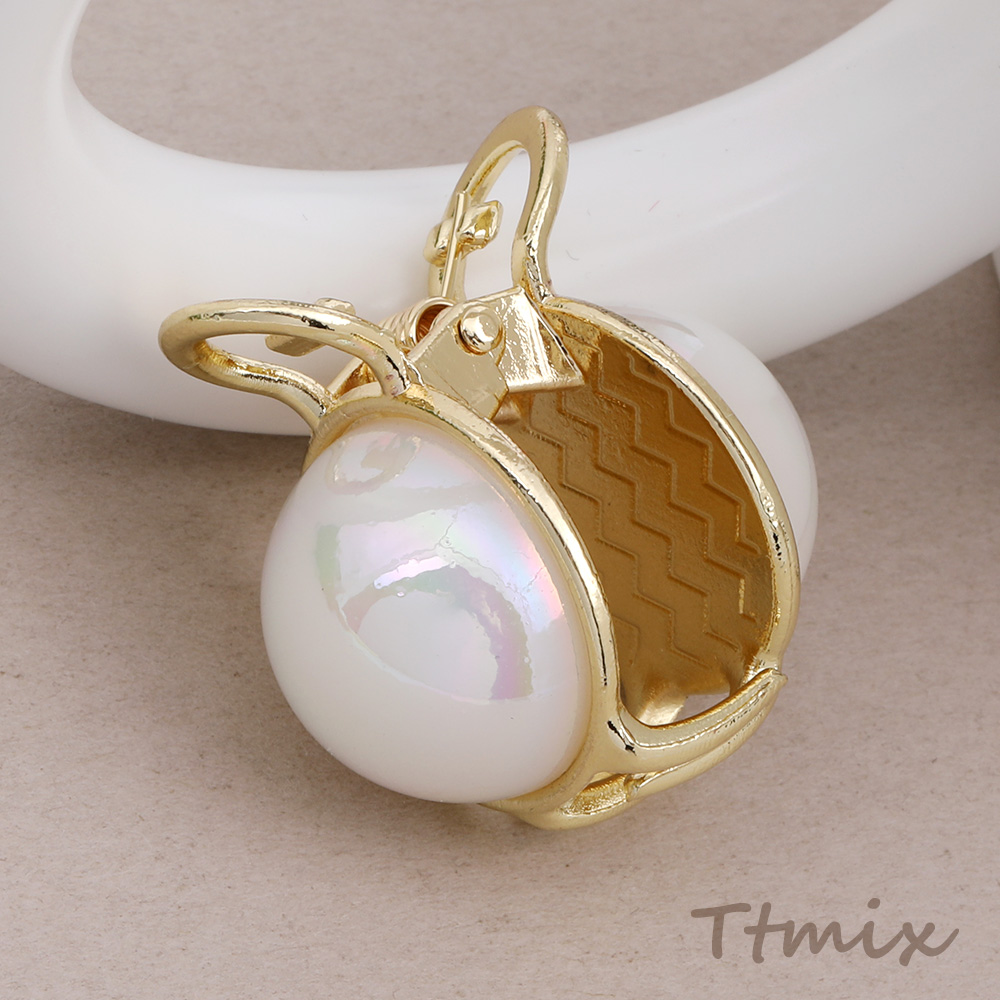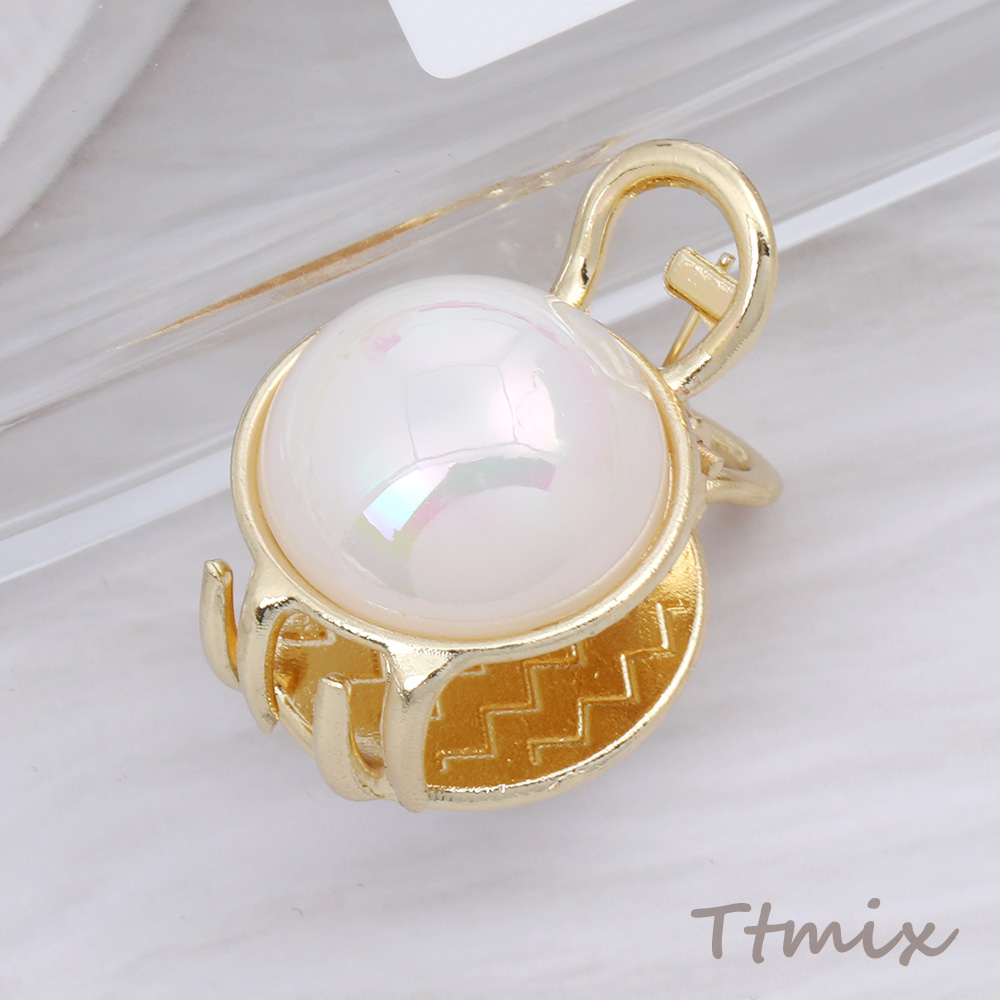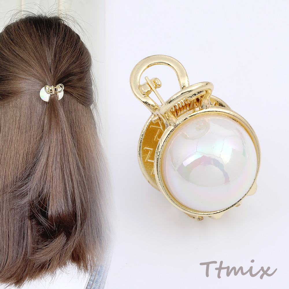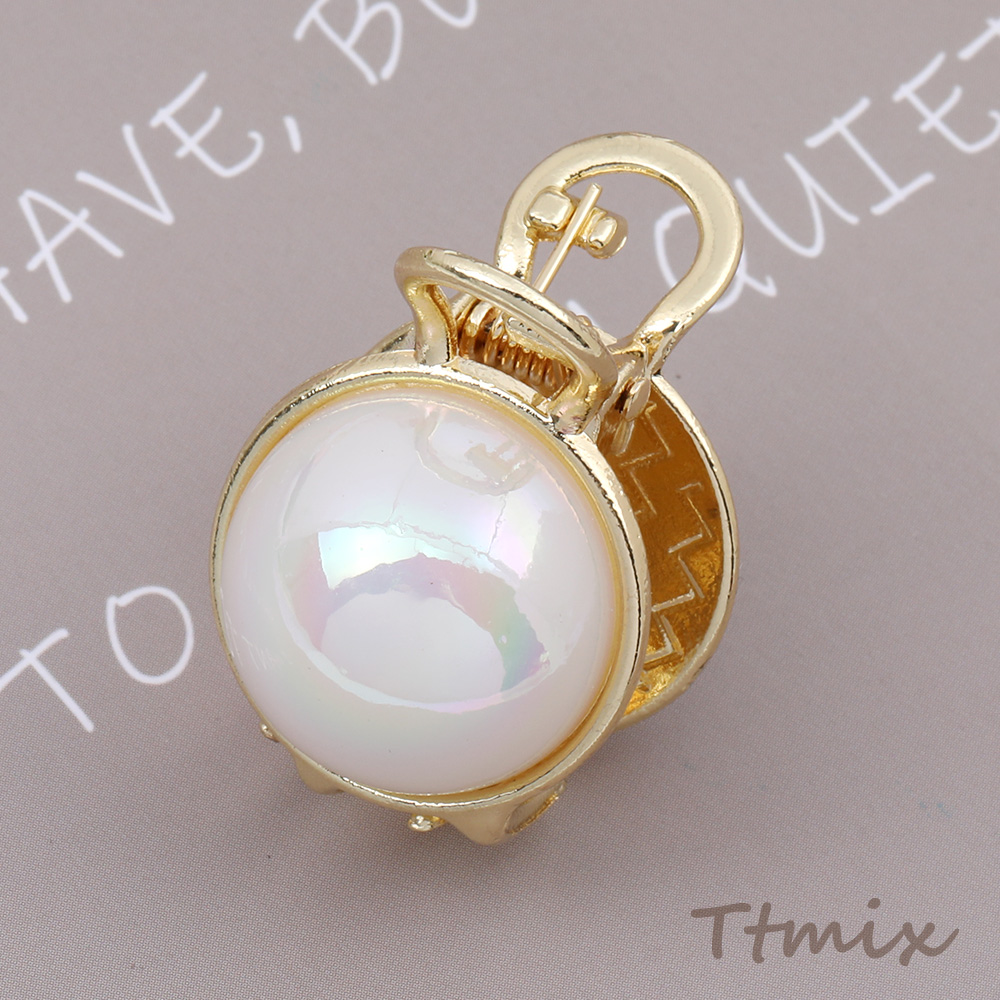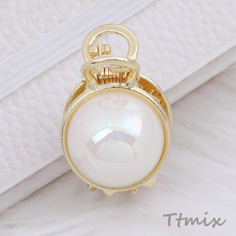 MINIバンスクリップ メタルヘアクリップ パール調デザイン ゴールド(1ヶ)
