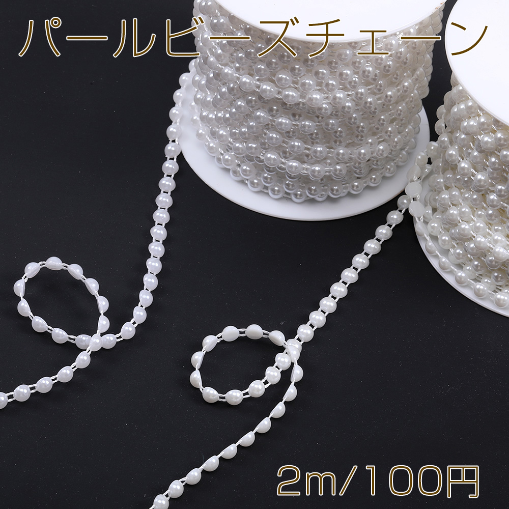 アクリルパールビーズチェーン 幅約6mm(2m)