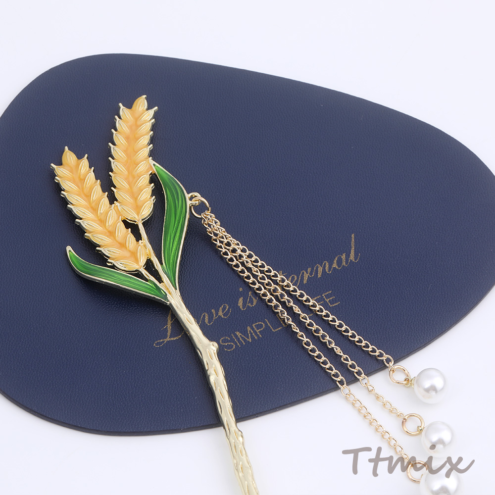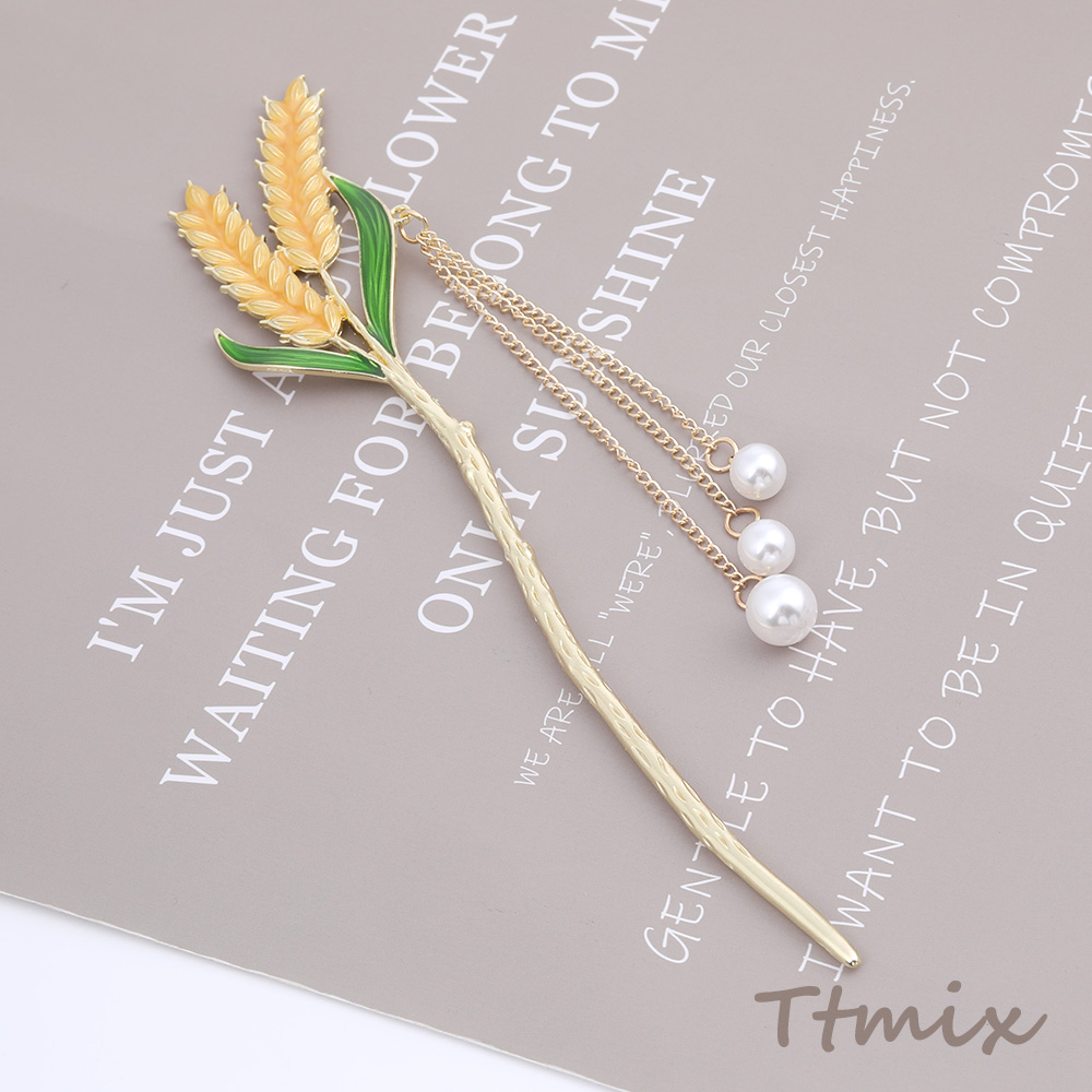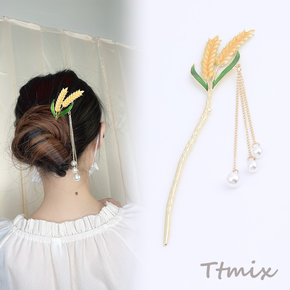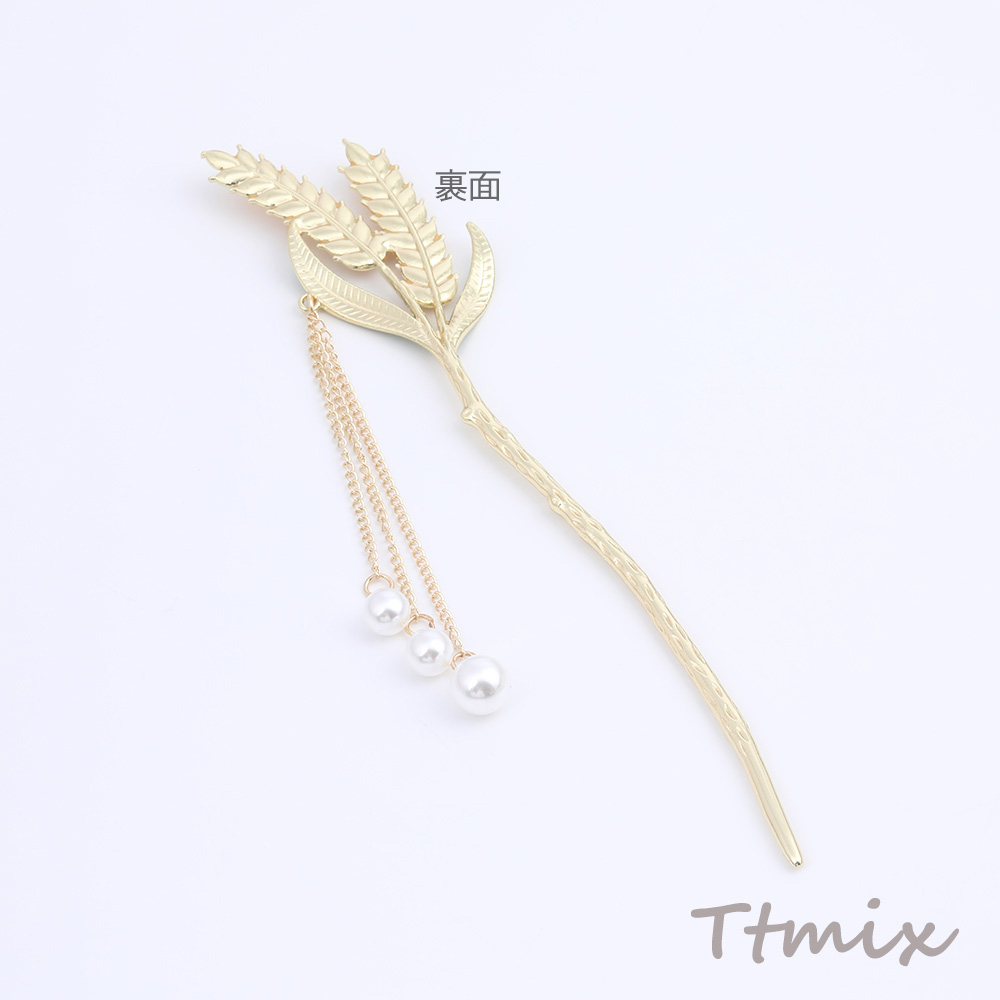 麦の穂かんざし パール付きチェーンタッセル ゴールド(1ヶ)