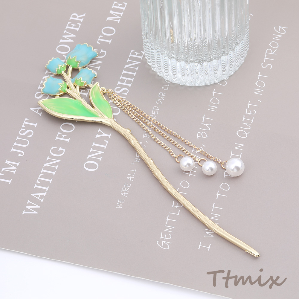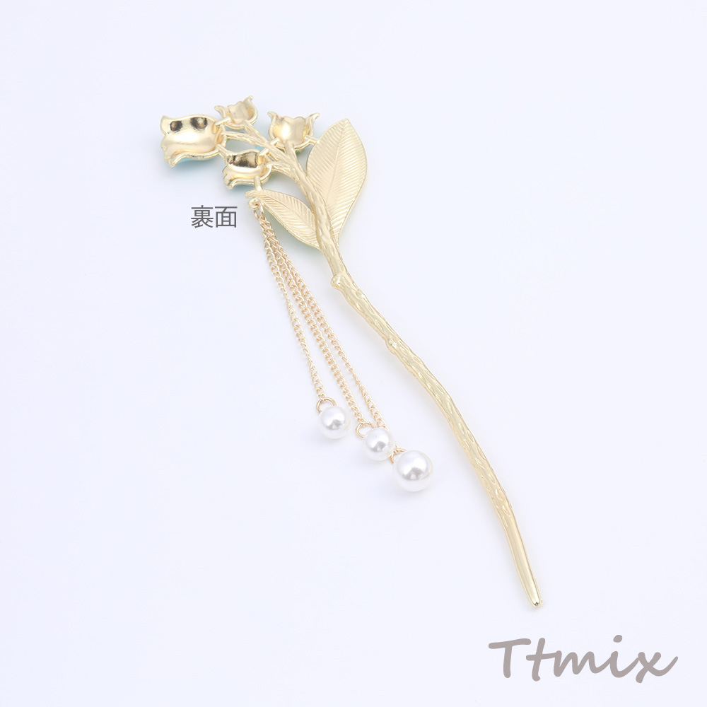 すずらんのかんざし フラワー パール付きチェーンタッセル ゴールド(1ヶ)