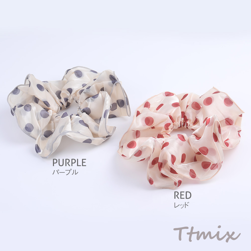ドット柄オーガンジー素材シュシュ(1ヶ)