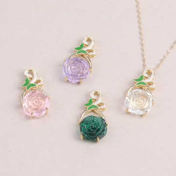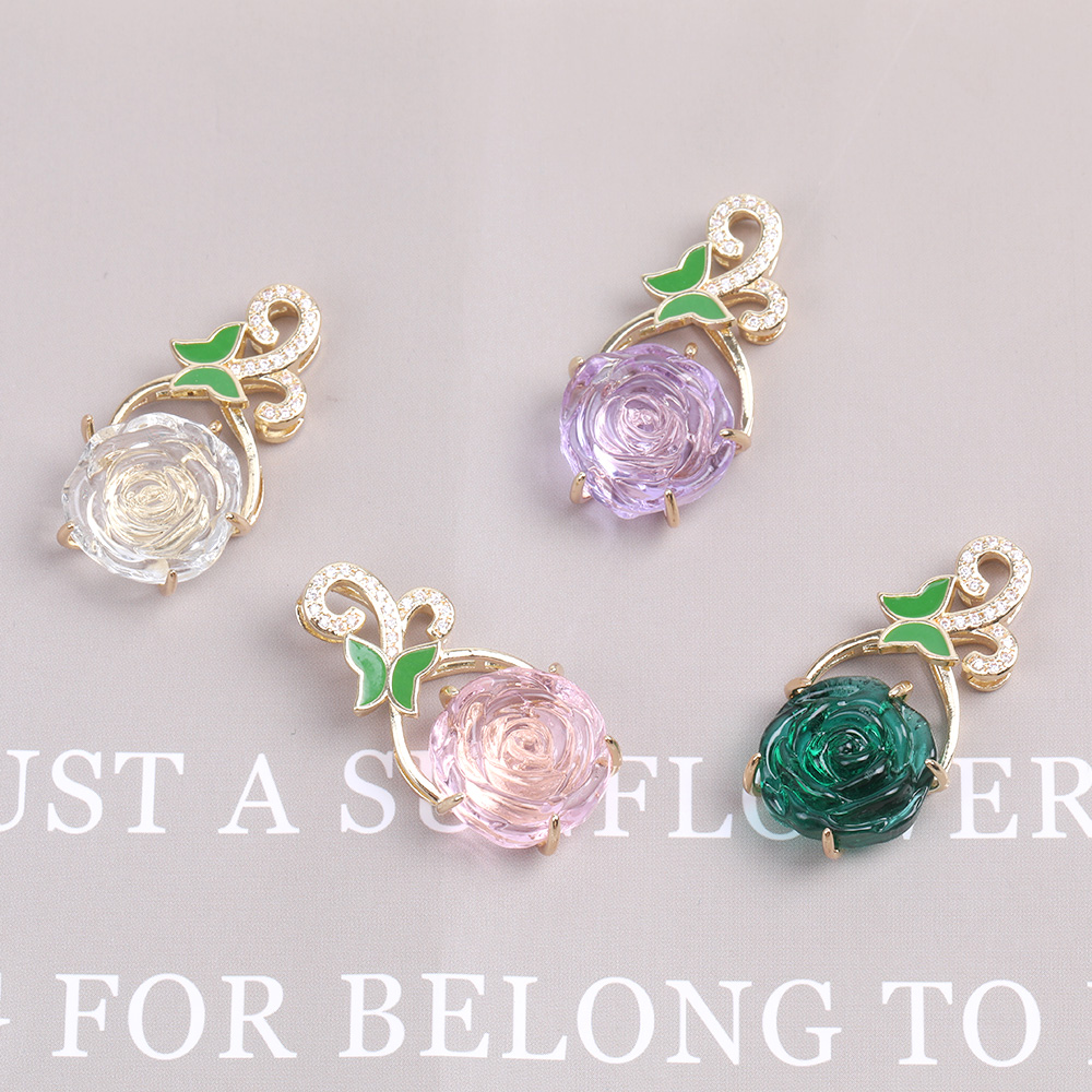 バラのガラスチャーム ジルコニア付き フラワー 16×35mm ゴールド(1ヶ)