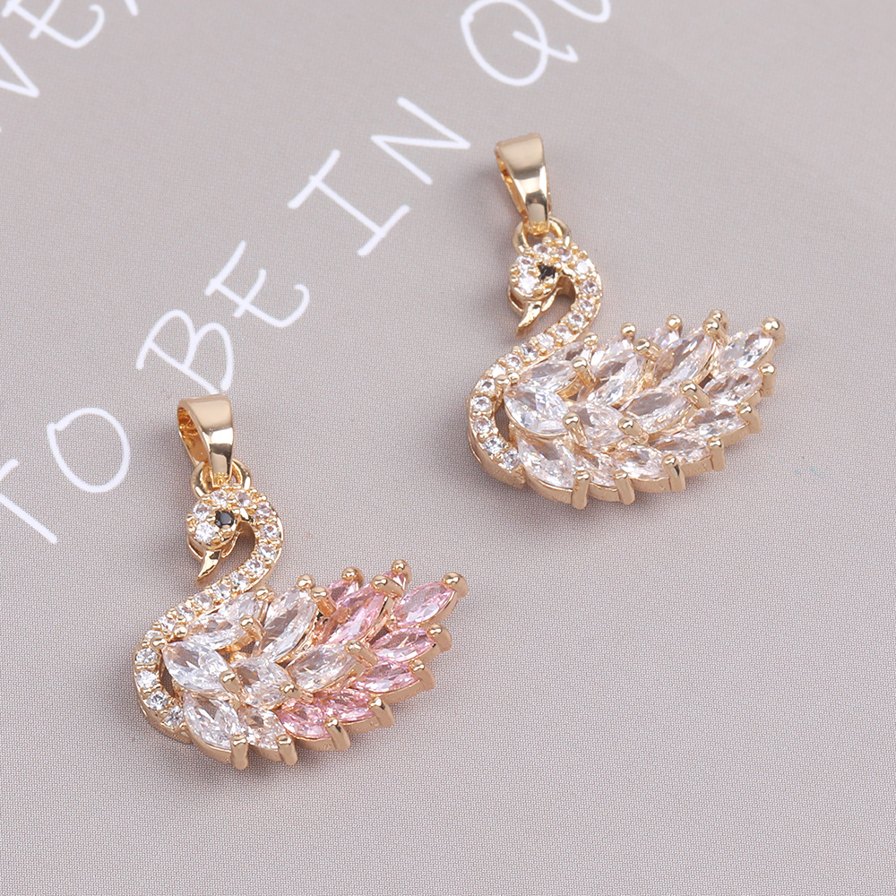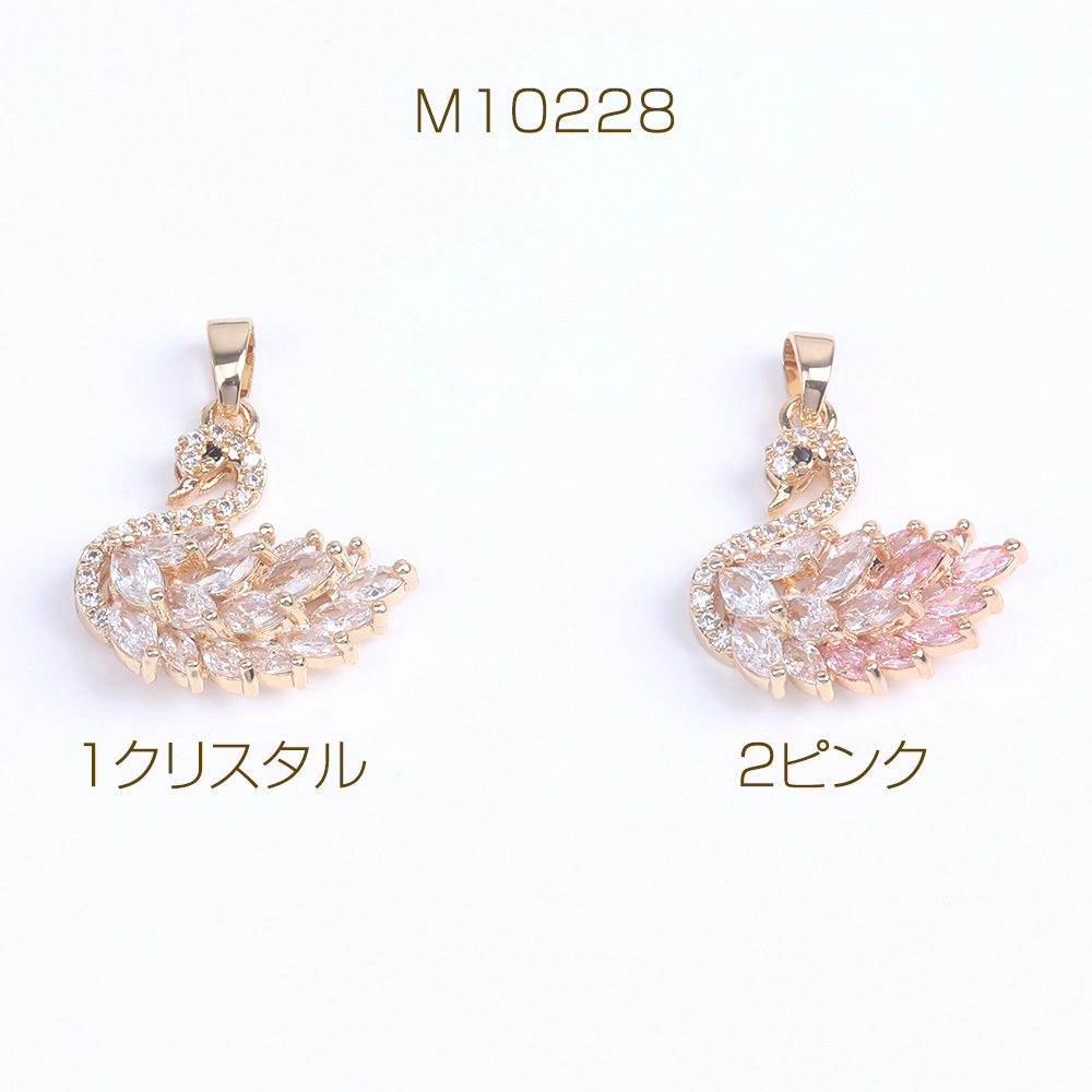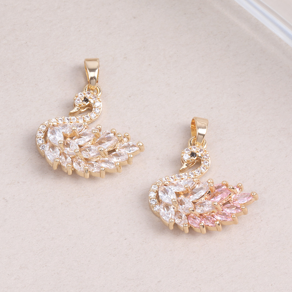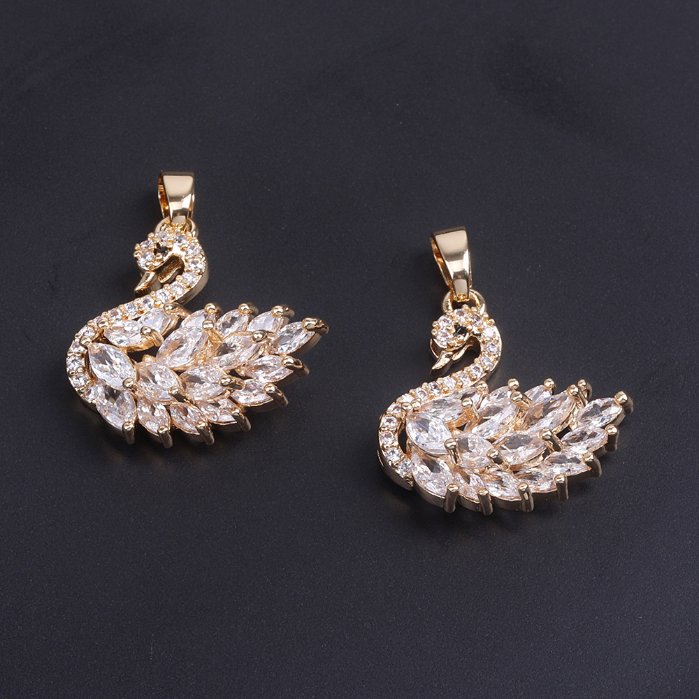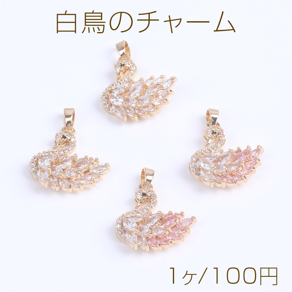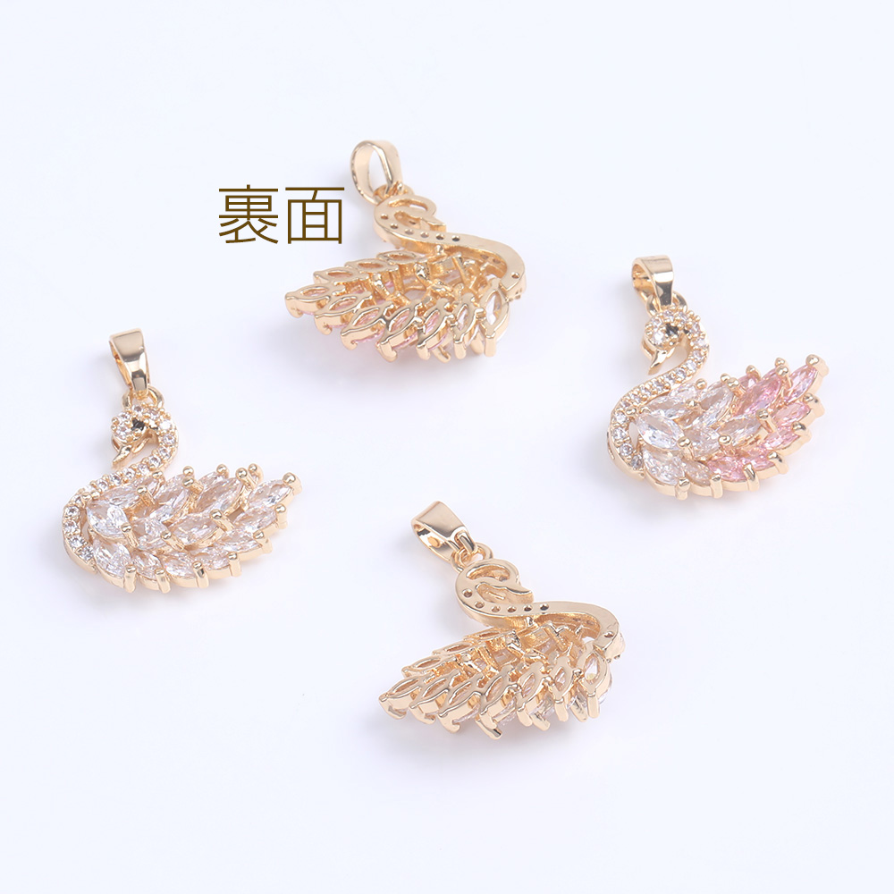 ジルコニアチャーム 白鳥 バチカン付き 19×20mm ゴールド(1ヶ)