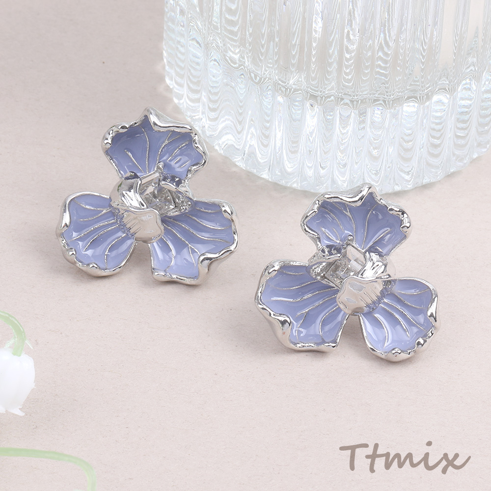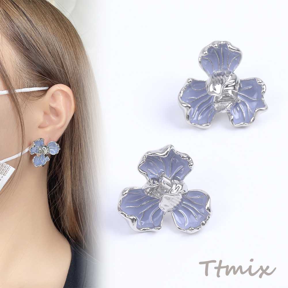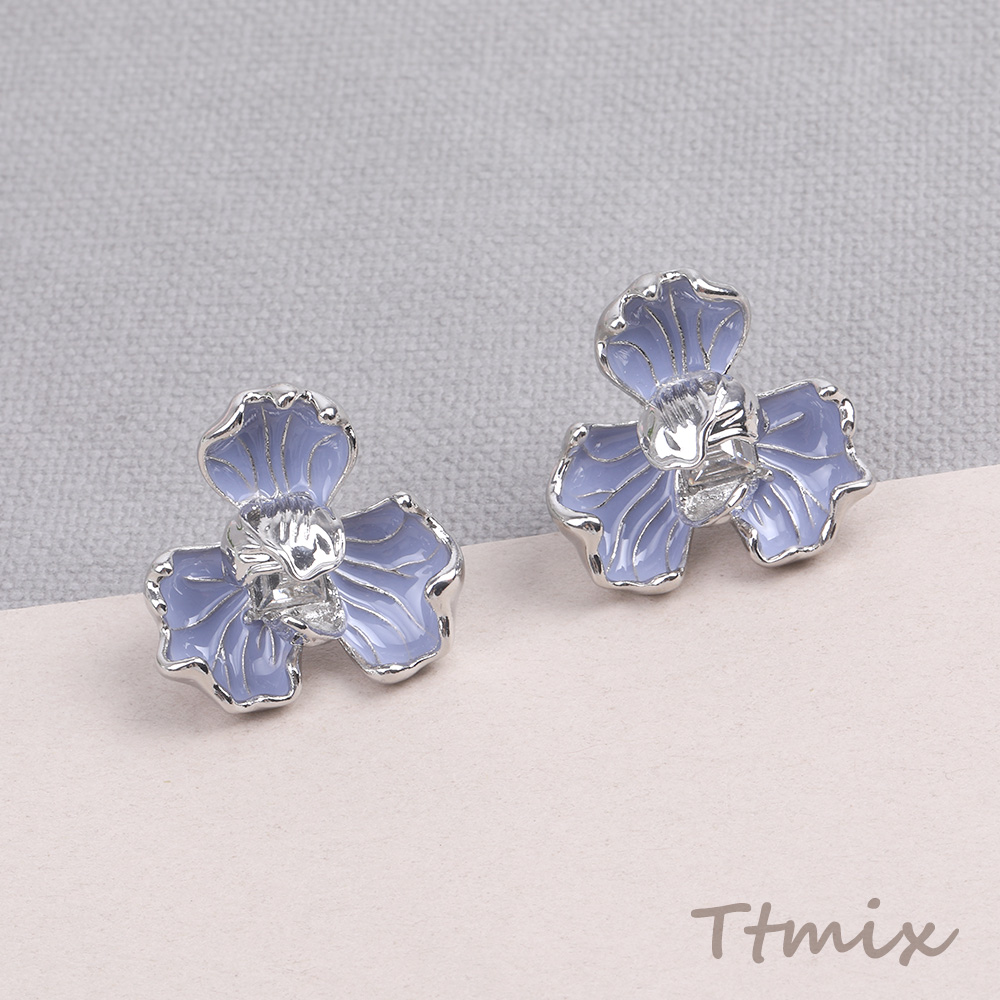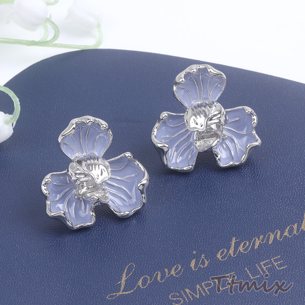 デザインピアス フラワーのピアス ロジウム ブルー(1ペア)