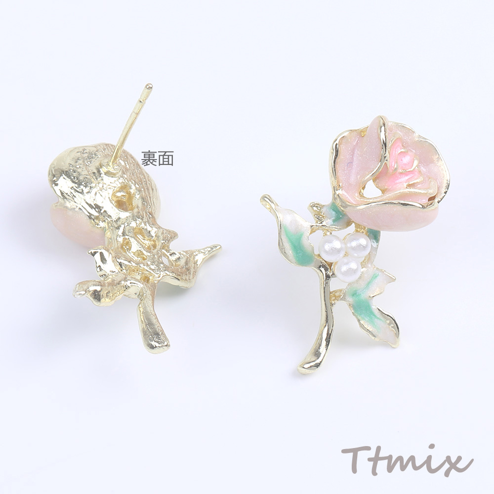 デザインピアス 一輪花のピアス ゴールド ピンク(1ペア)