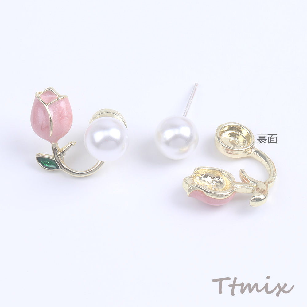 デザインピアス 華奢なパールピアス フラワー チューリップ ゴールド(1ペア)