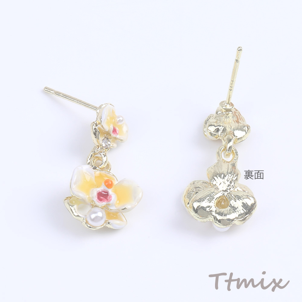 デザインピアス レジン風ピアス フラワー ゴールド(1ペア)
