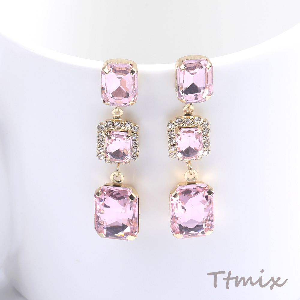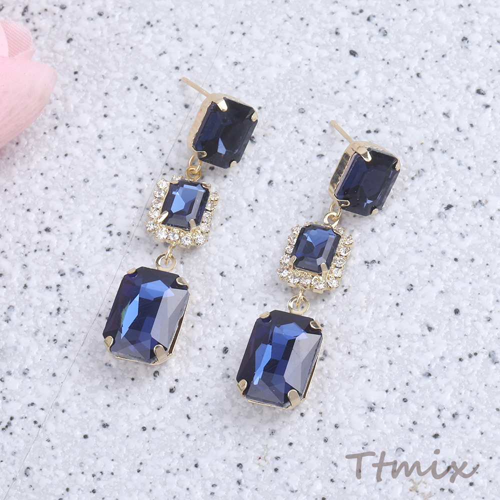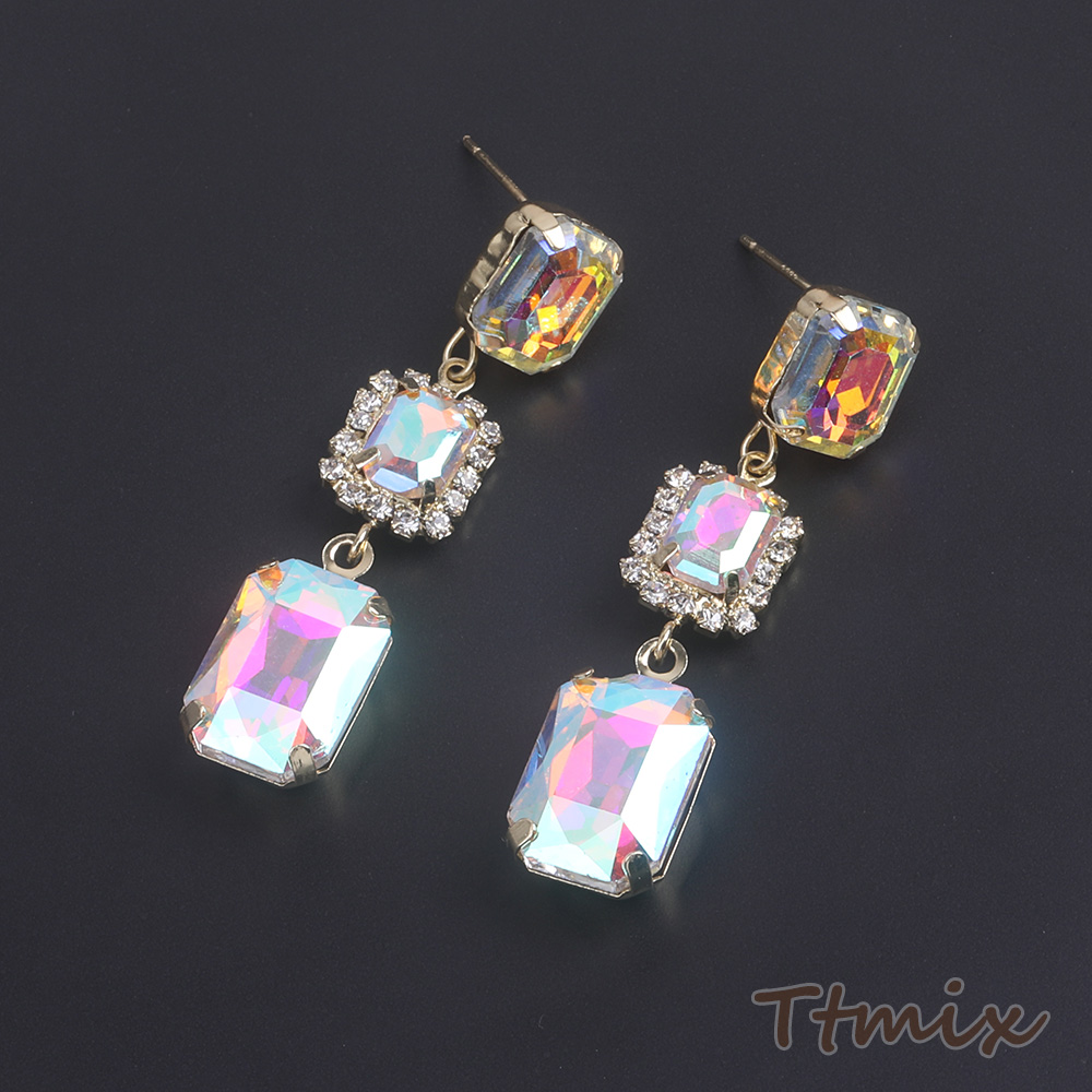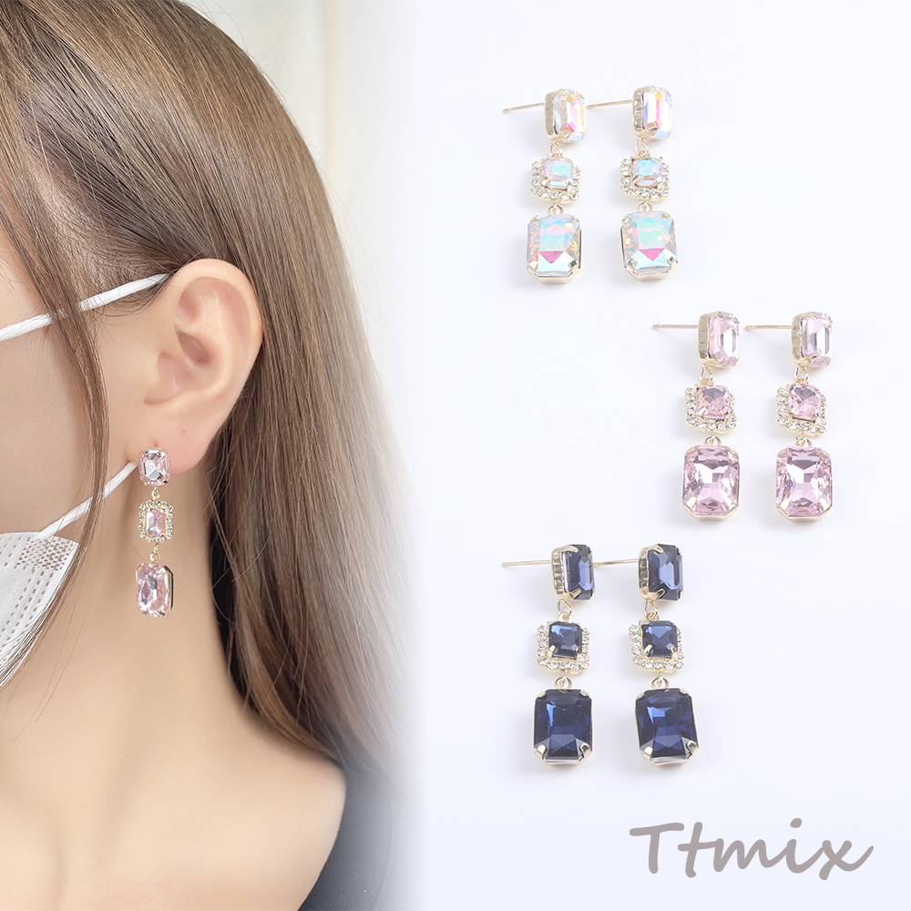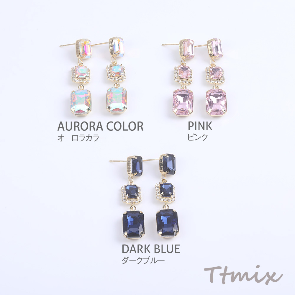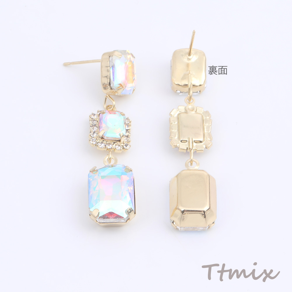 デザインピアス 輝くカラーストーンピアス 長方形型タッセル ゴールド(1ペア)