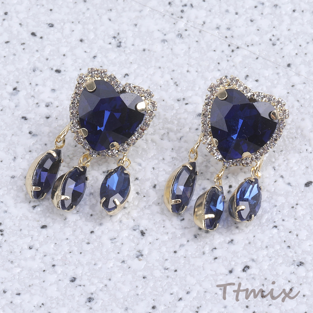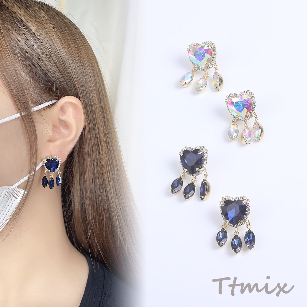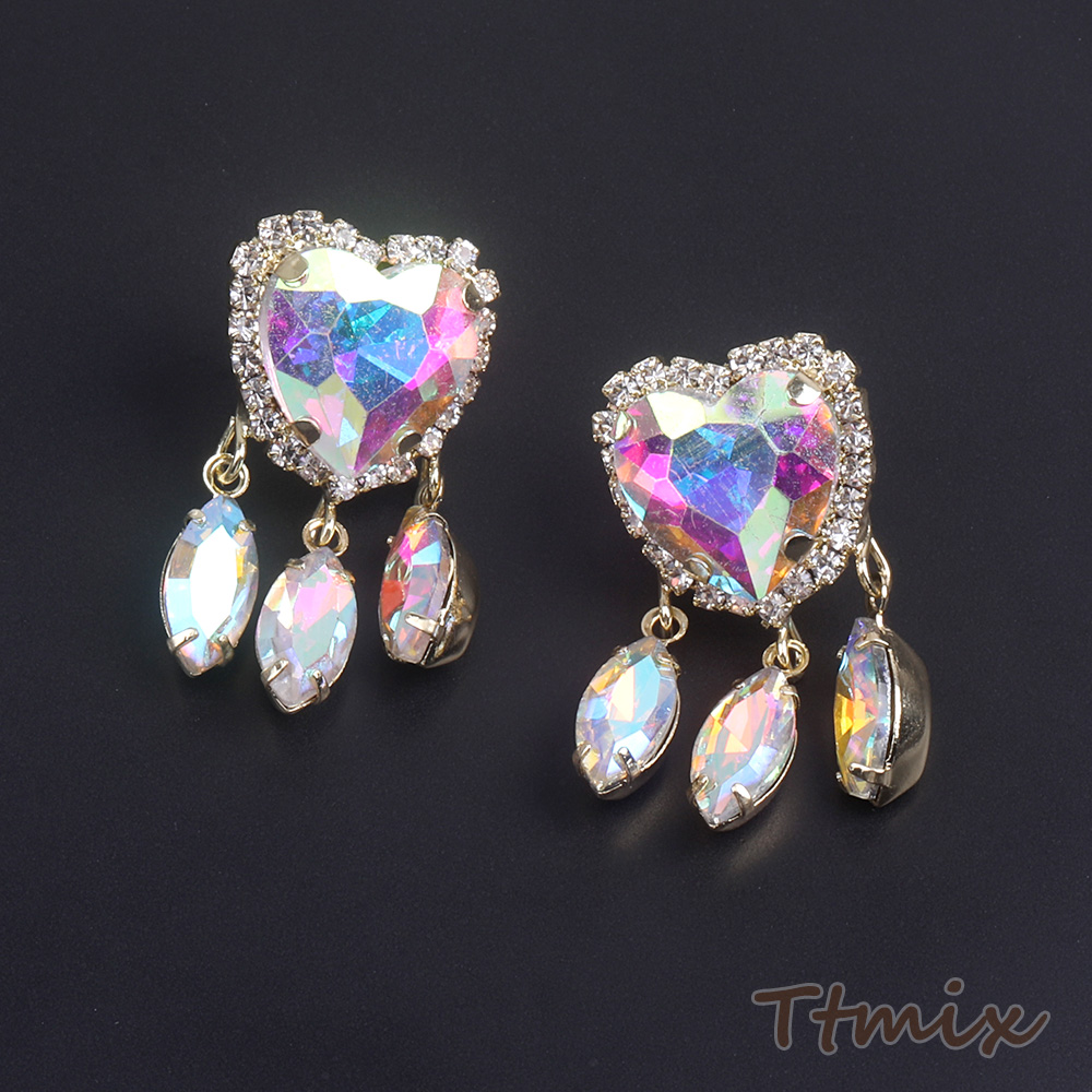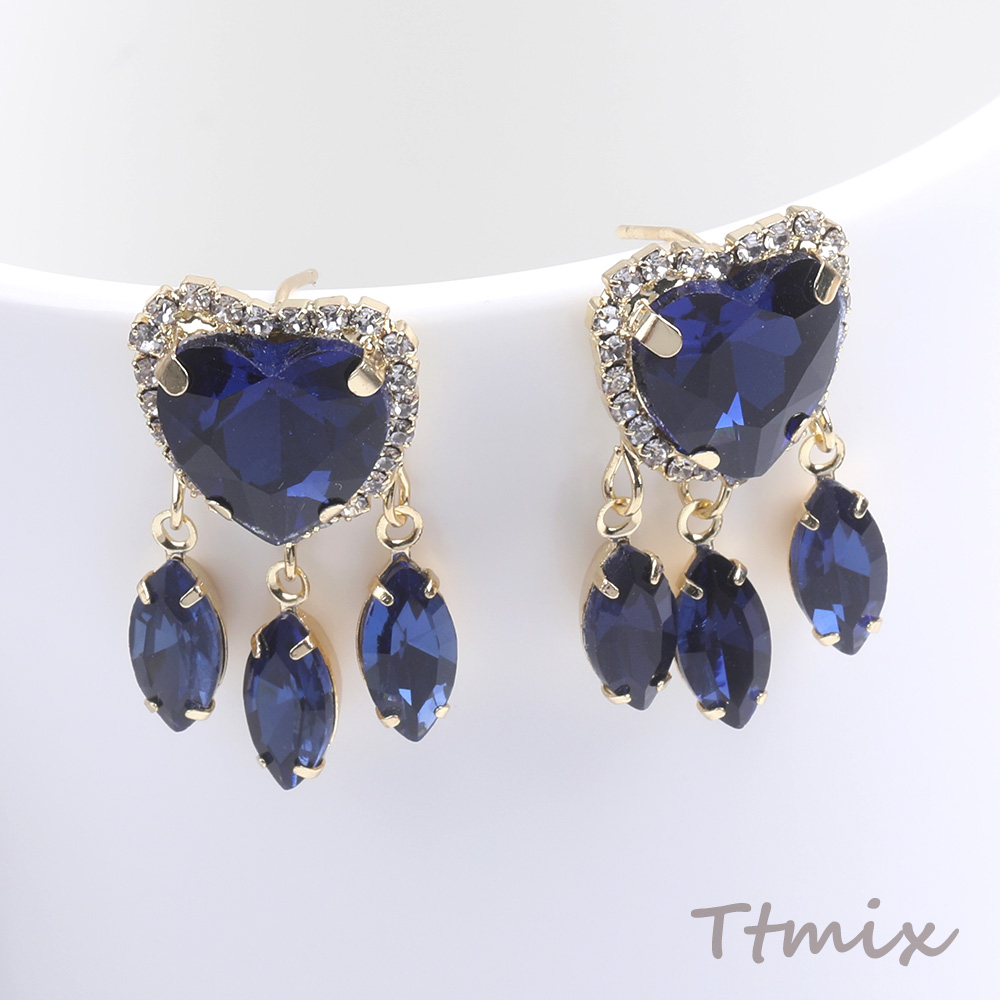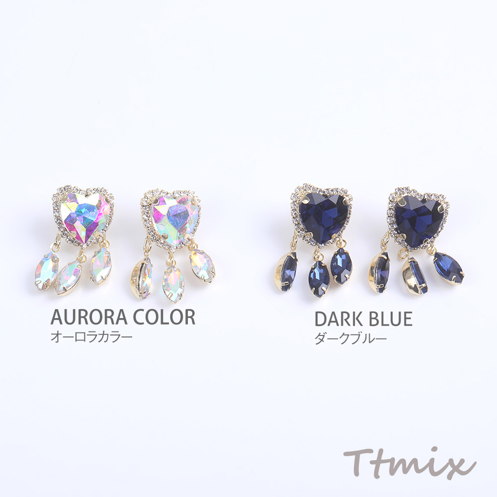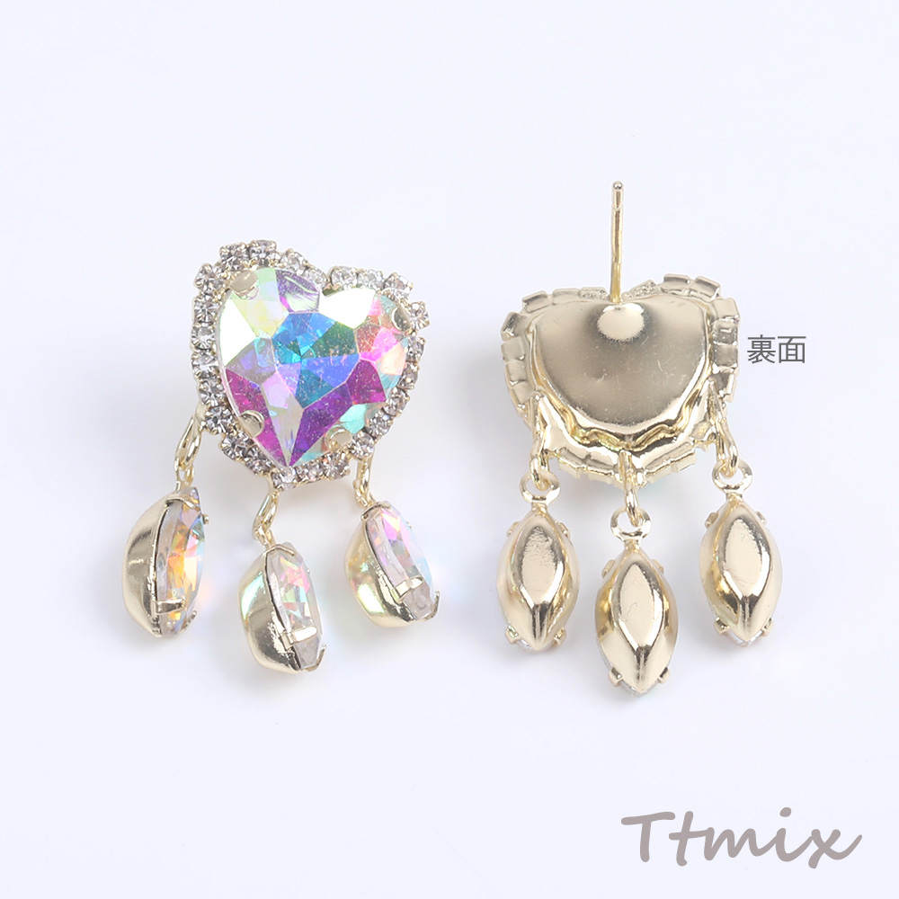 デザインピアス 輝くカラーストーンピアス ハート型タッセル ゴールド(1ペア