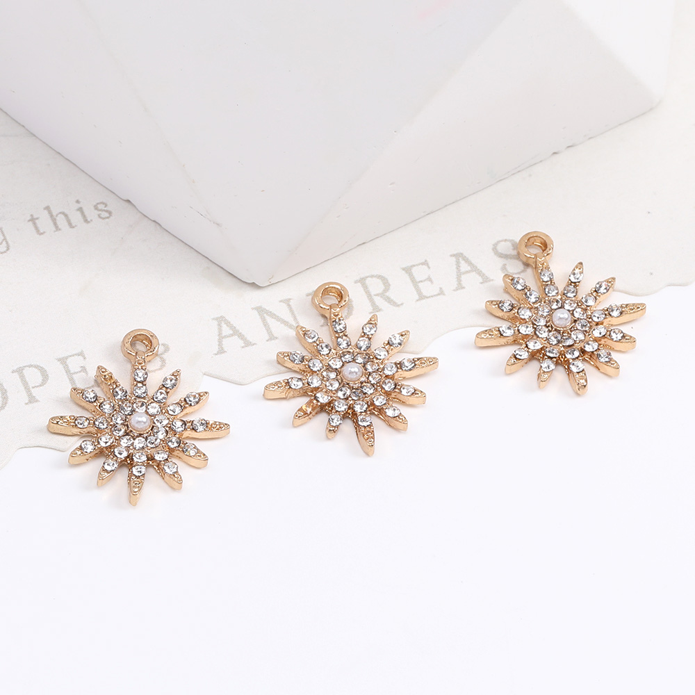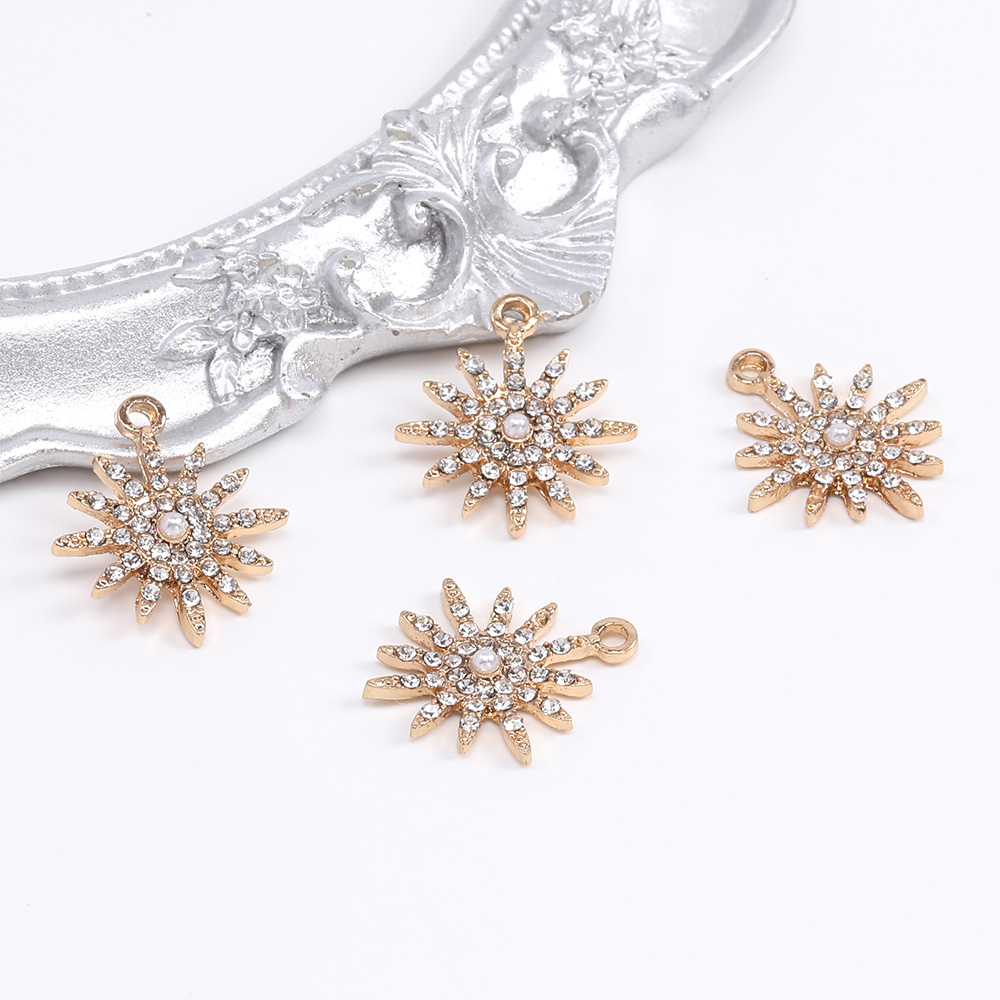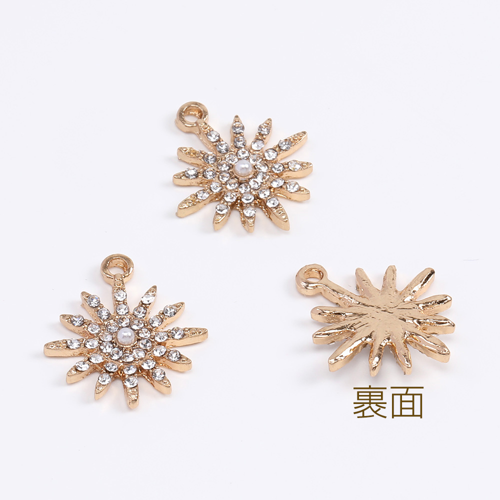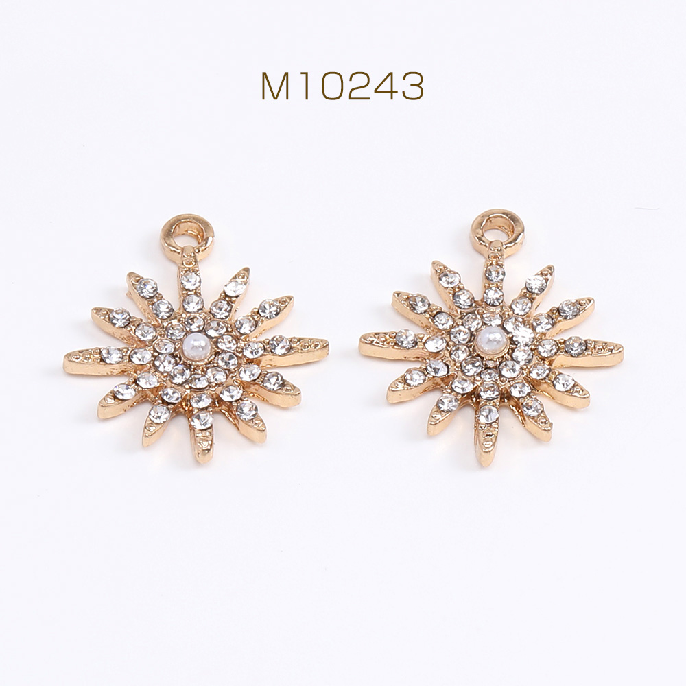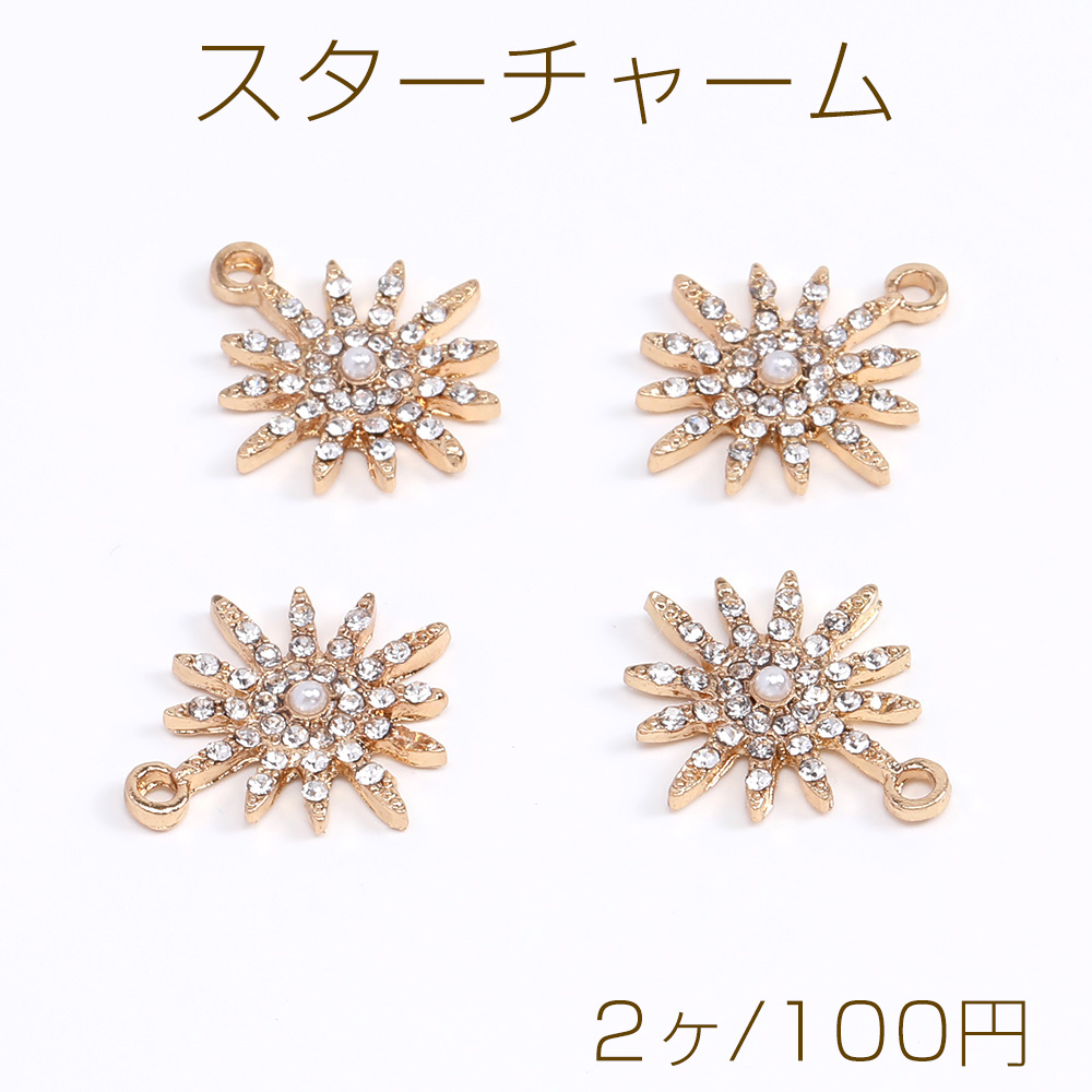 スターチャーム パール&ラインストーン付き 16×18mm ゴールド(2ヶ)