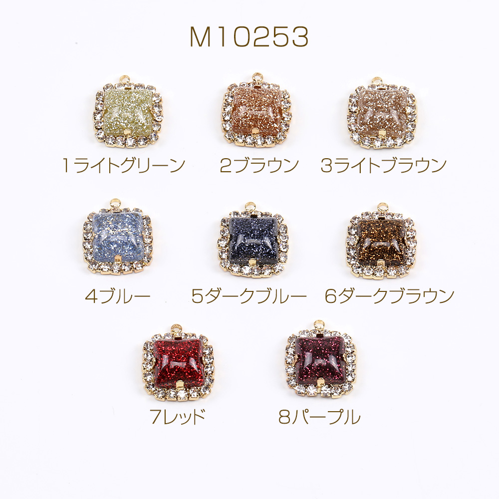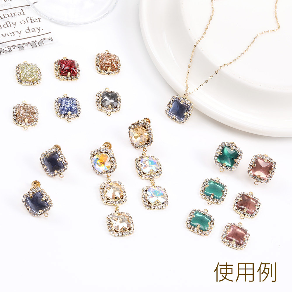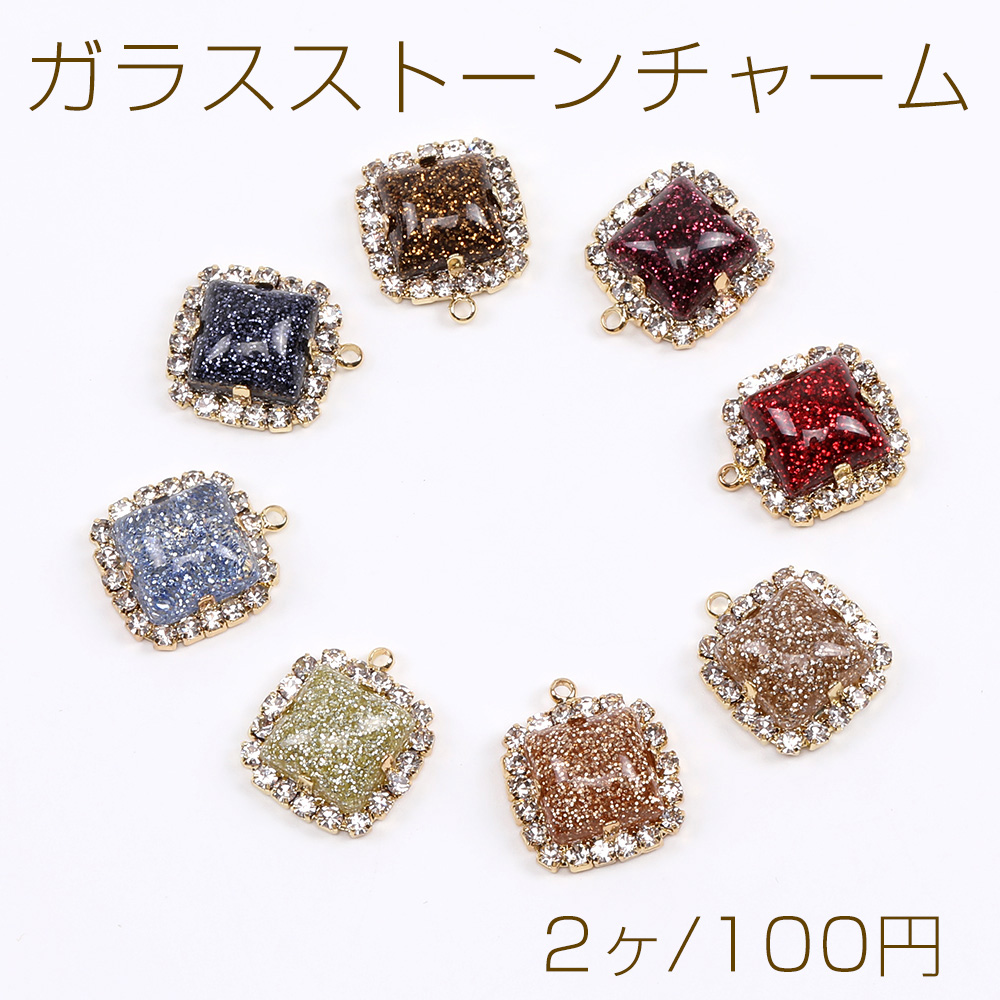 樹脂&ガラスストーンチャーム スクエア型 カン付き 15×17mm ゴールド(2ヶ)