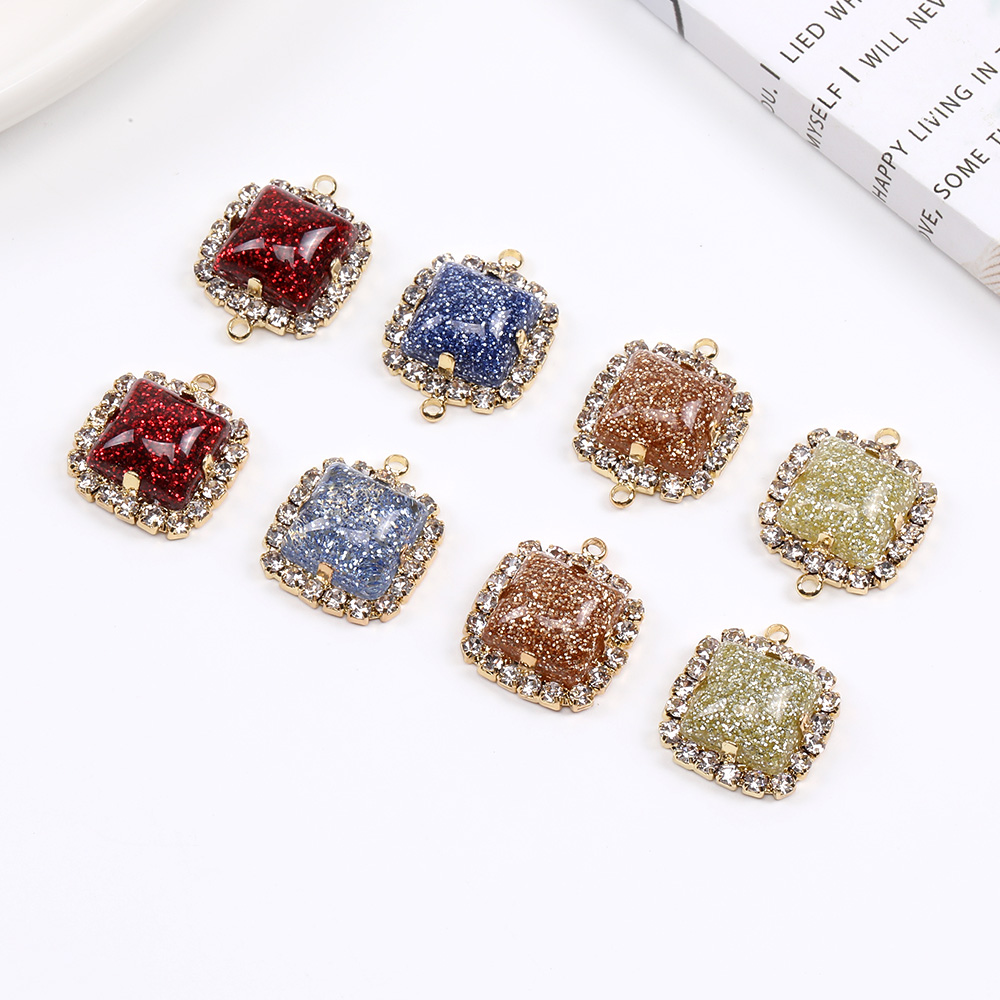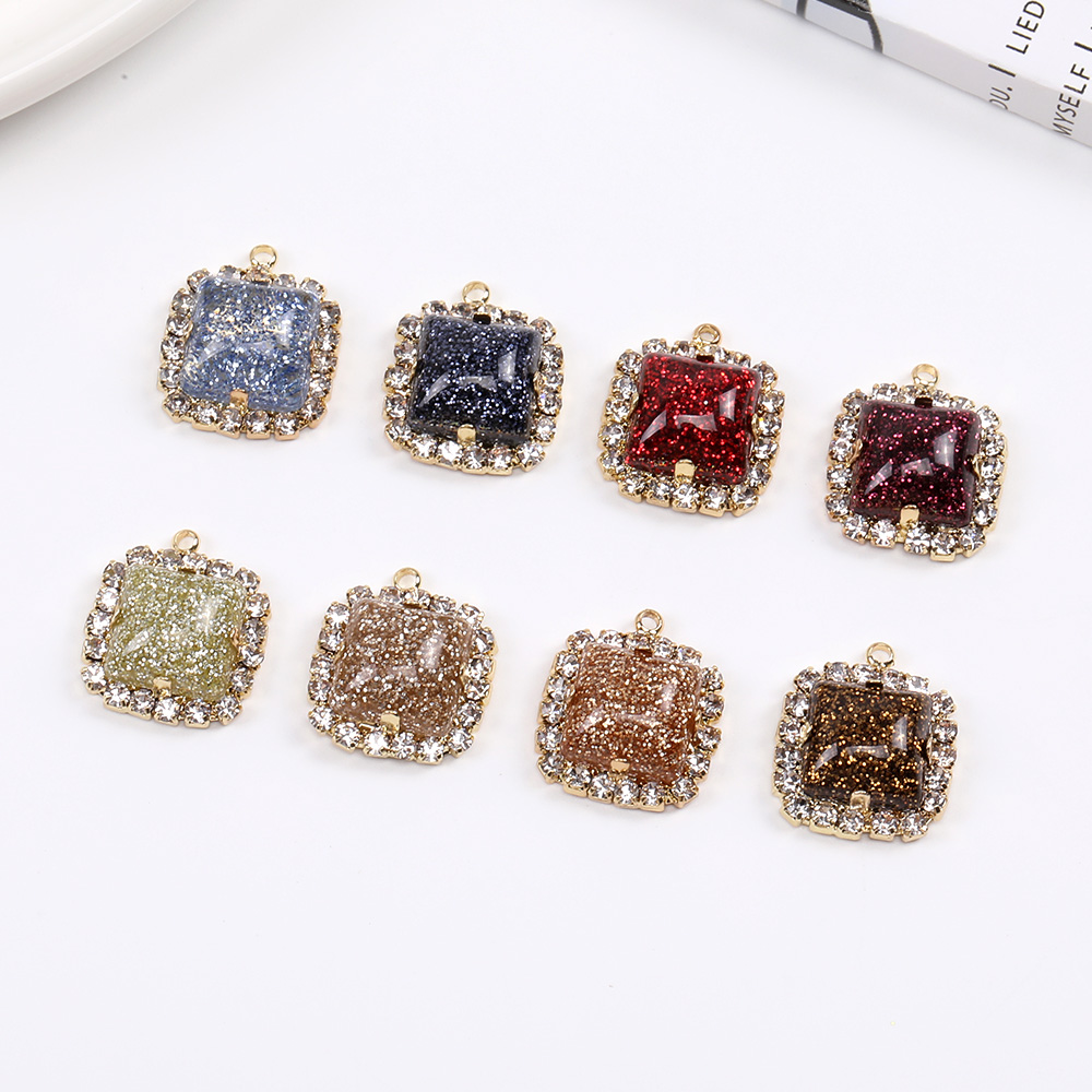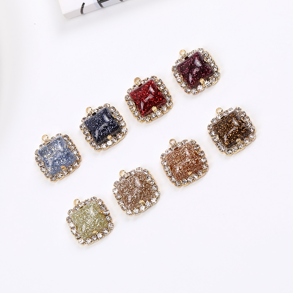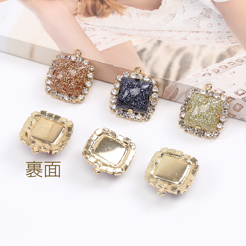 樹脂&ガラスストーンチャーム スクエア型 カン付き 15×17mm ゴールド(2ヶ)
