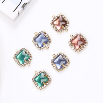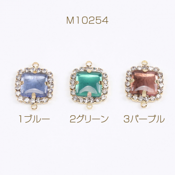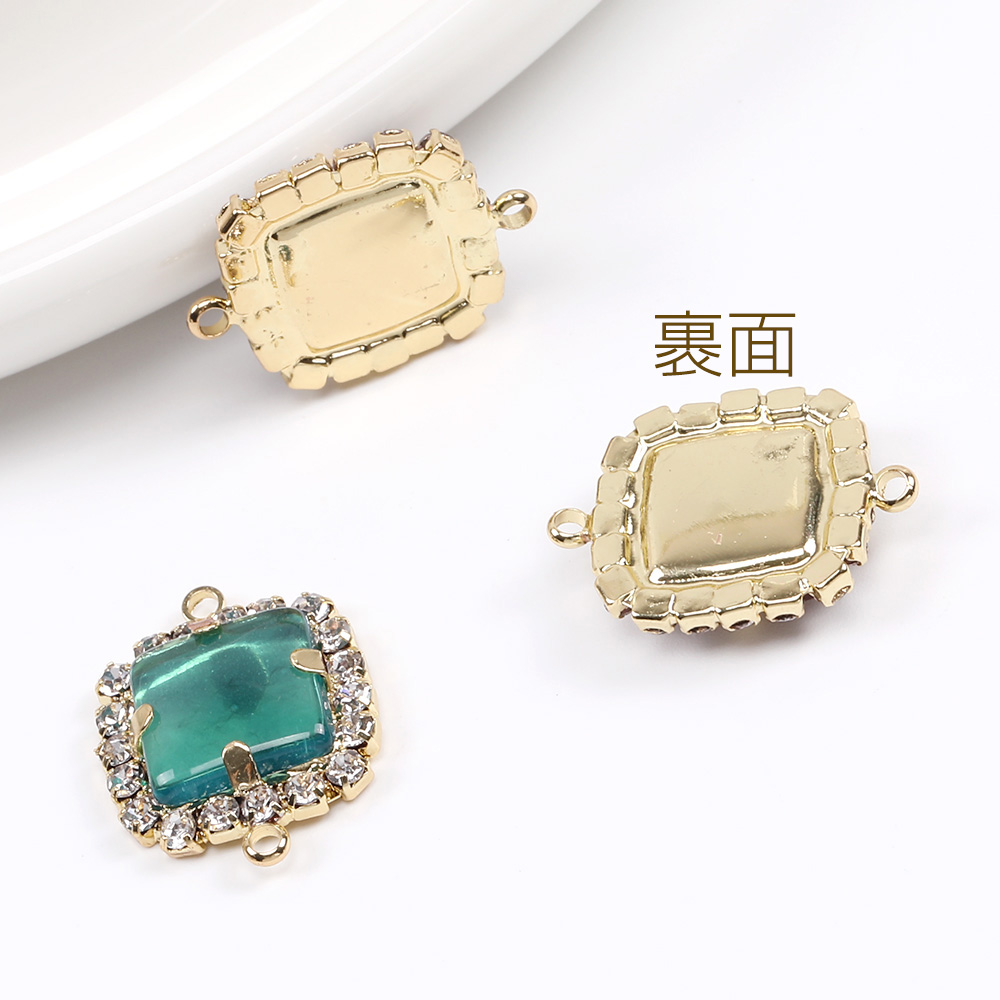樹脂&ガラスストーンチャーム ガラスビジューコネクターチャーム スクエア型 2カン付き 15×19.5mm ゴールド(2ヶ)