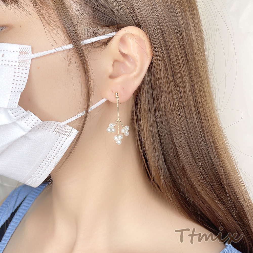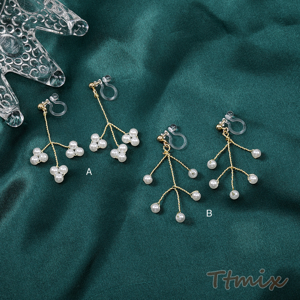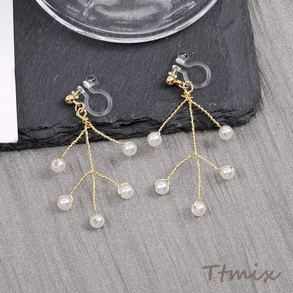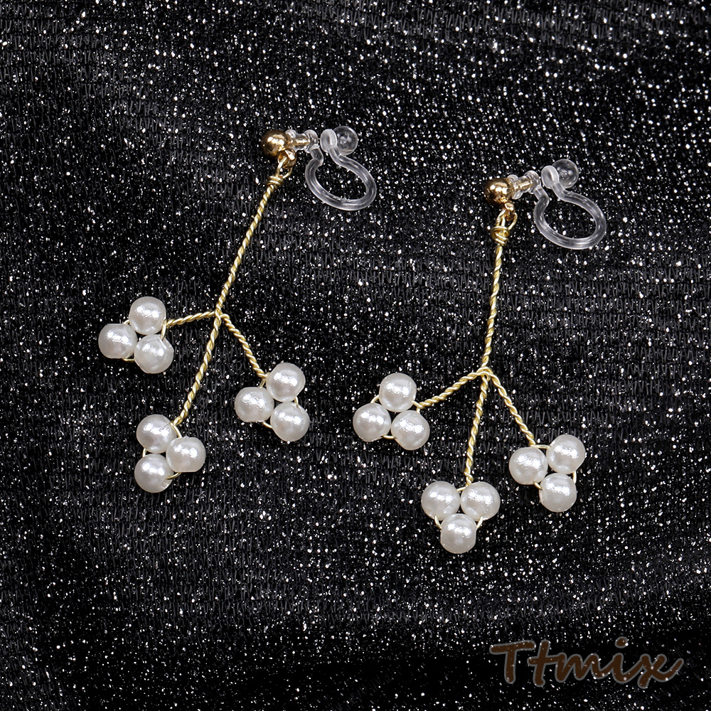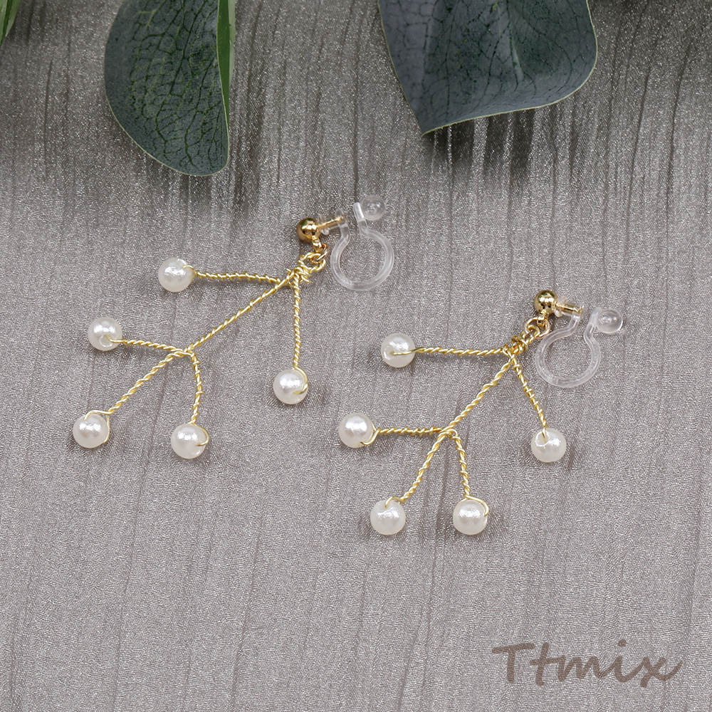 樹脂ノンホールピアス ワイヤービーズ 枝