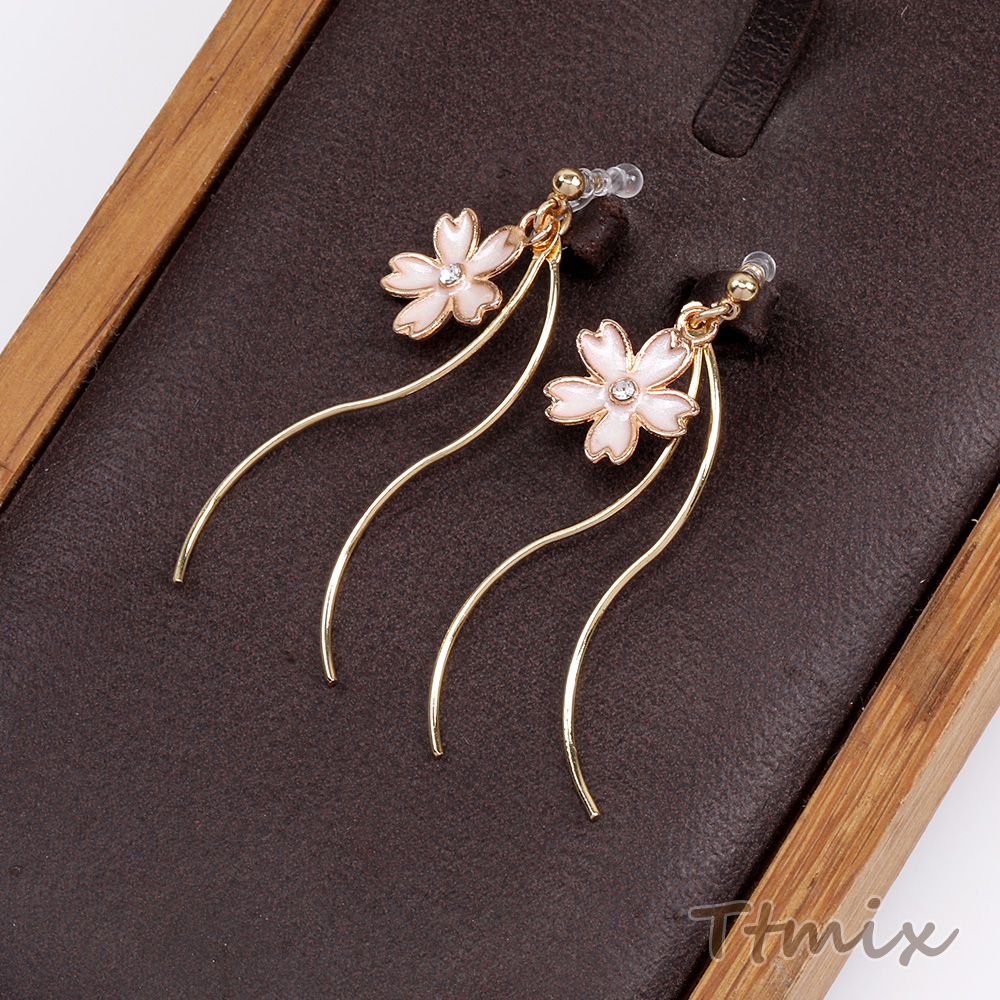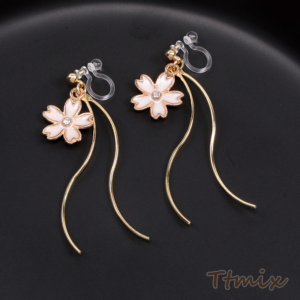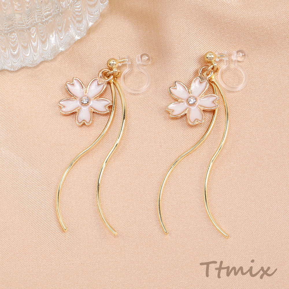 樹脂ノンホールピアス スティック 桜 タッセル(1ペア)