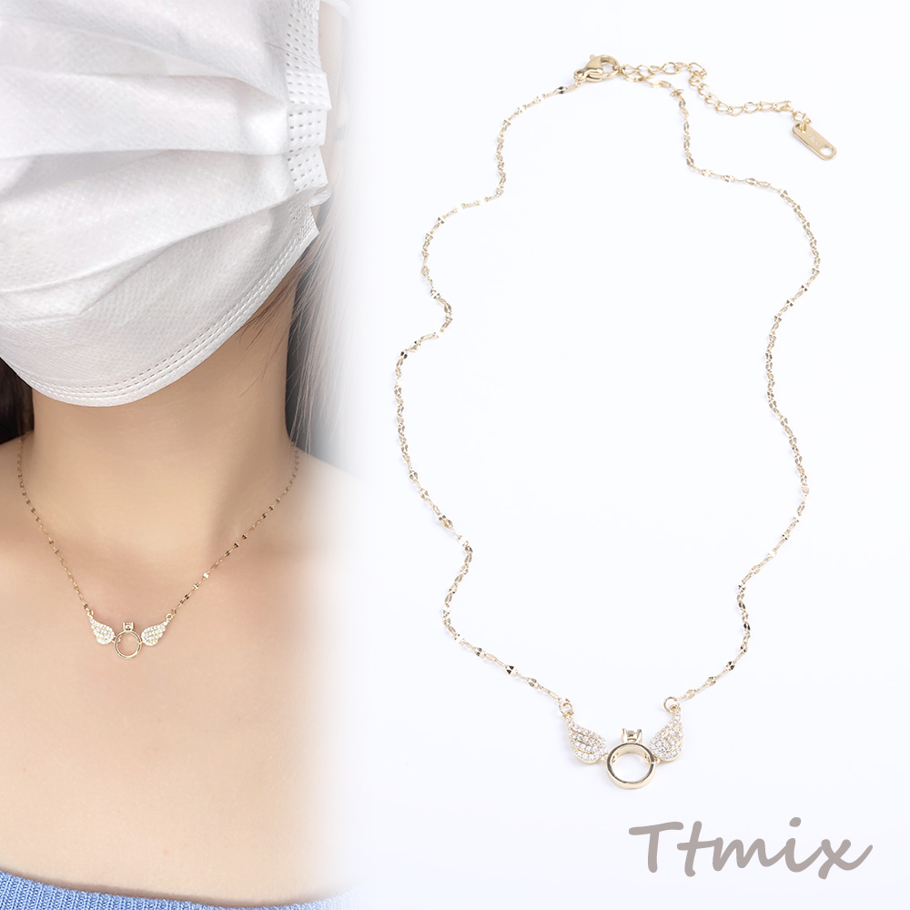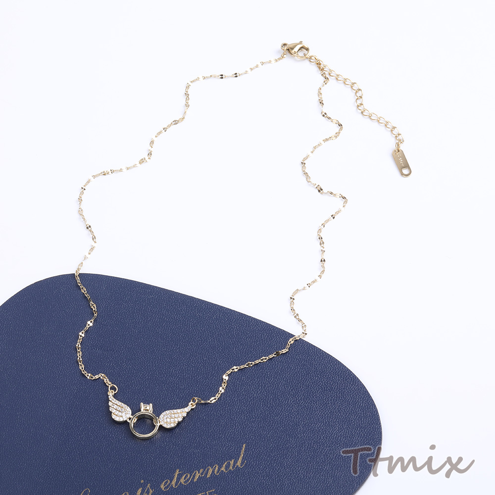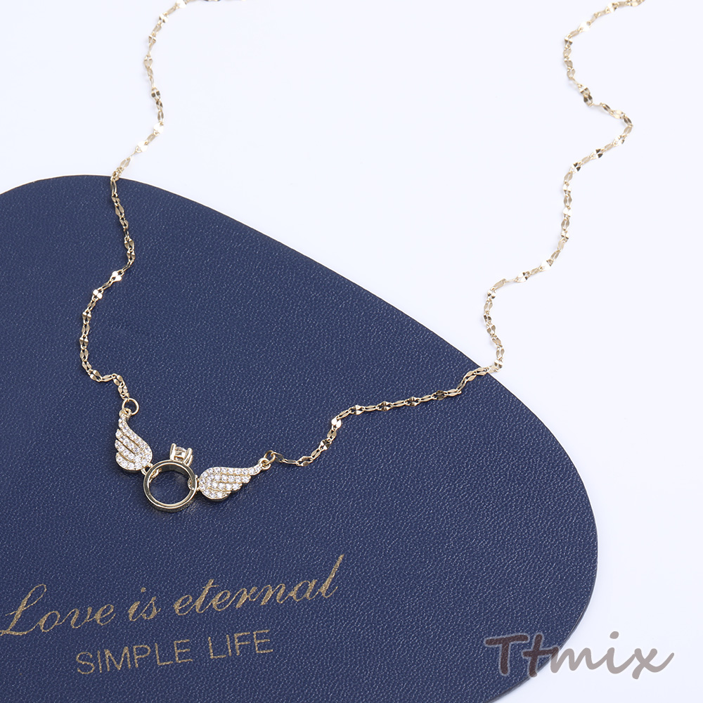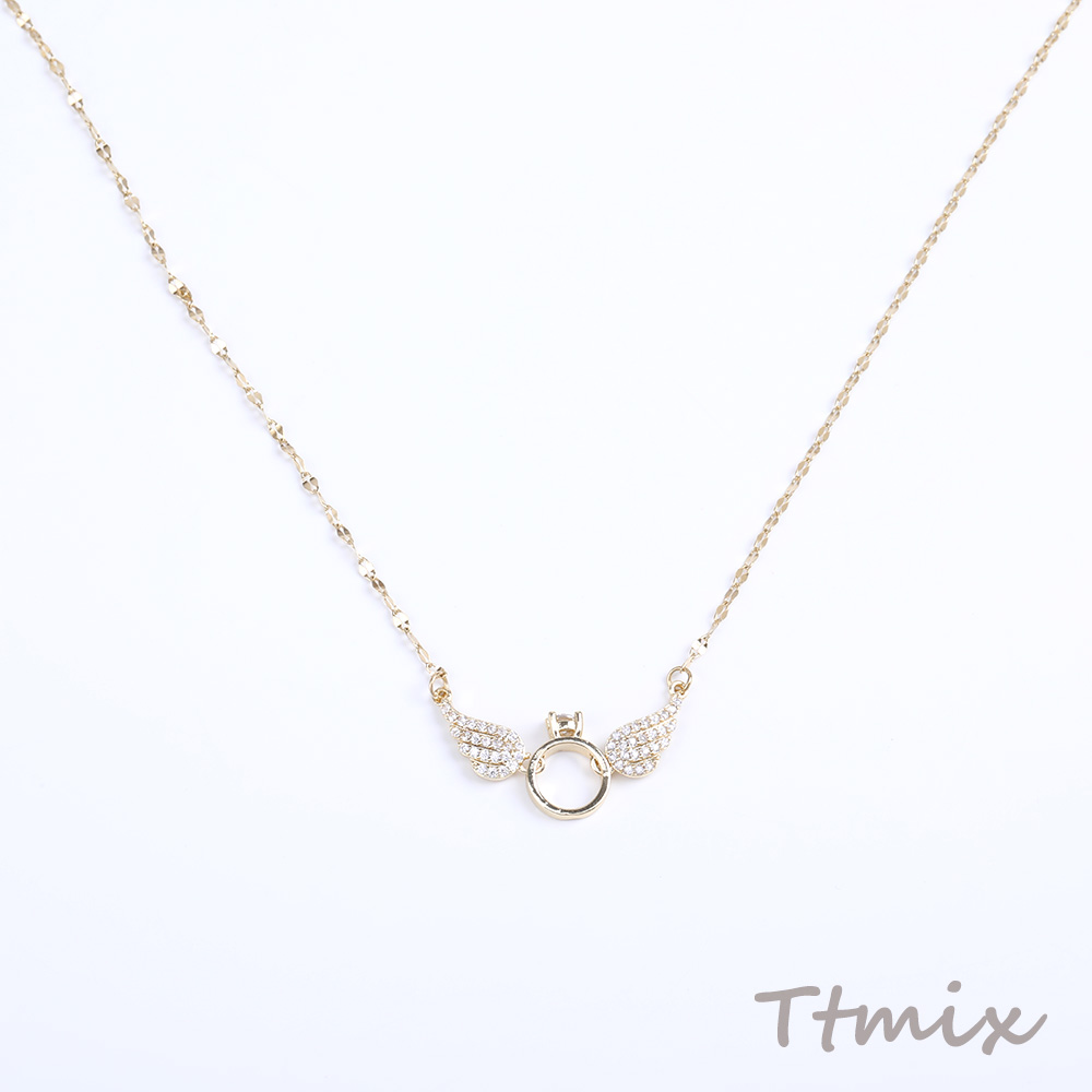 華奢なデザインのネックレス 胸元に煌めく 天使の羽とリング ゴールド(1本)