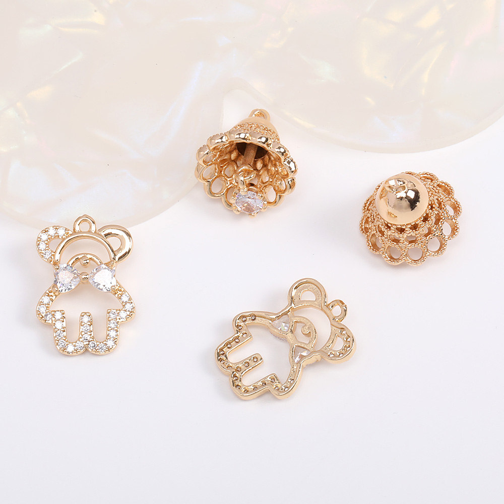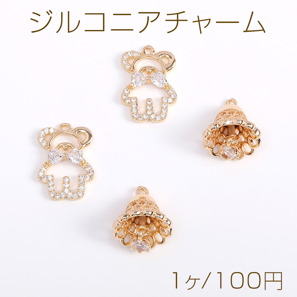 高品質ジルコニアチャーム クマチャーム 鈴チャーム ゴールド(1ヶ)