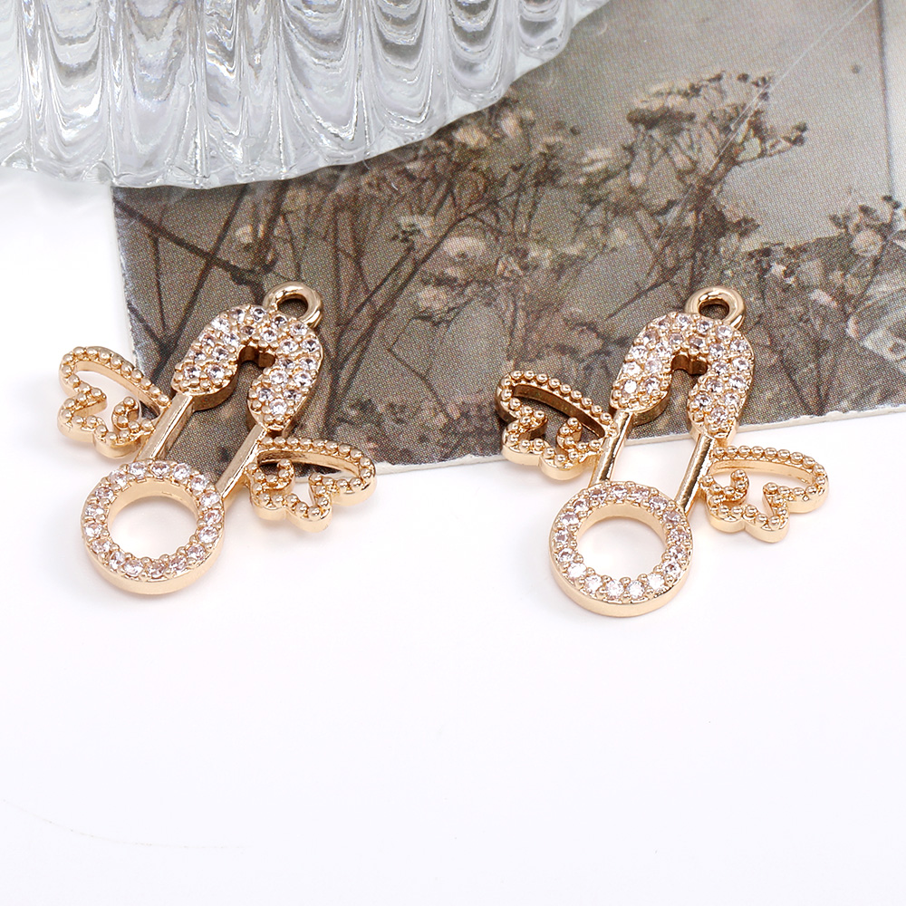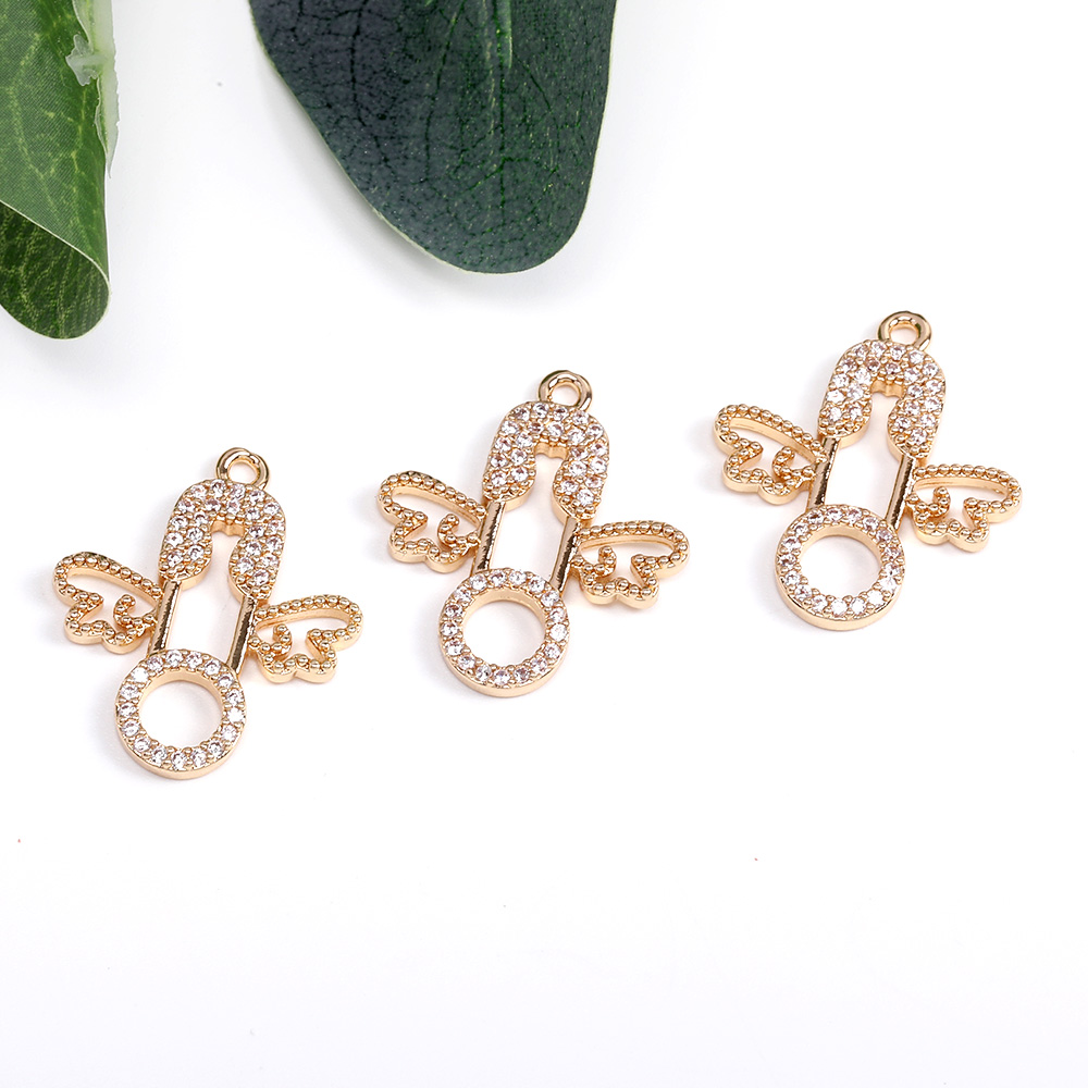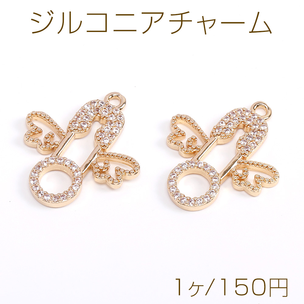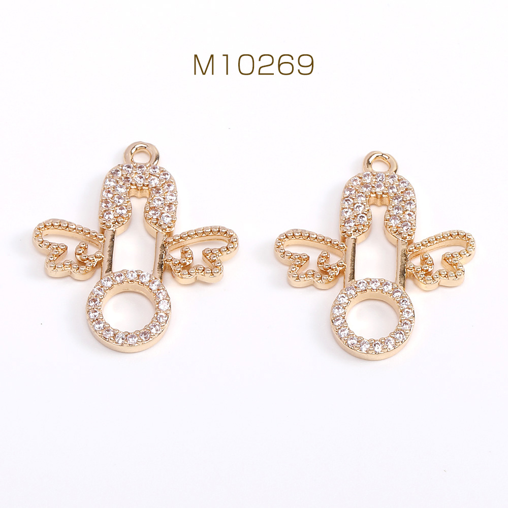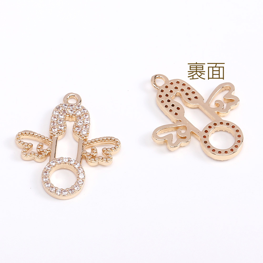 高品質ジルコニアチャーム 天使の羽とカブトピンチャーム 19×22mm ゴールド(1ヶ)