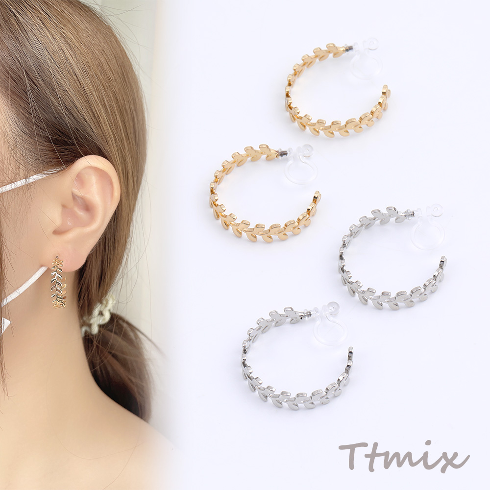 樹脂ノンホールピアス リーフフープ(1ペア)