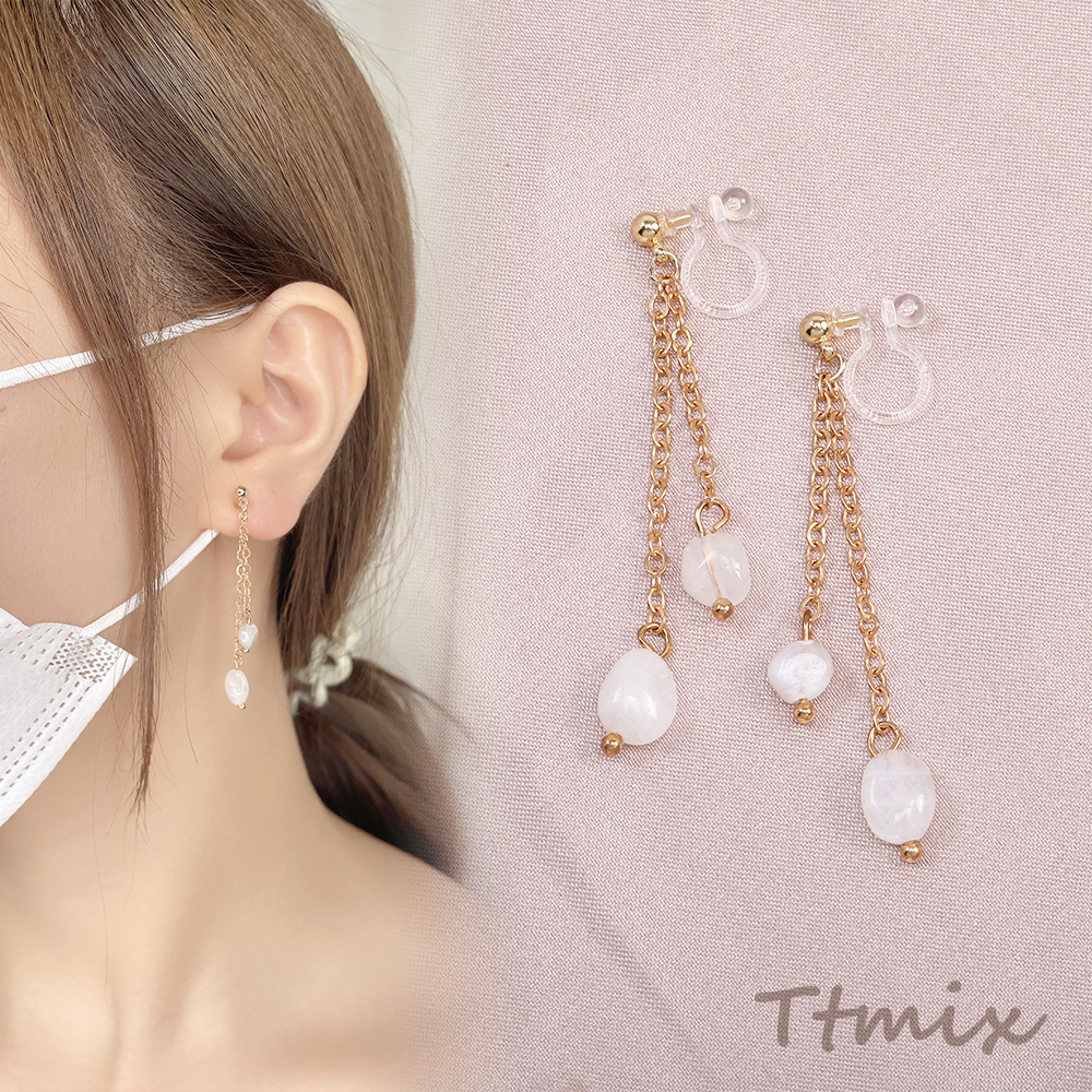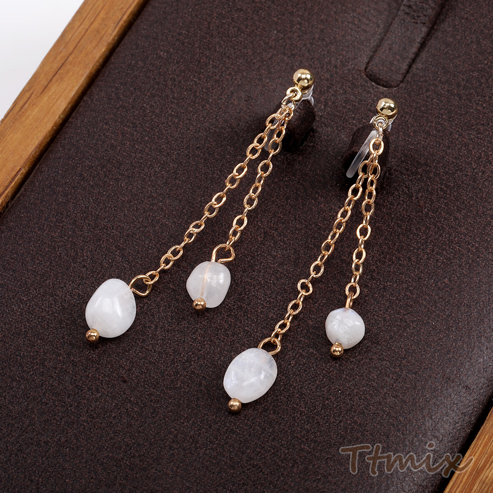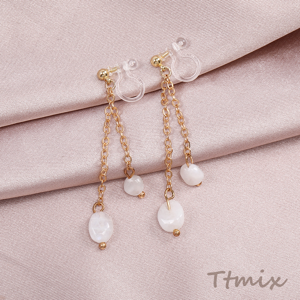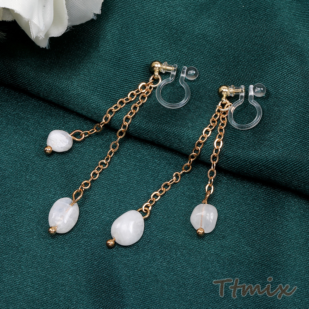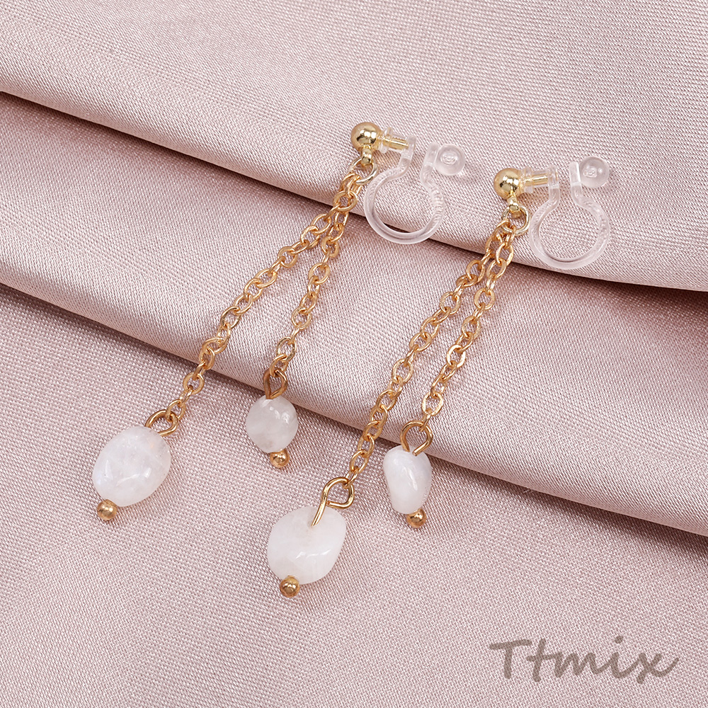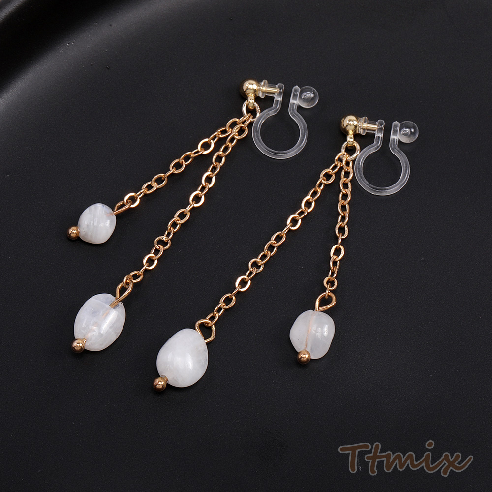 樹脂ノンホールピアス 天然石タッセル(1ペア)