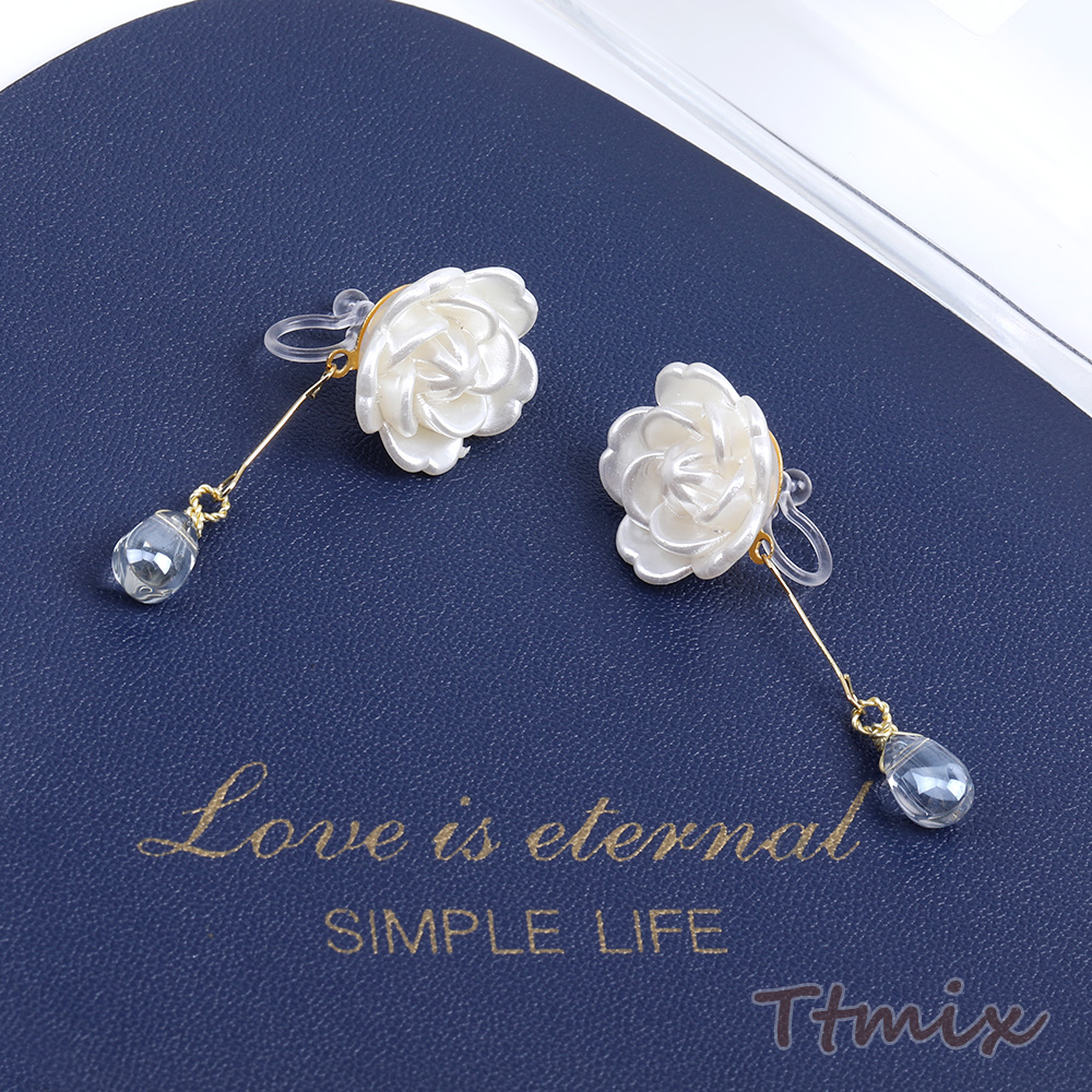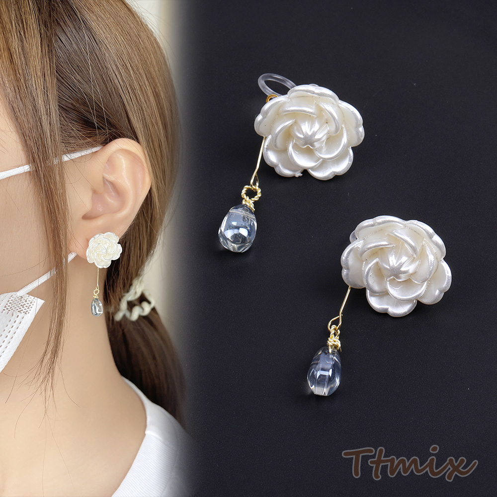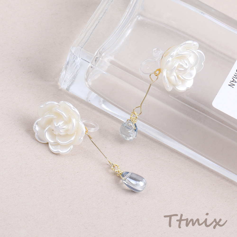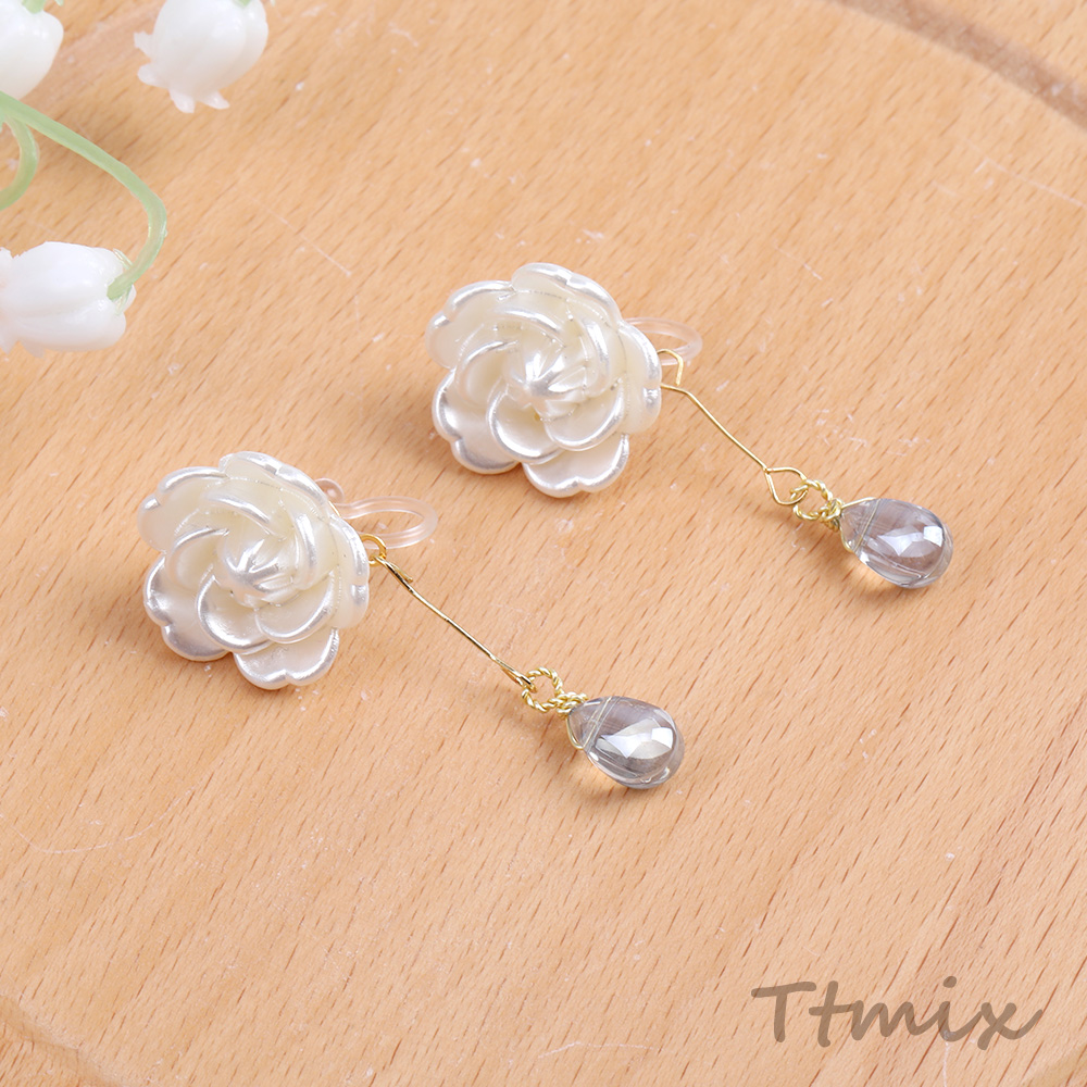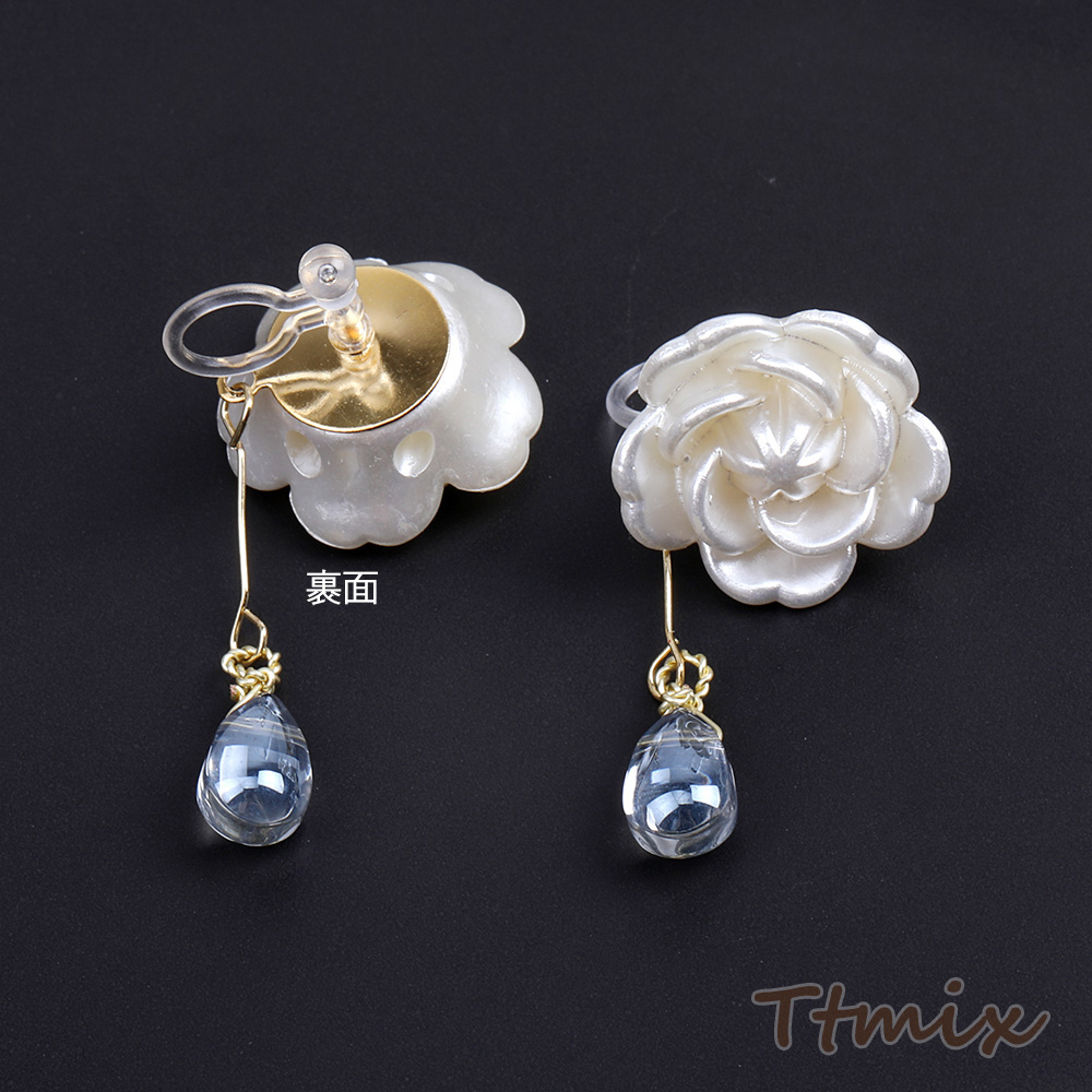 樹脂ノンホールピアス フラワー しずく型(1ペア)