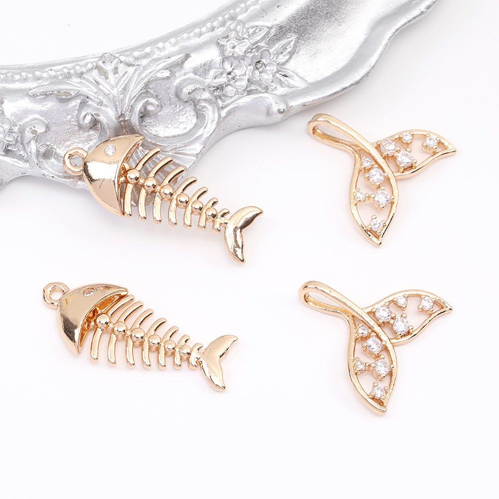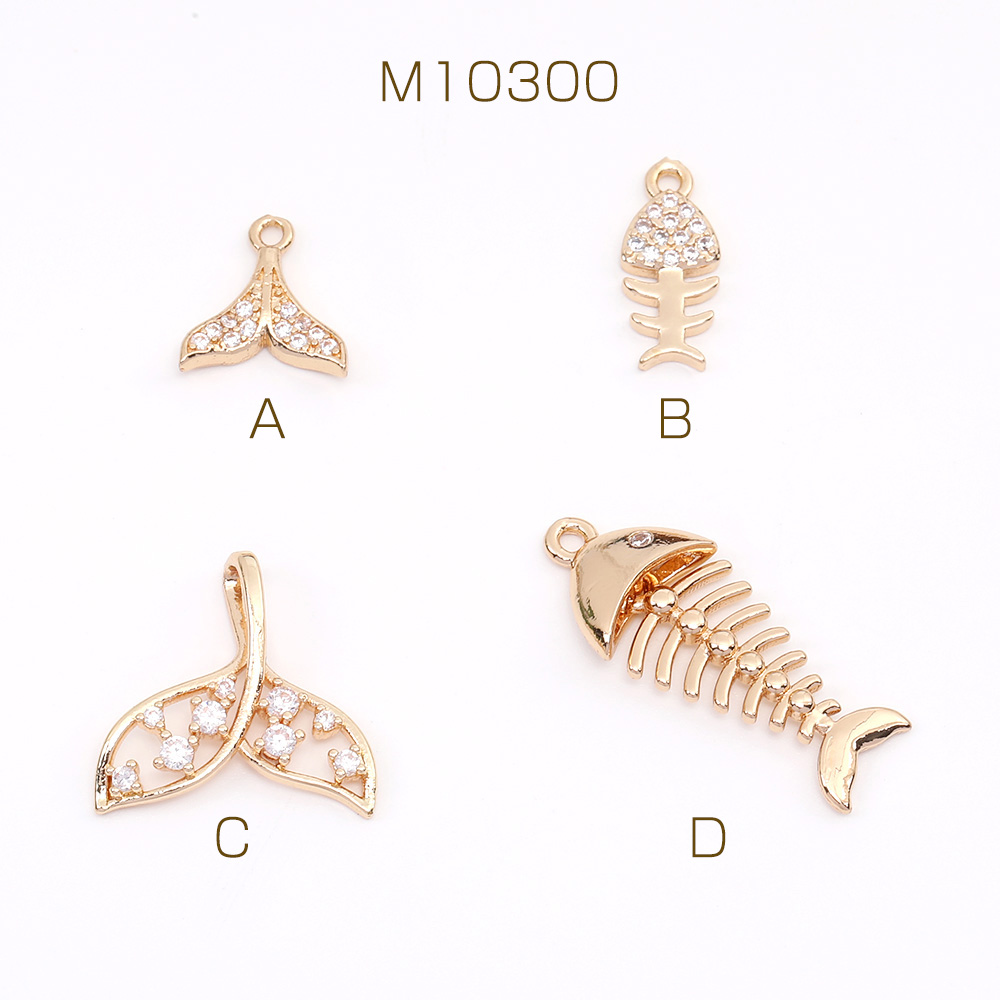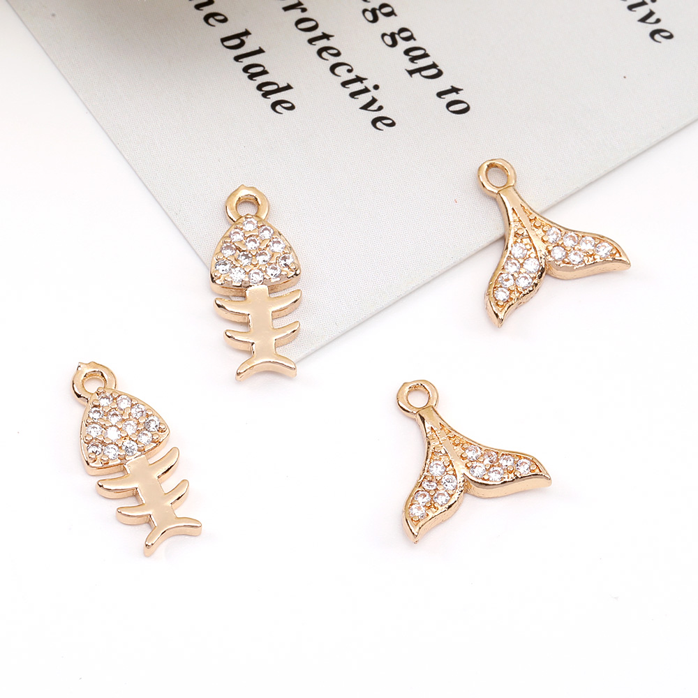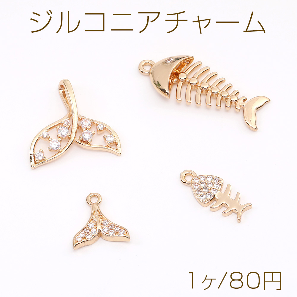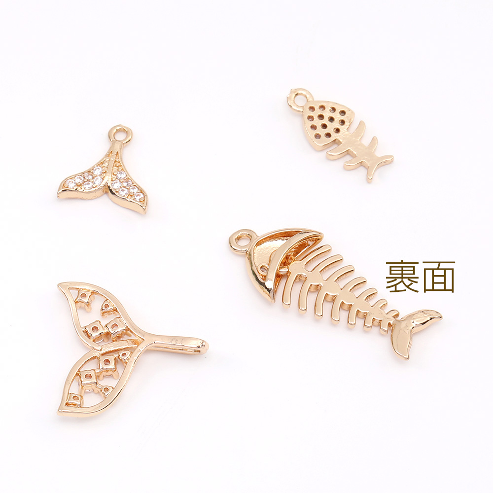 高品質ジルコニアチャーム 魚のしっぽ 魚の骨 ゴールド