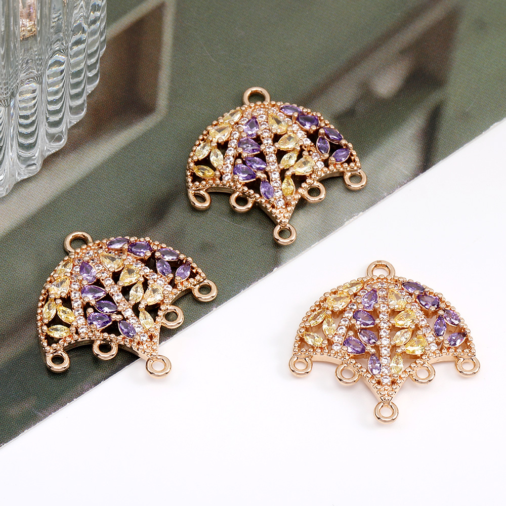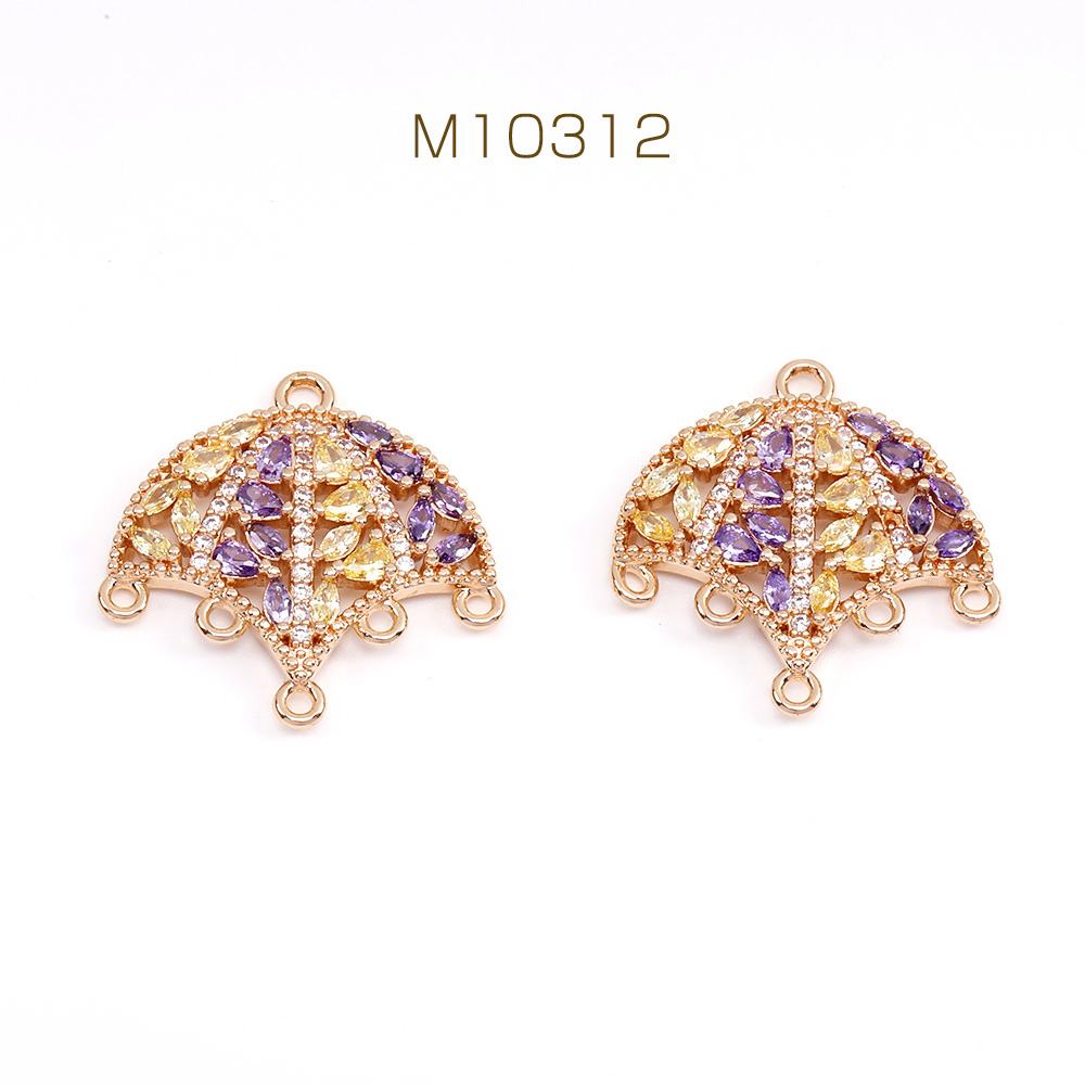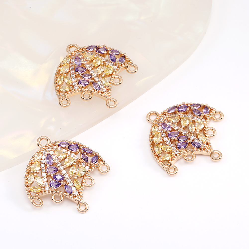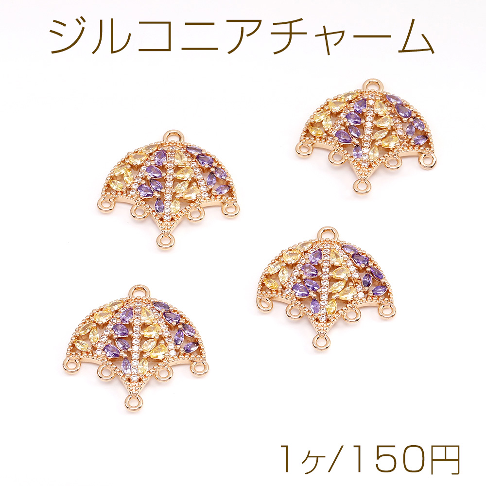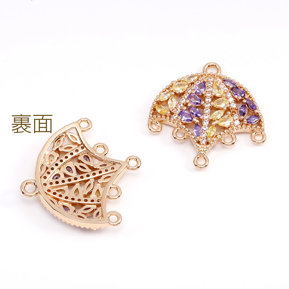高品質ジルコニアチャーム コネクターチャーム 6カン付き 傘 23×23mm ゴールド(1ヶ)