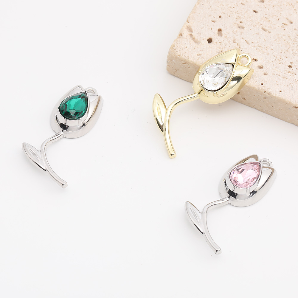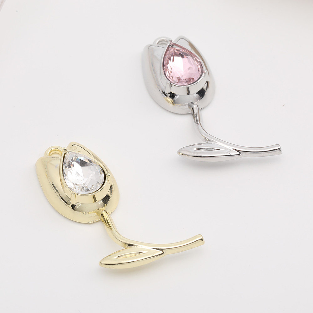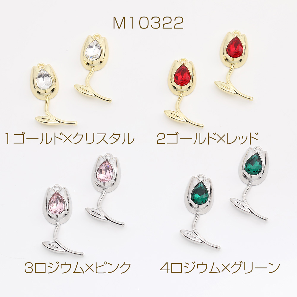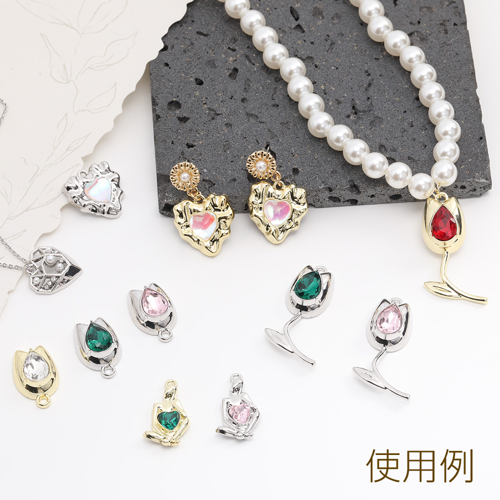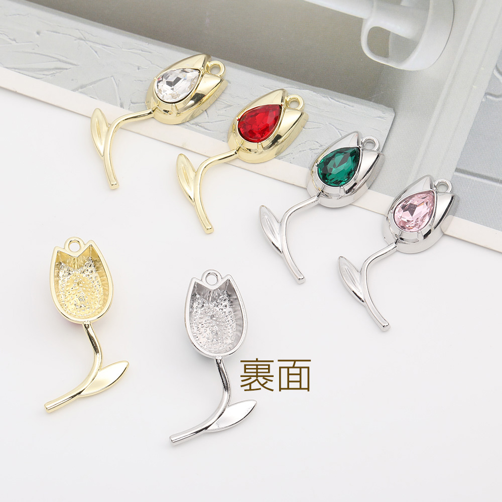 ガラスストーンチャーム フラワー チューリップ 14×37mm(2ヶ)
