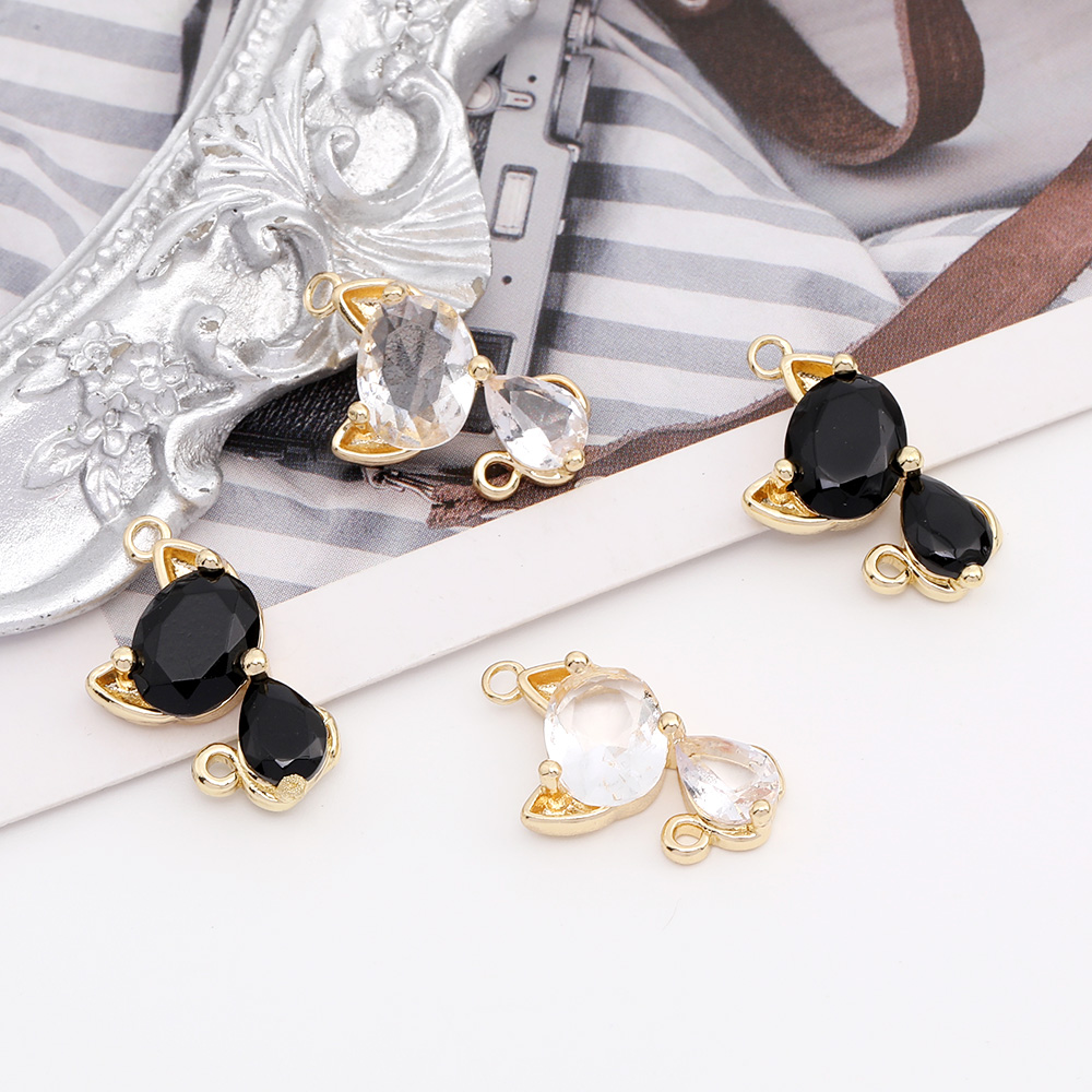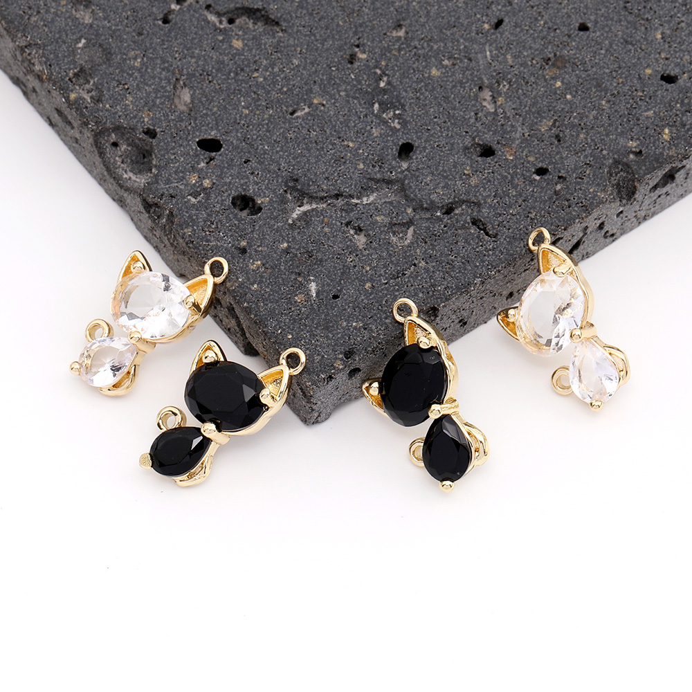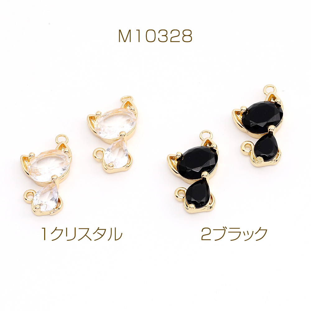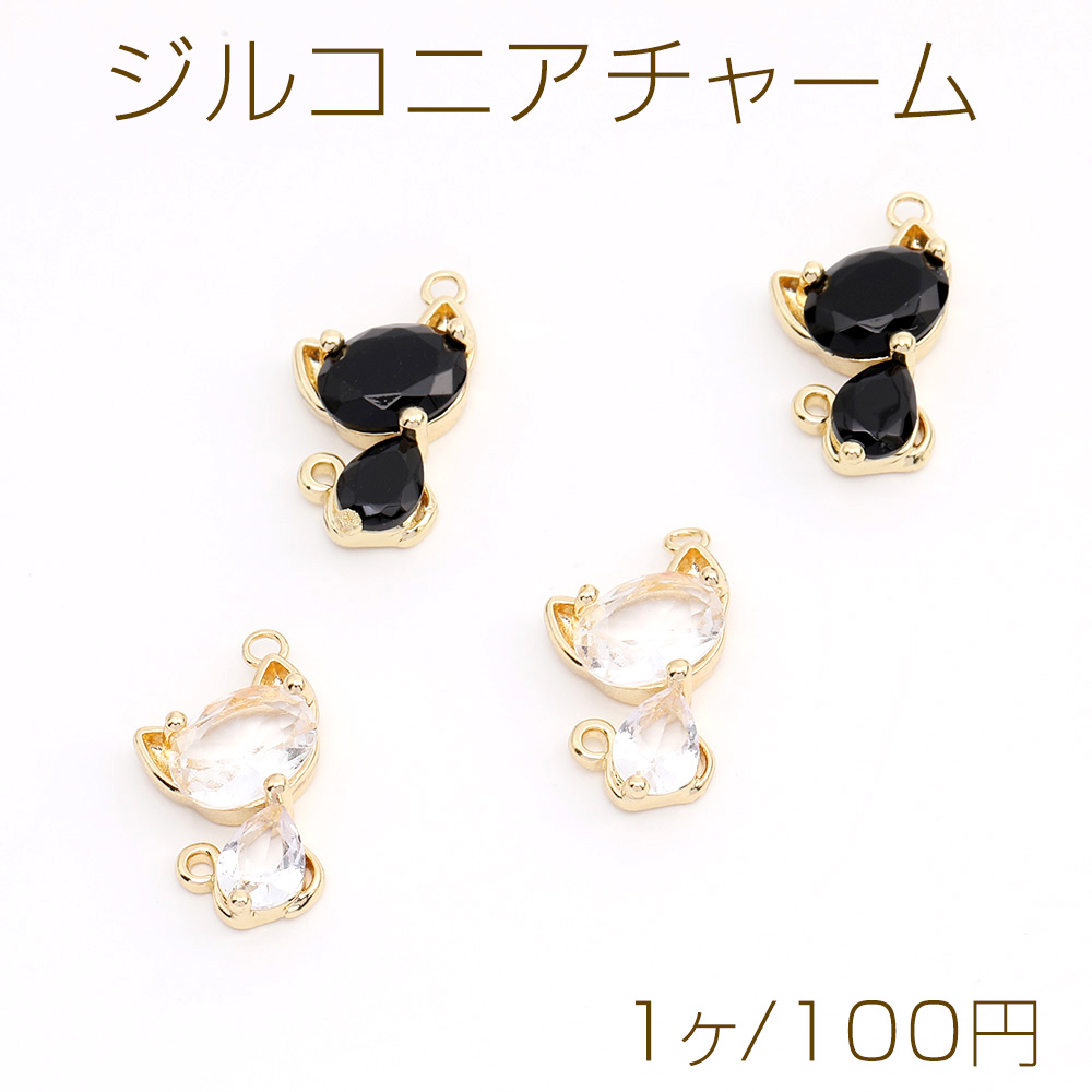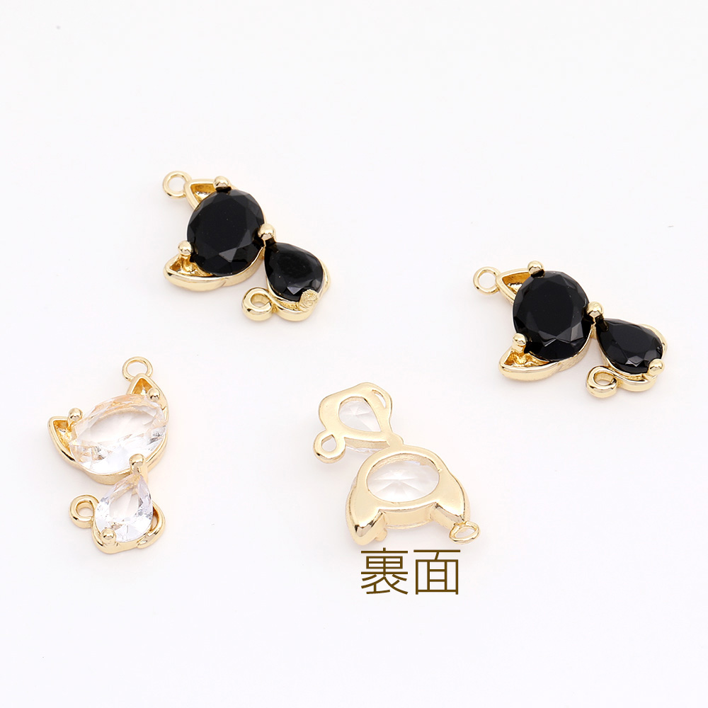 ジルコニアチャーム コネクターチャーム 猫 2カン付き 11×19mm ゴールド(1ヶ)