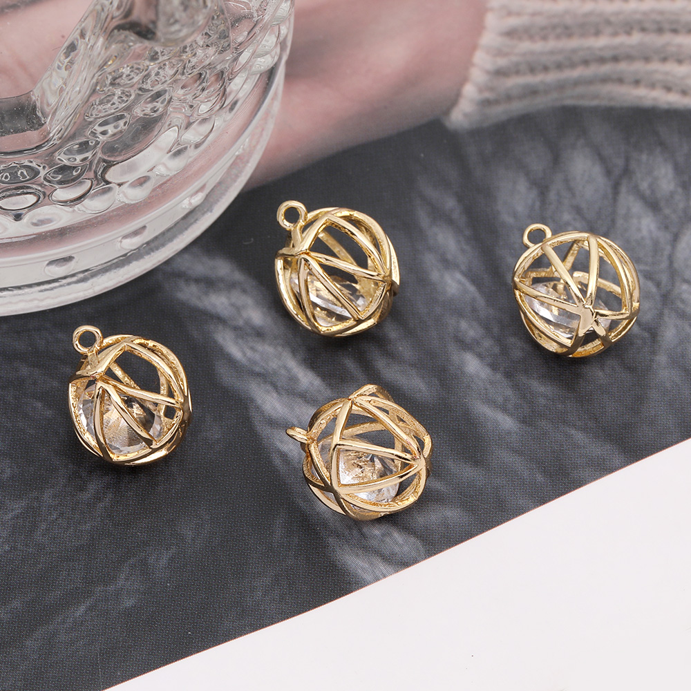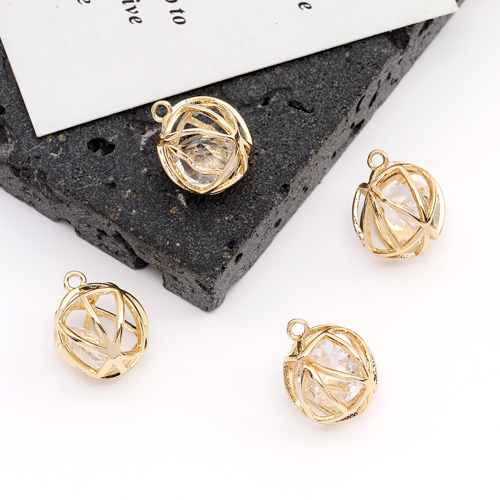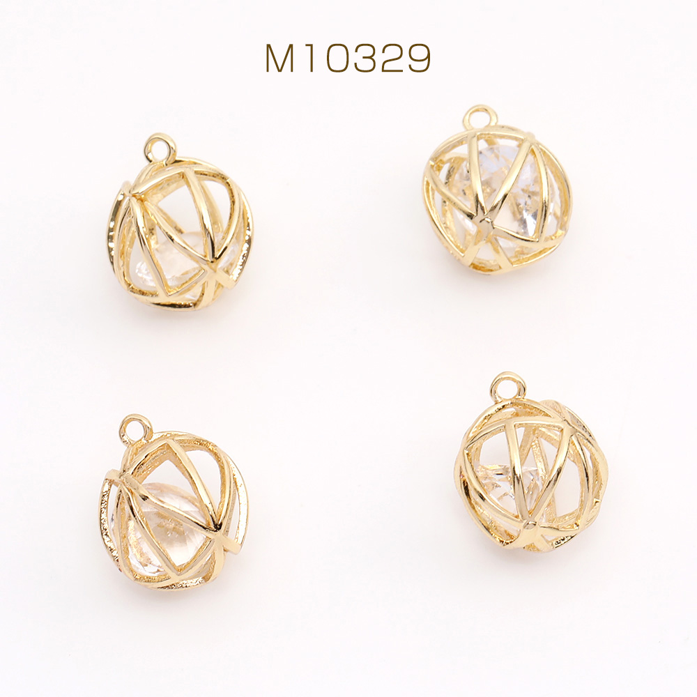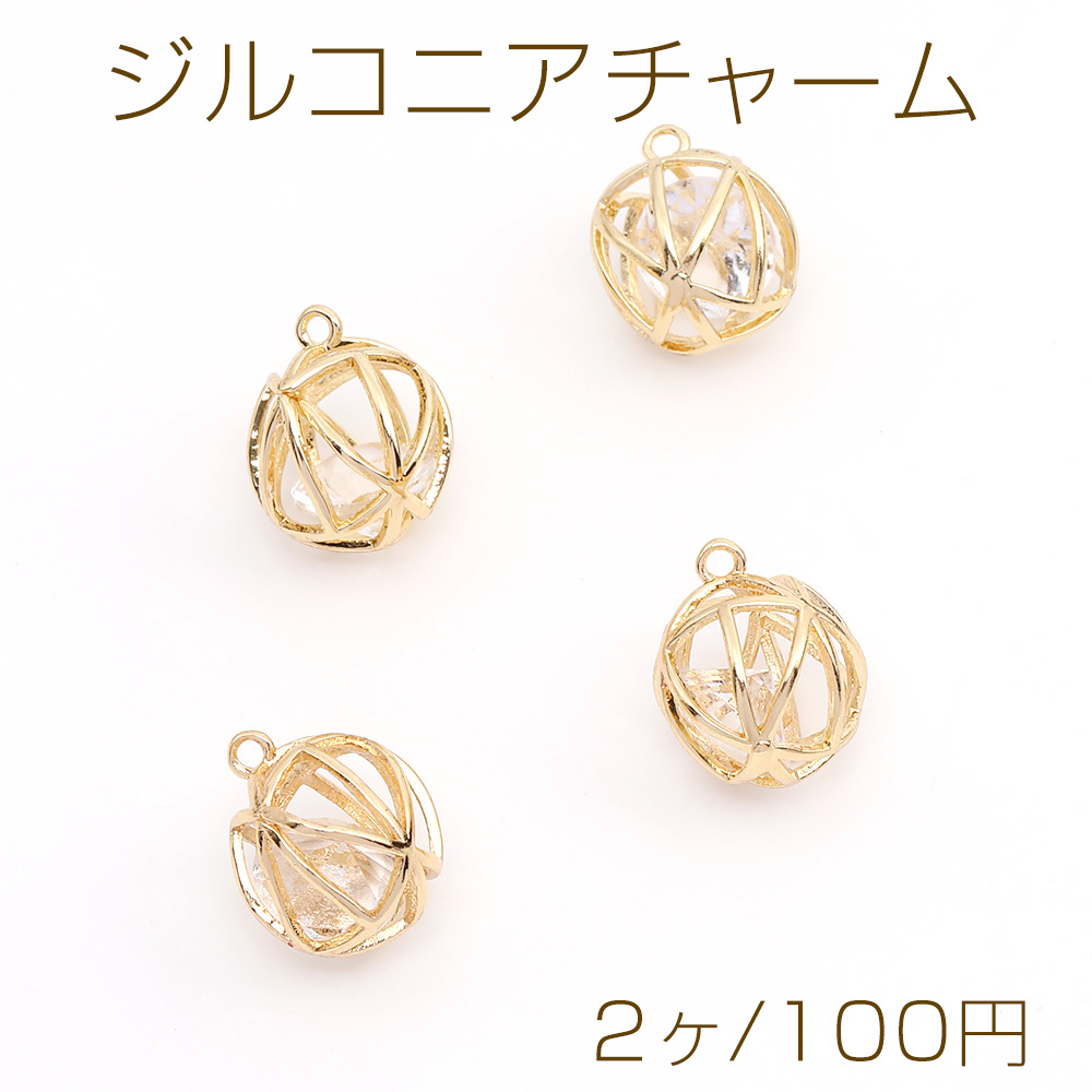 ジルコニアチャーム 透かしチャーム ボール 11×13mm ゴールド(2ヶ)