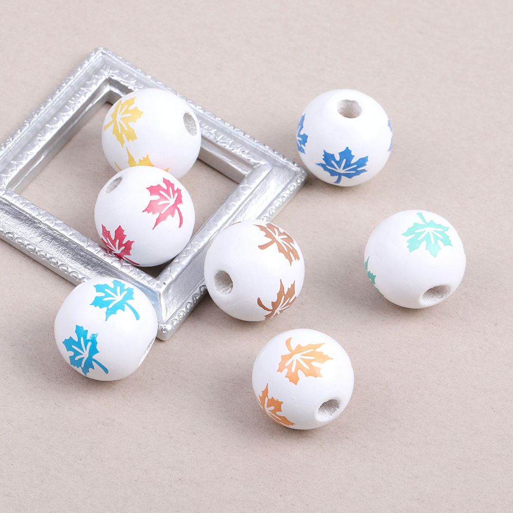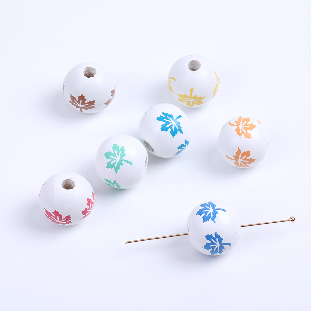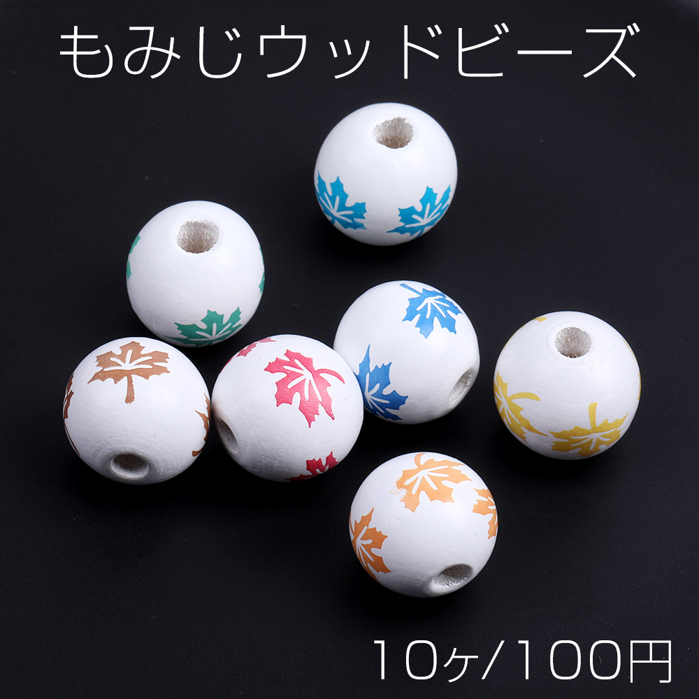もみじウッドビーズ 丸玉 縦穴あり ラウンドウッドビーズ 16mm(10ヶ)