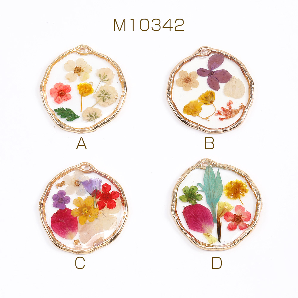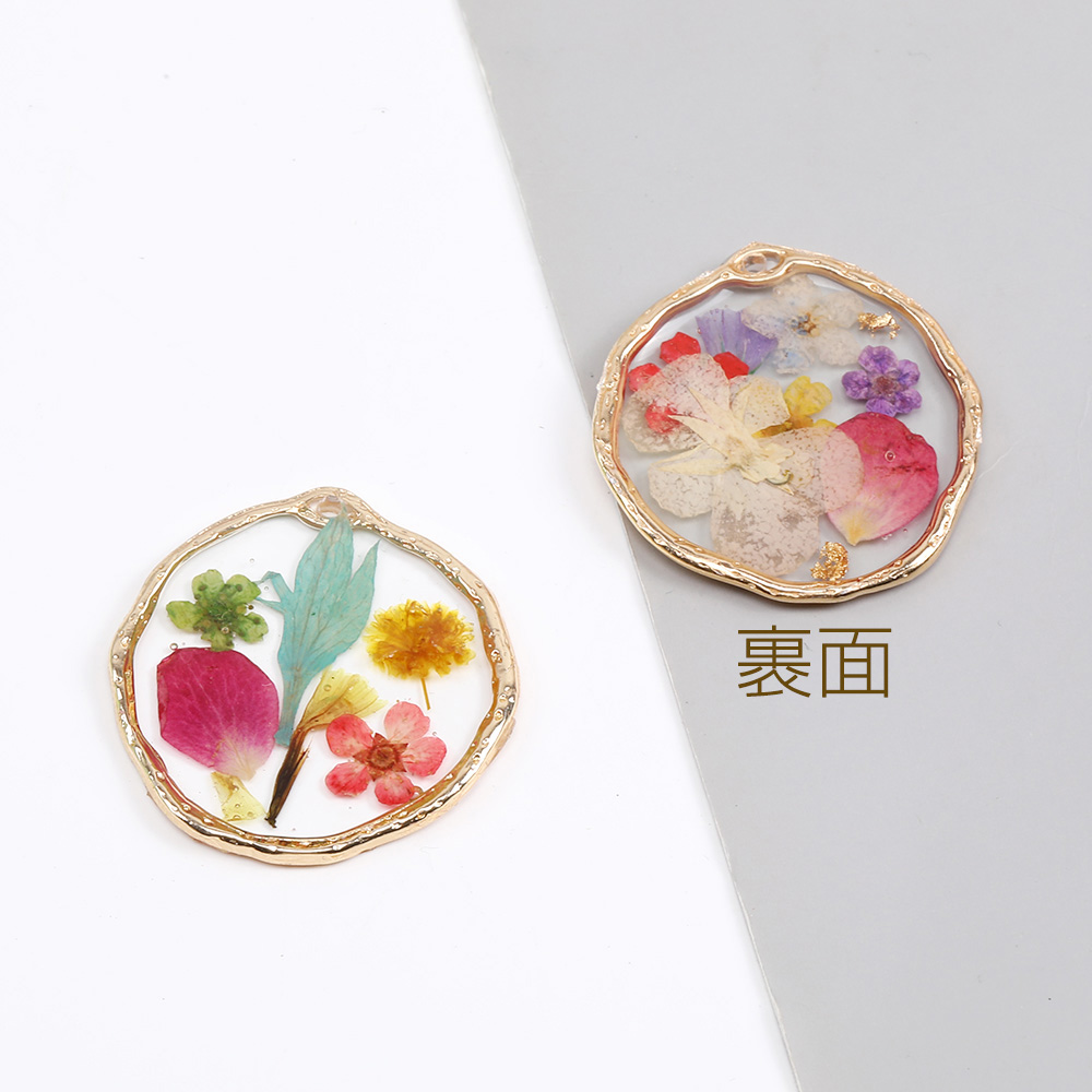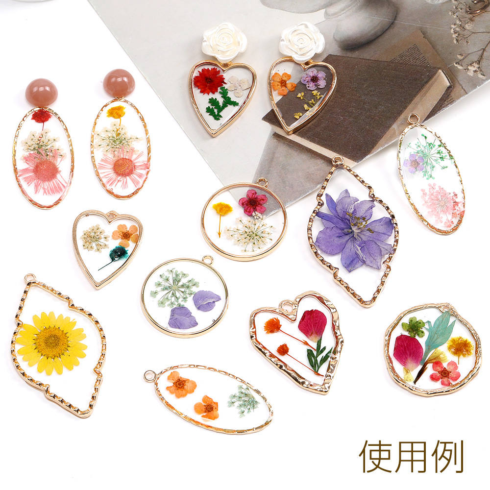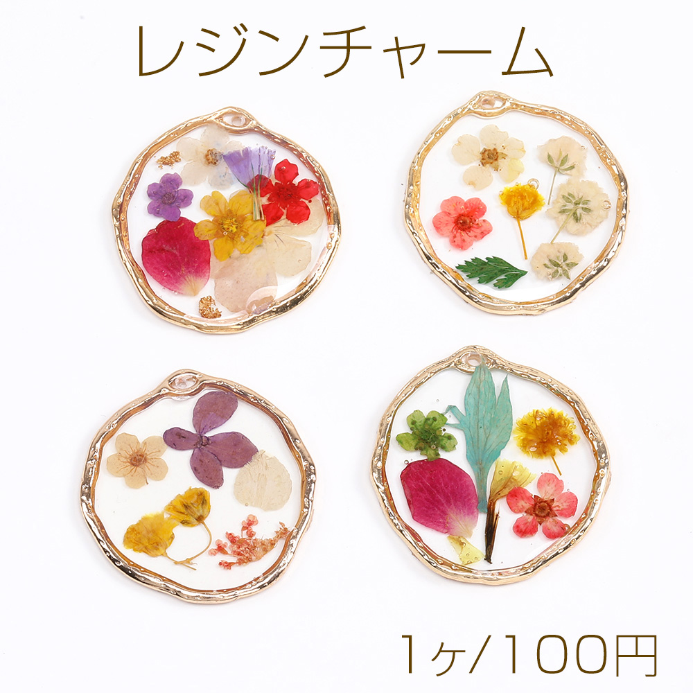 レジンチャーム ラウンド ドライフラワー封入 ゴールド