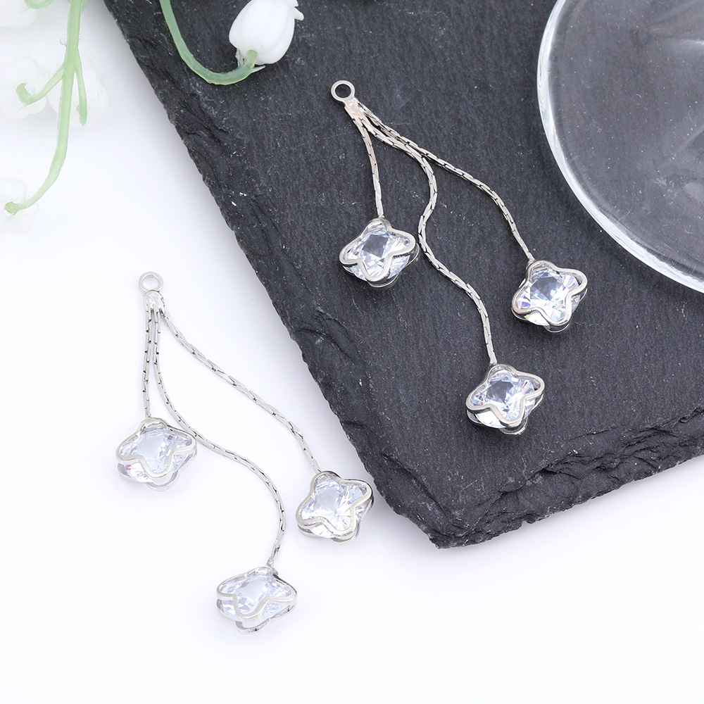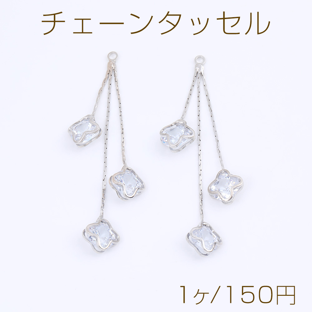 チェーンタッセル チェーンチャーム ジルコニア付き 10×63mm ロジウム(1ヶ)