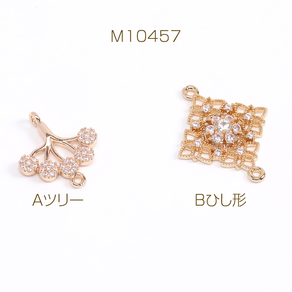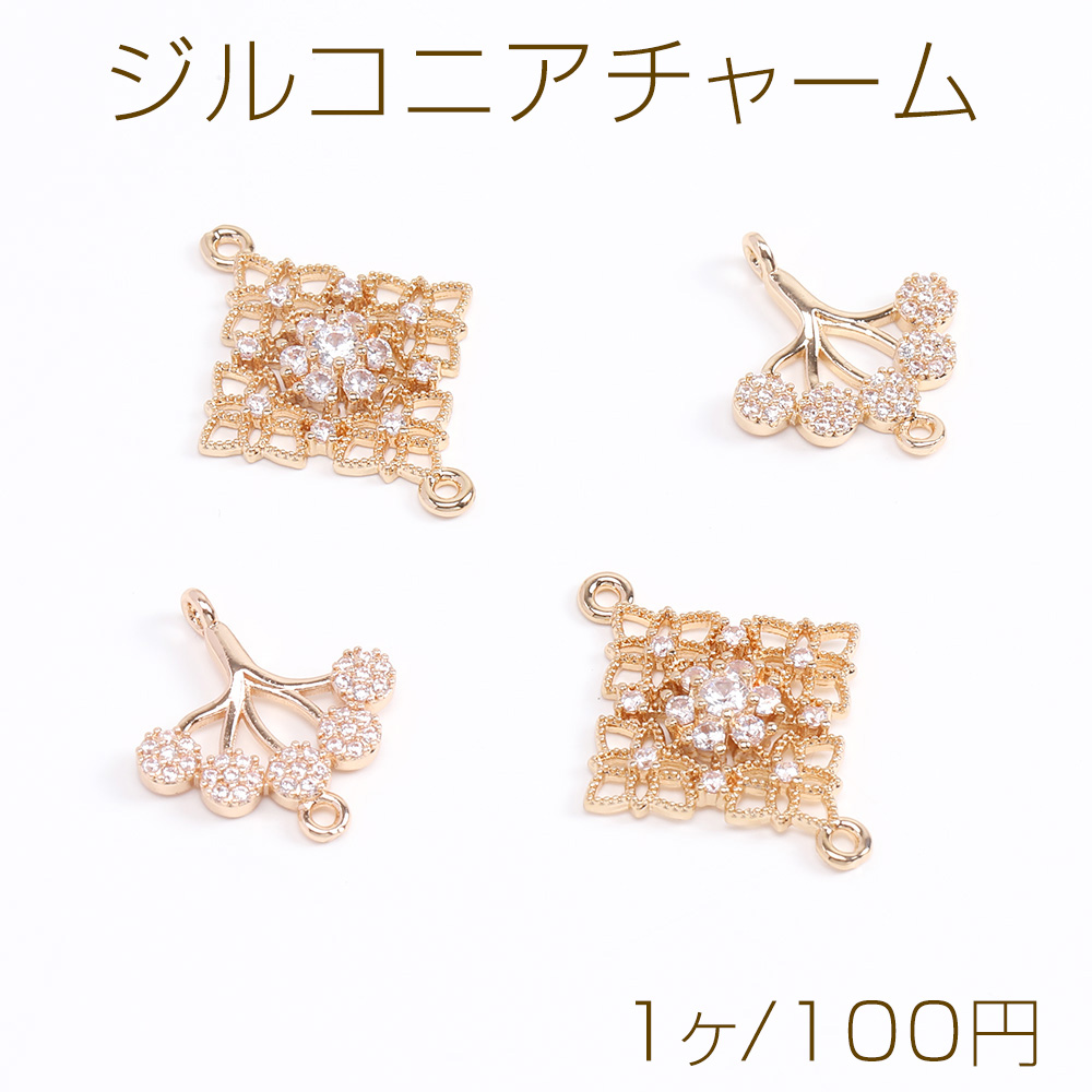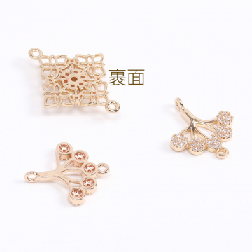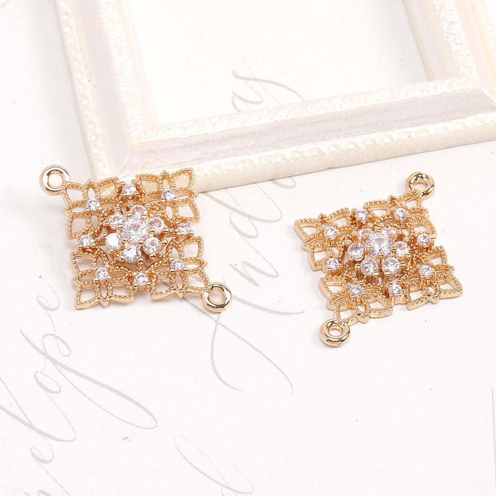 高品質ジルコニアチャーム コネクターチャーム ツリー ひし形 2カン付き ゴールド(1ヶ)
