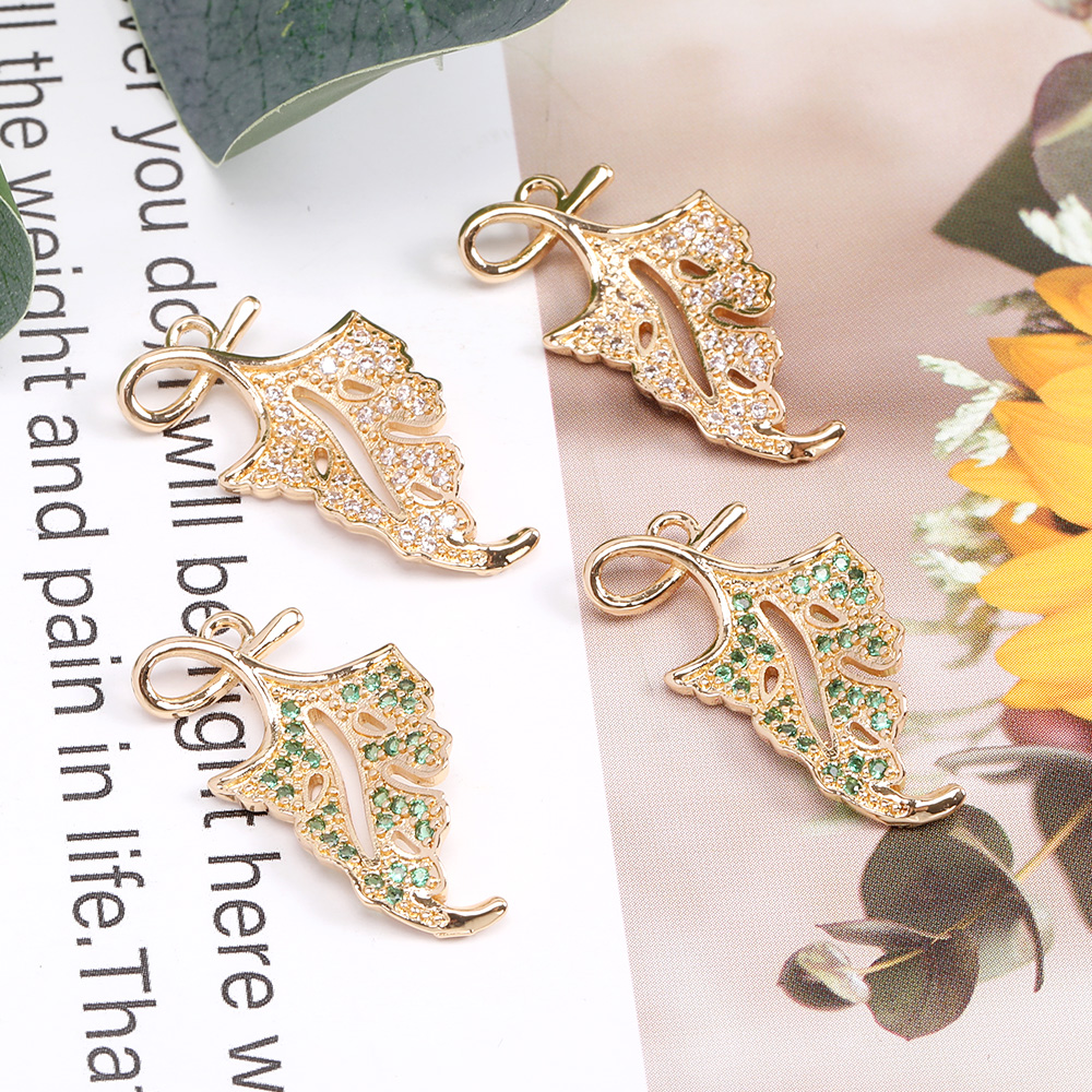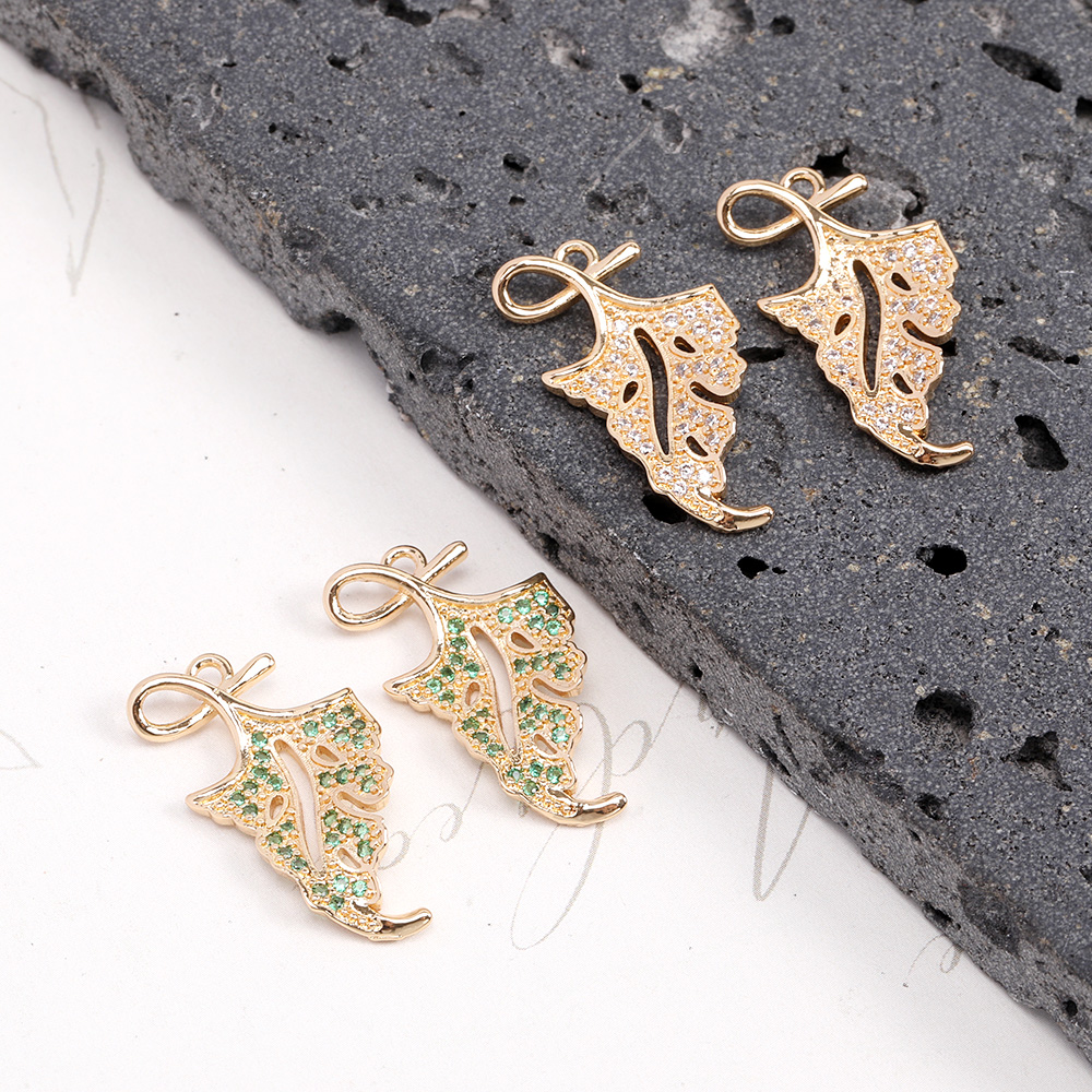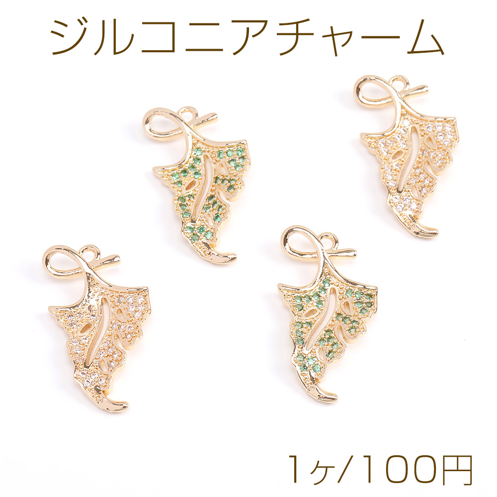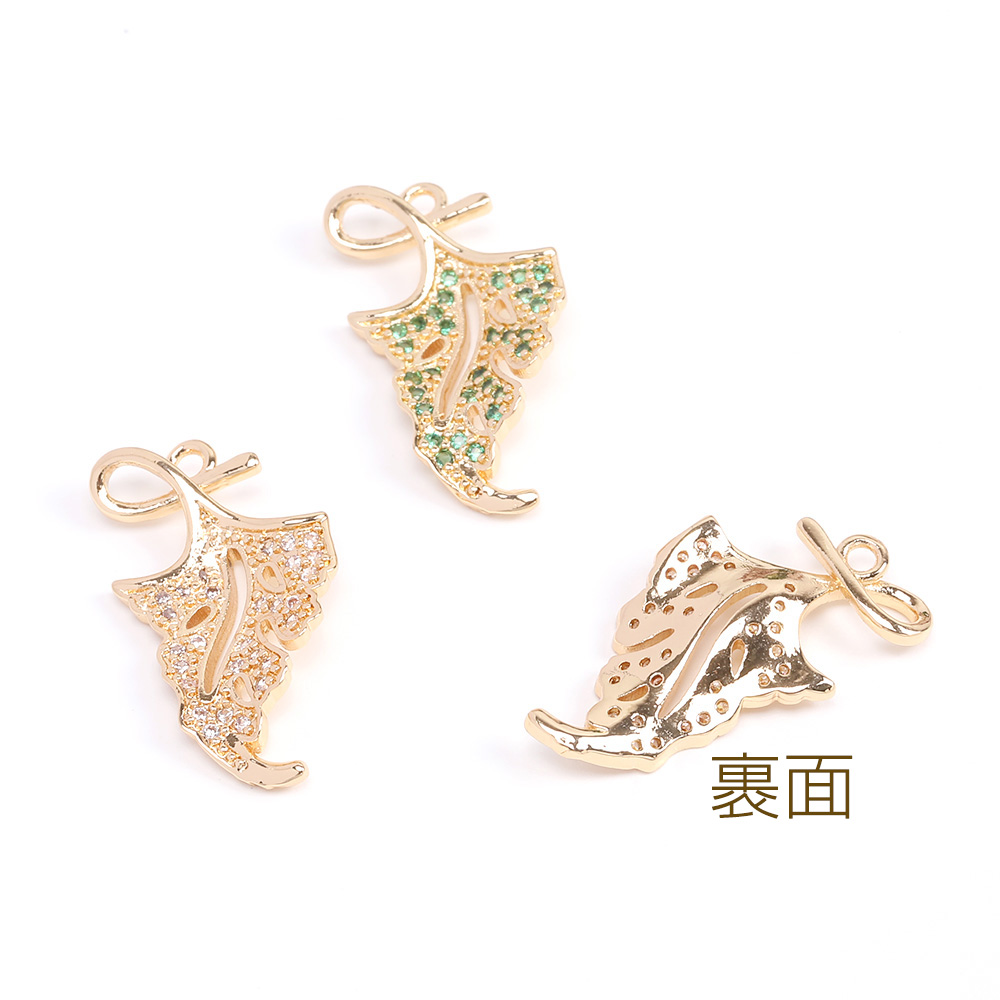 高品質ジルコニアチャーム リーフ 13×25mm ゴールド(1ヶ)