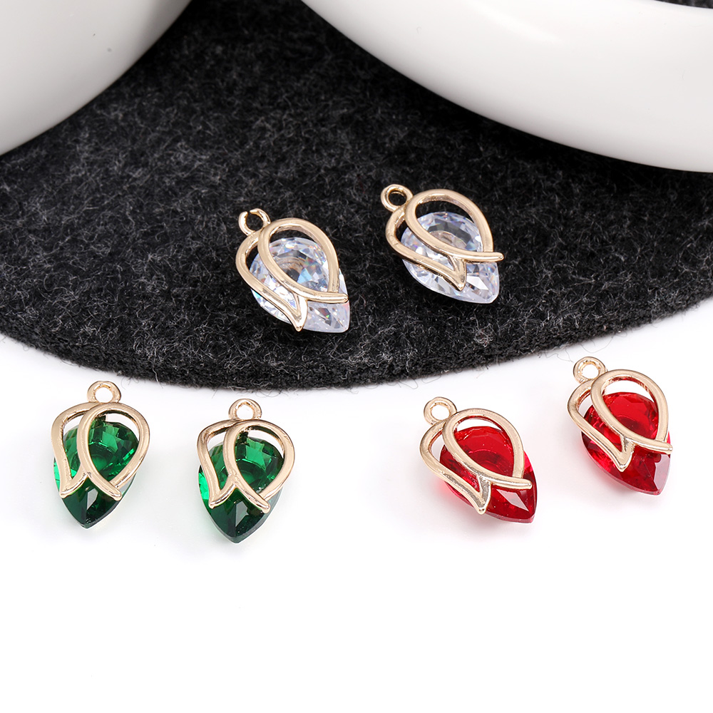 高品質フレームガラスチャーム チューリップ 8×13mm ゴールド(2ヶ)