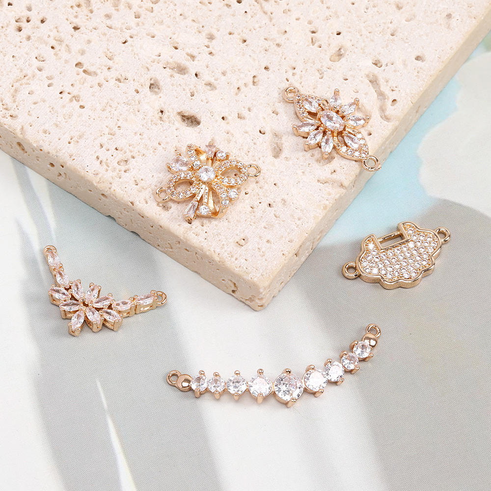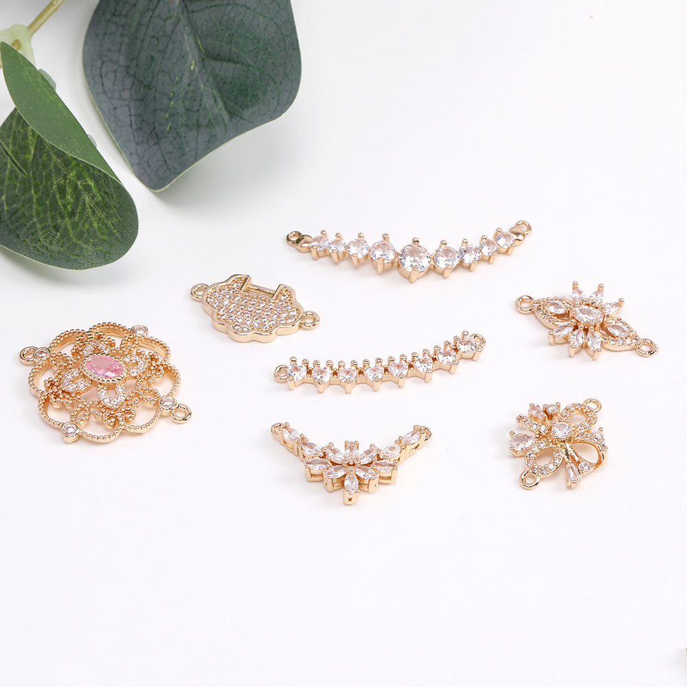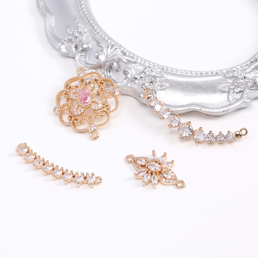高品質ジルコニアチャーム コネクターチャーム 2カン付き ゴールド