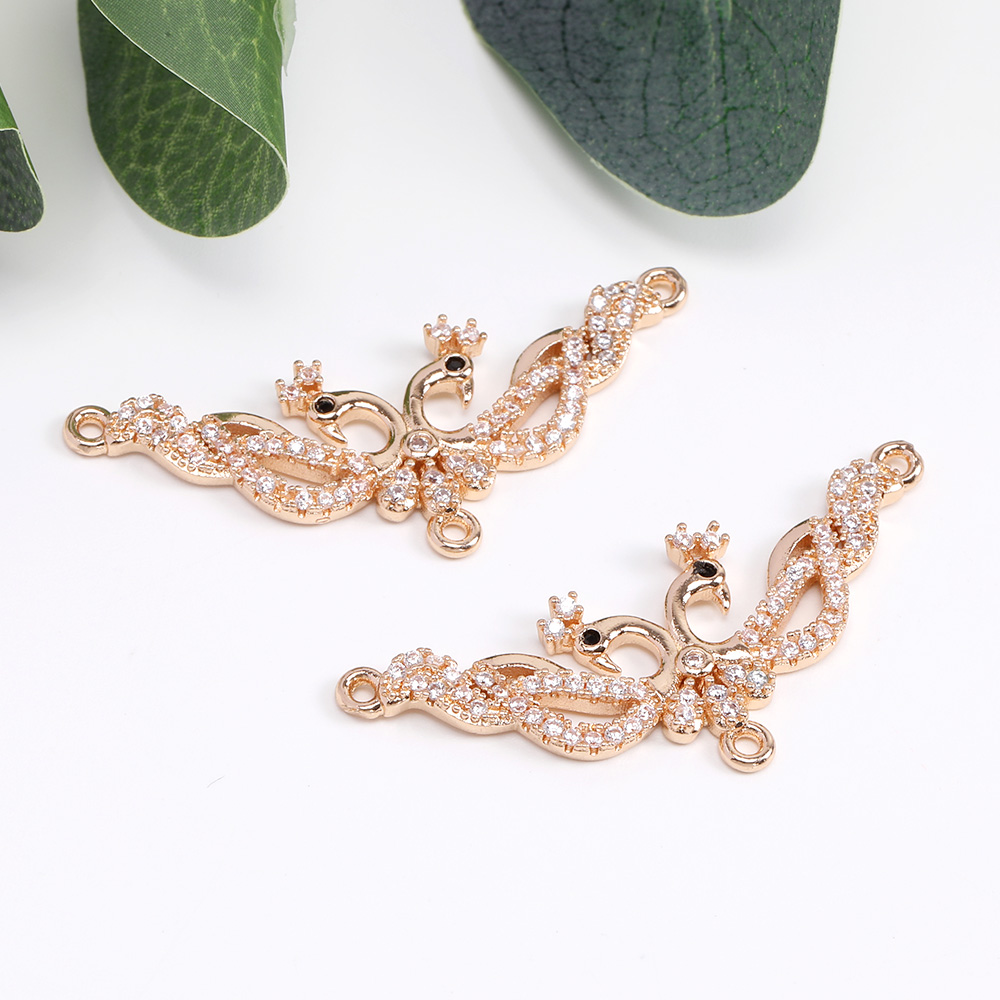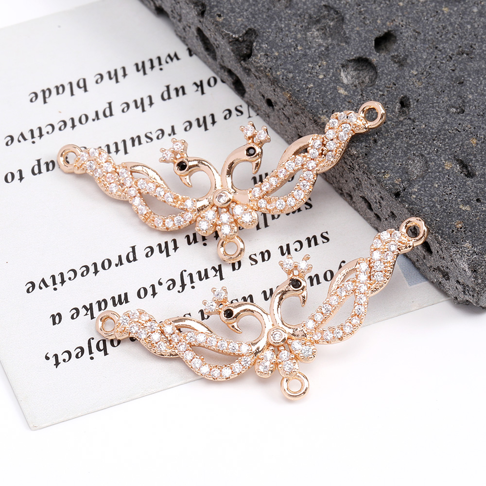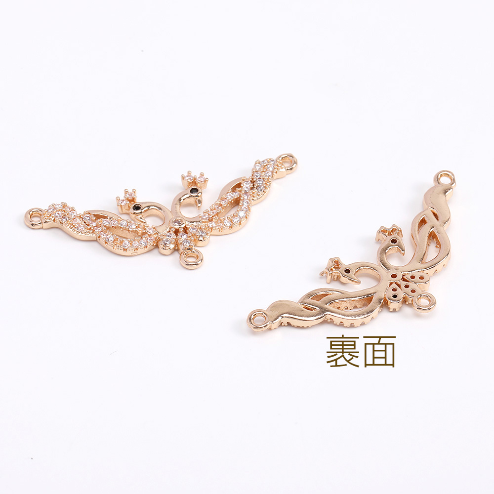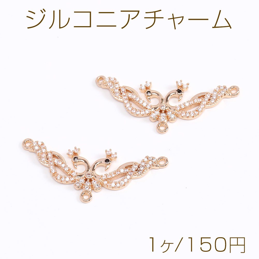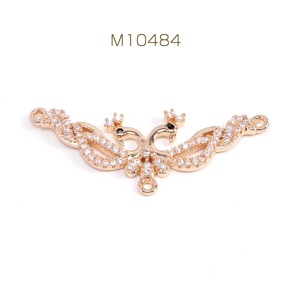 高品質ジルコニアチャーム コネクターチャーム 3カン付き 15×38mm ゴールド(1ヶ)