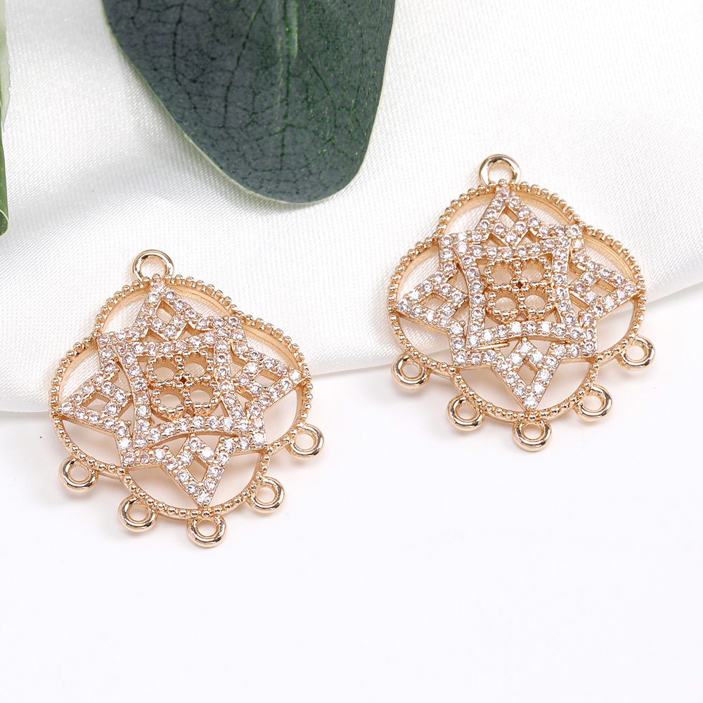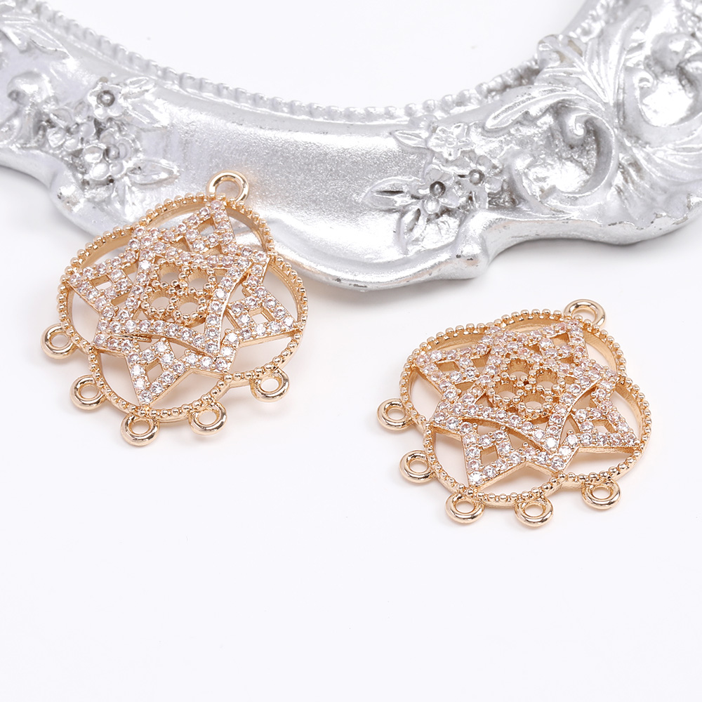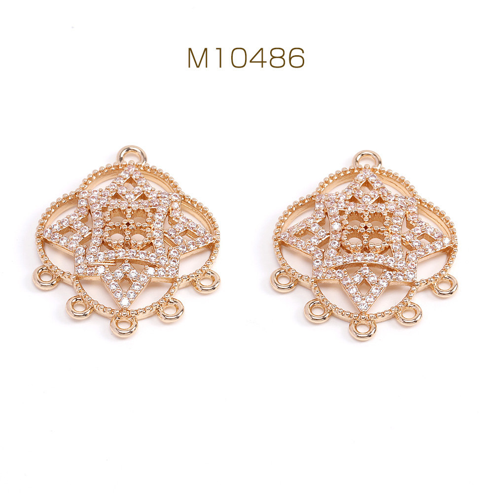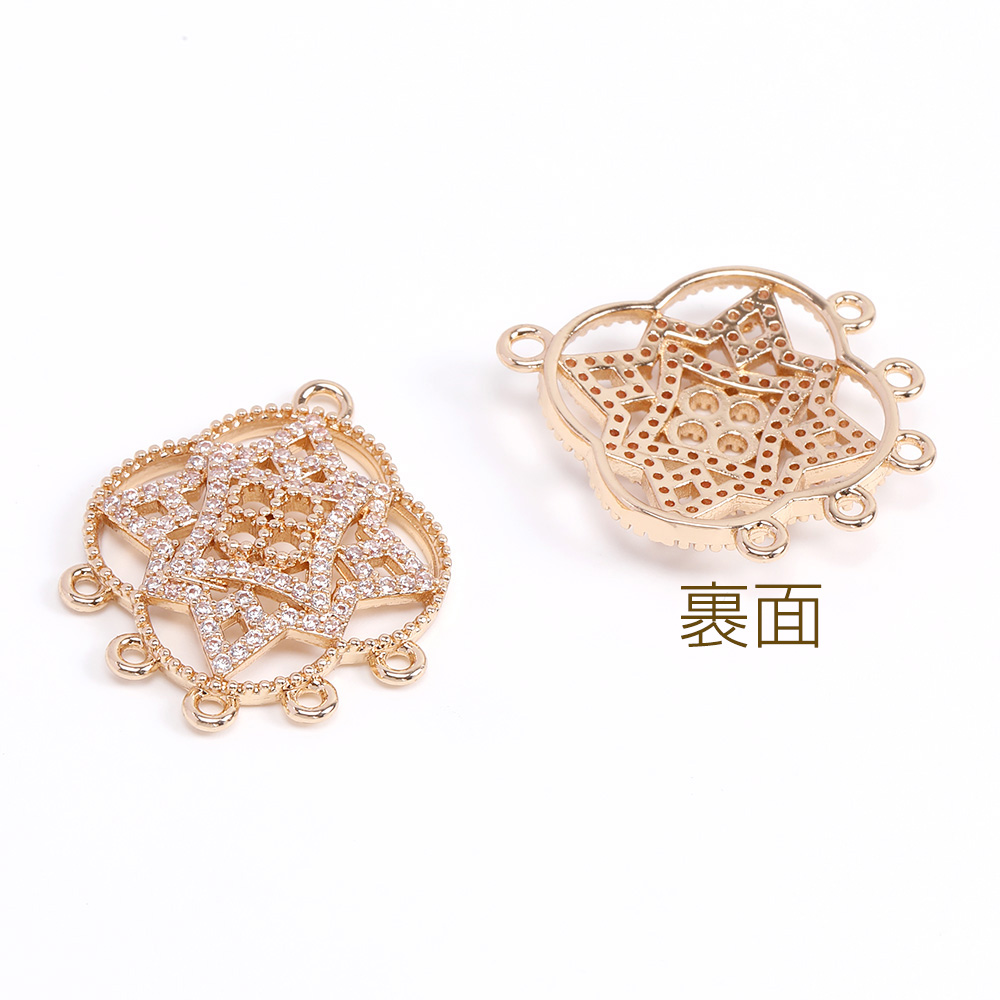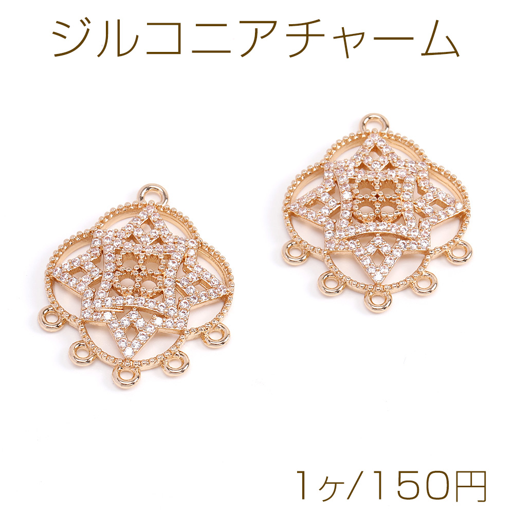 高品質ジルコニアチャーム コネクターチャーム 6カン付き 22×27mm ゴールド(1ヶ)