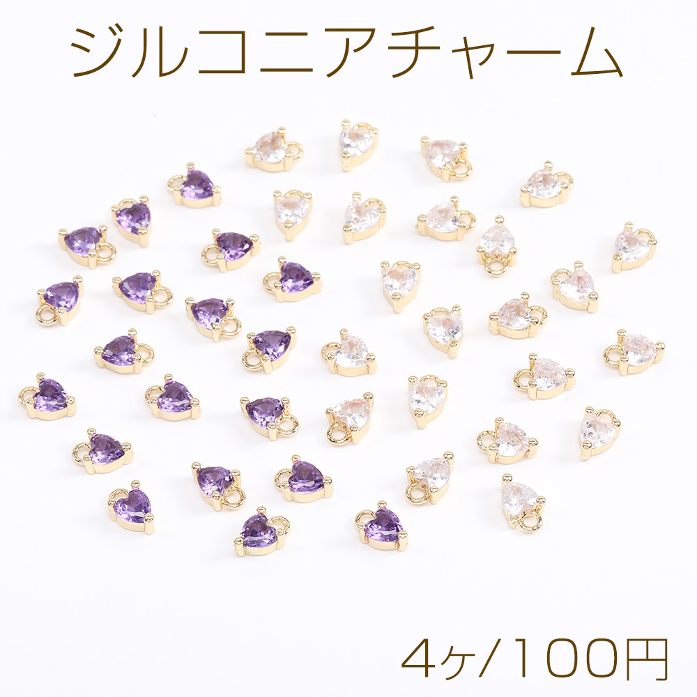 ジルコニアチャーム ハート型 4×7mm ゴールド(4ヶ)