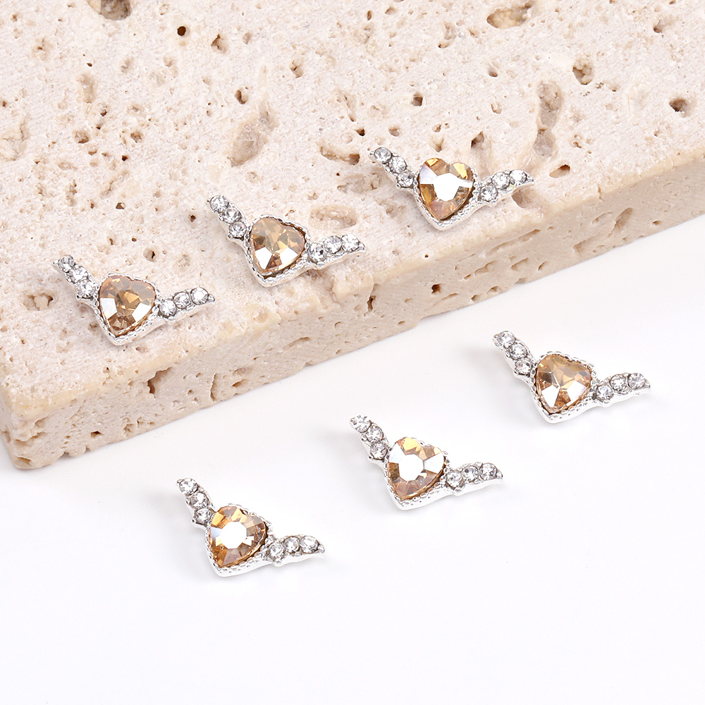 ネイルパーツ メタルネイルパーツ ラインストーンネイルパーツ 天使の羽とハート 5×12mm シルバー(4ヶ)