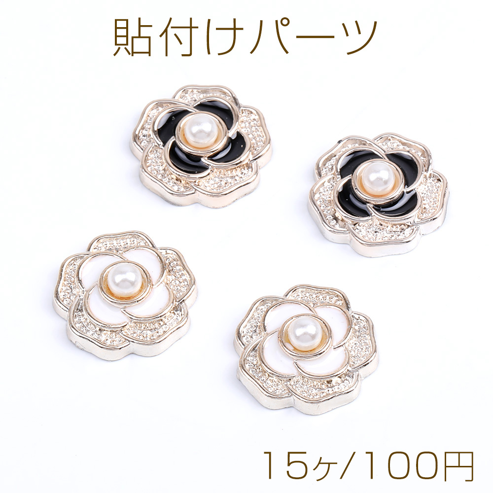 貼付けパーツ アクリル貼付けパーツ アクリルカボション パール&エポ付きフラワー 16mm(15ヶ)