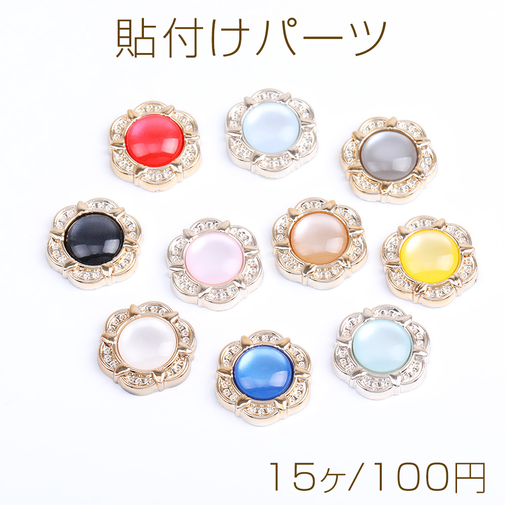 貼付けパーツ アクリル貼付けパーツ アクリルカボション キャッツアイ調 フラワー 18mm カラーミックス(15ヶ)