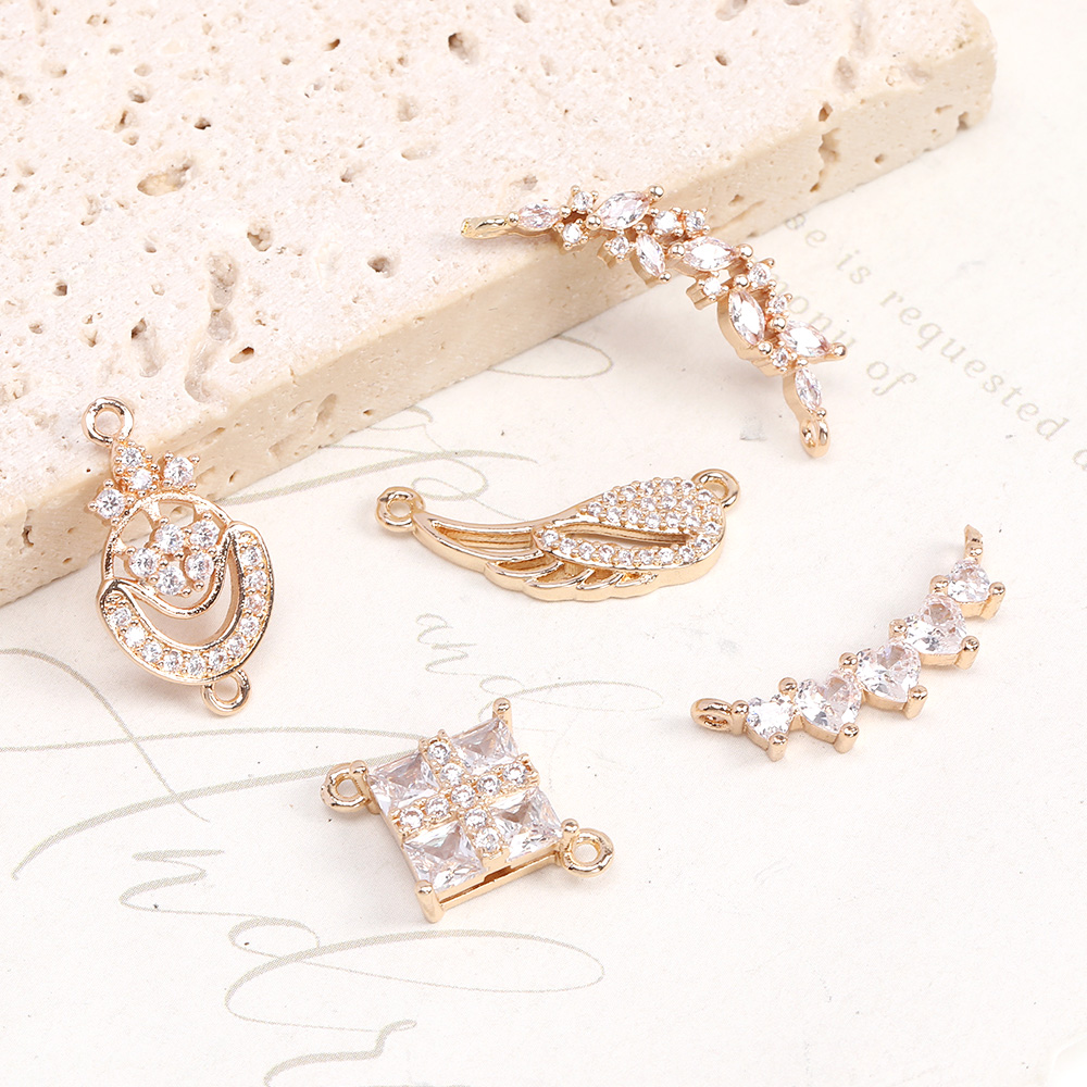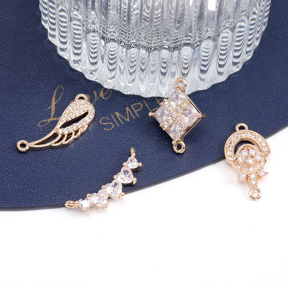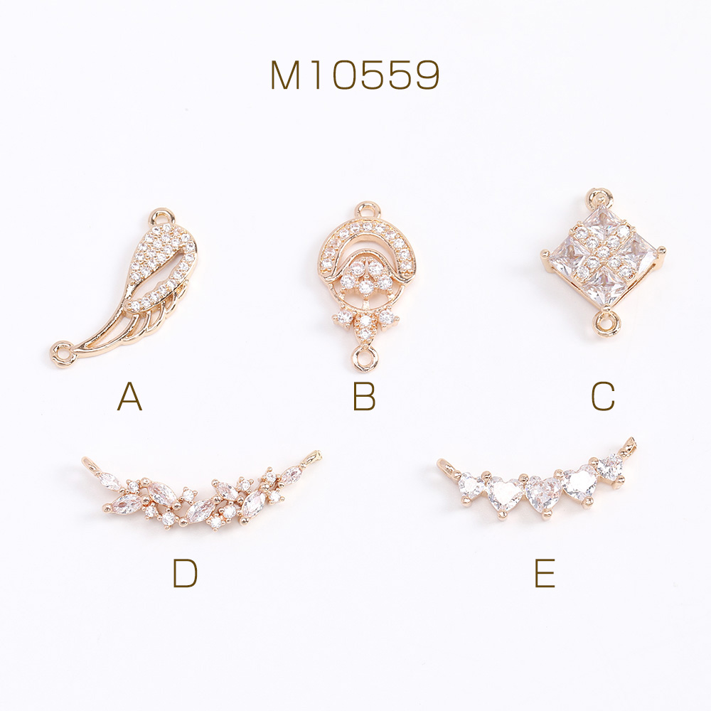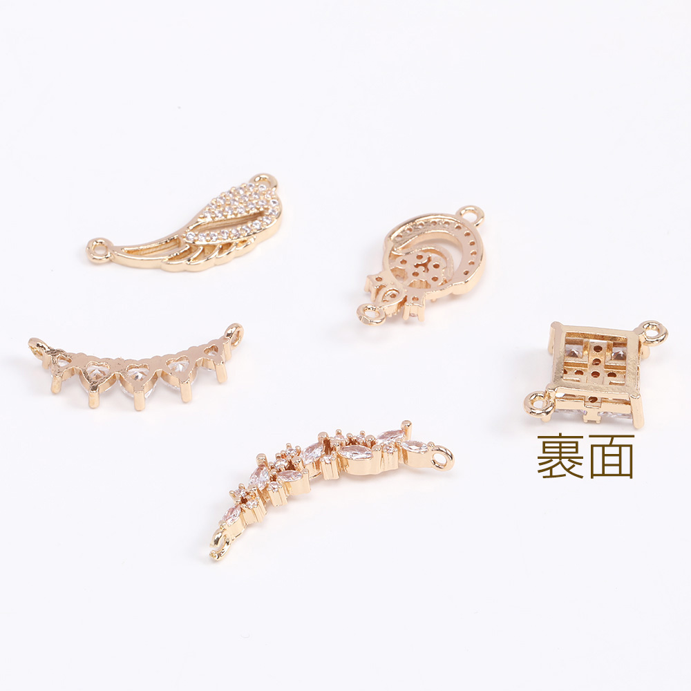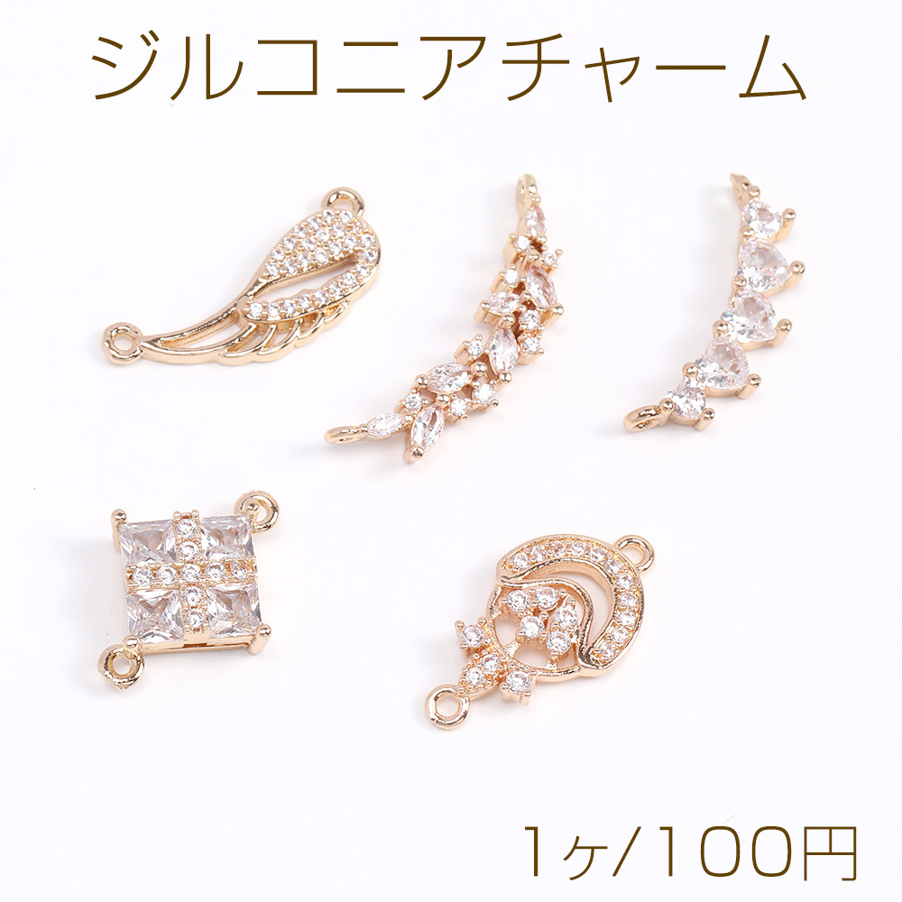 高品質ジルコニアチャーム コネクターチャーム 2カン付き ゴールド