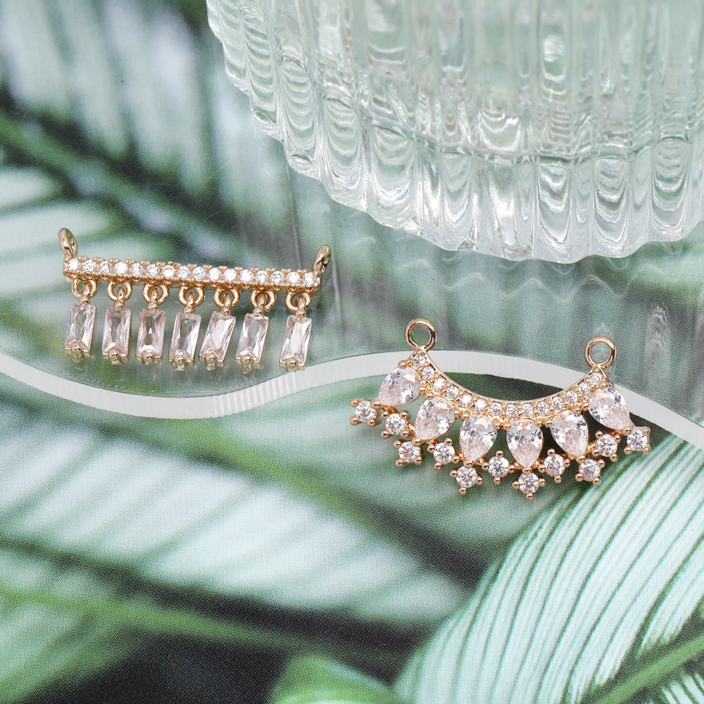 高品質ジルコニアチャーム コネクターチャーム 2カン付き ゴールド