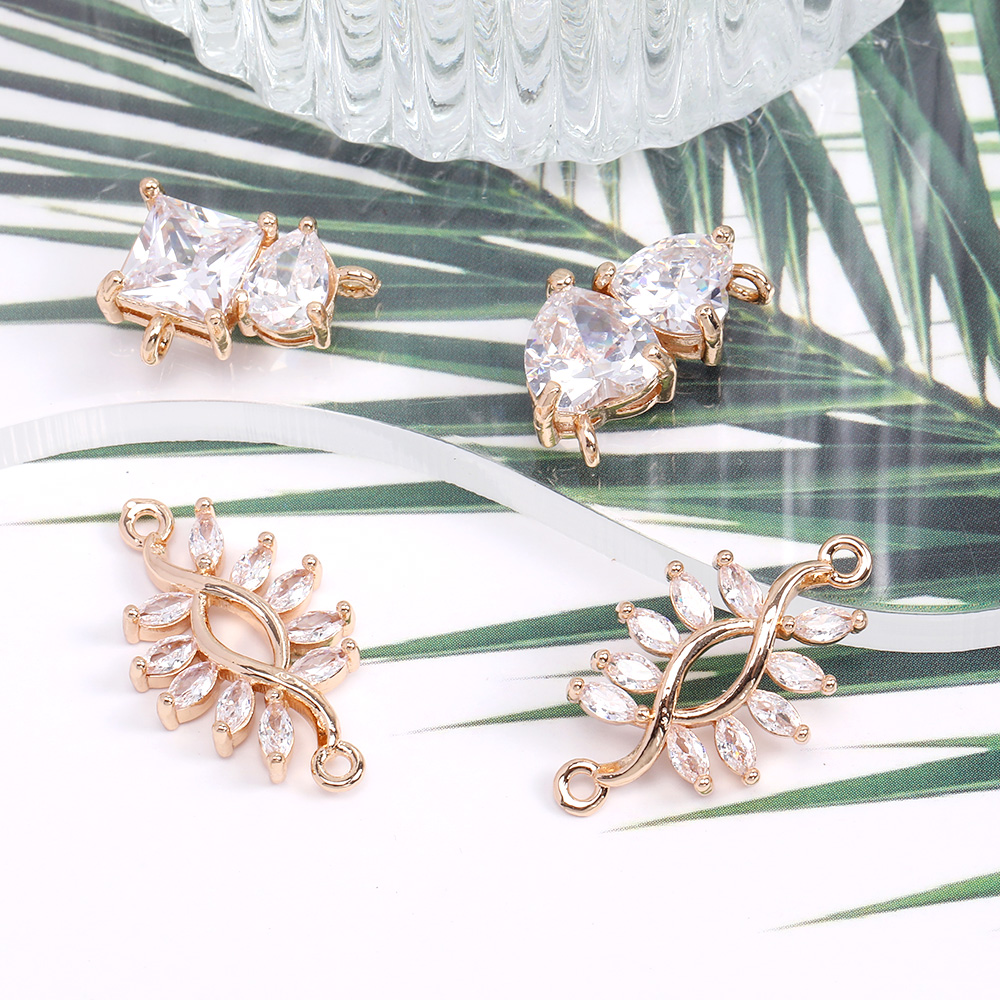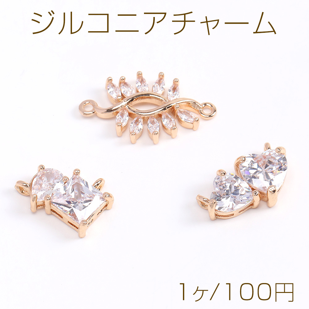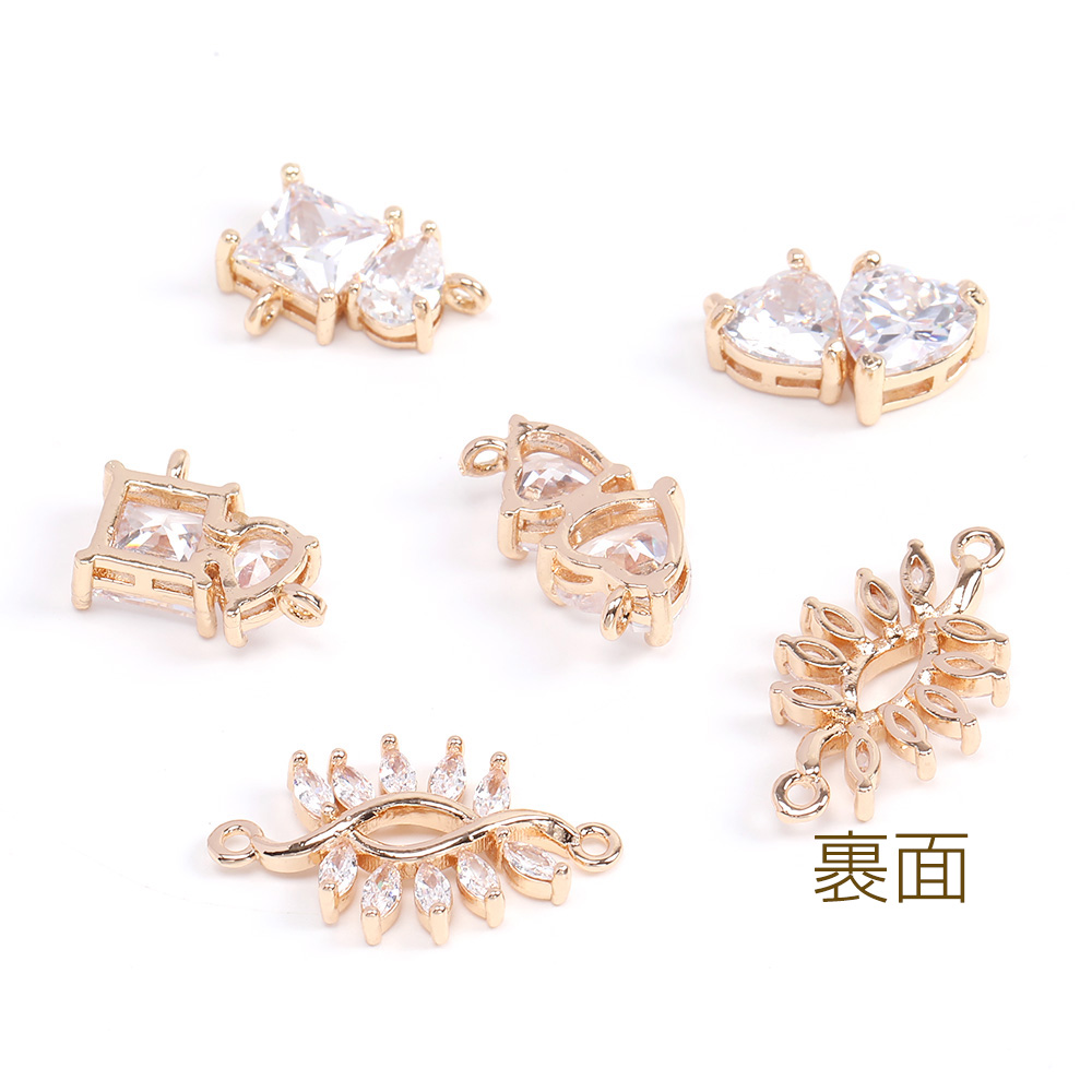 高品質ジルコニアチャーム コネクターチャーム 2カン付き ゴールド