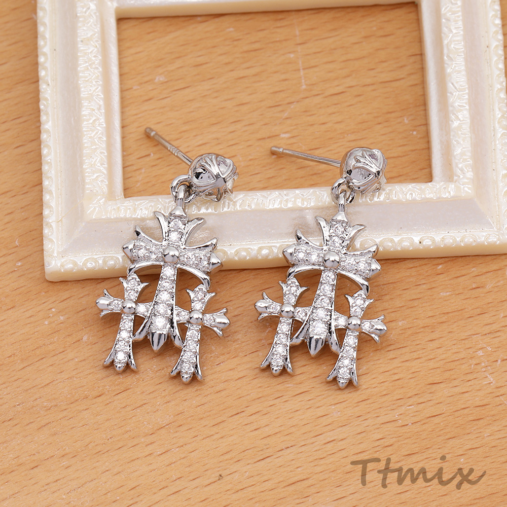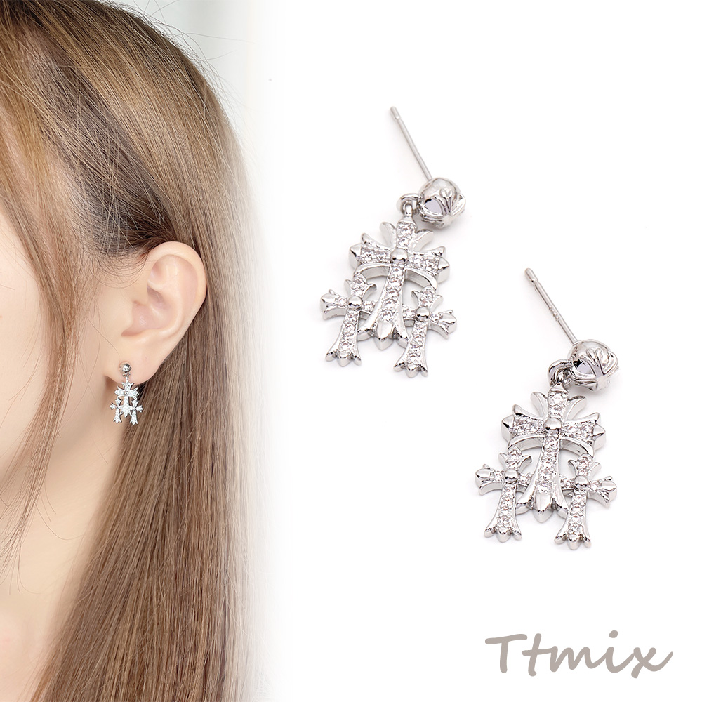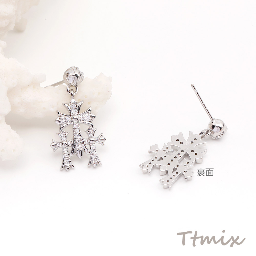 ジルコニアピアス デザインピアス 14×26mm ロジウム(1ペア)
