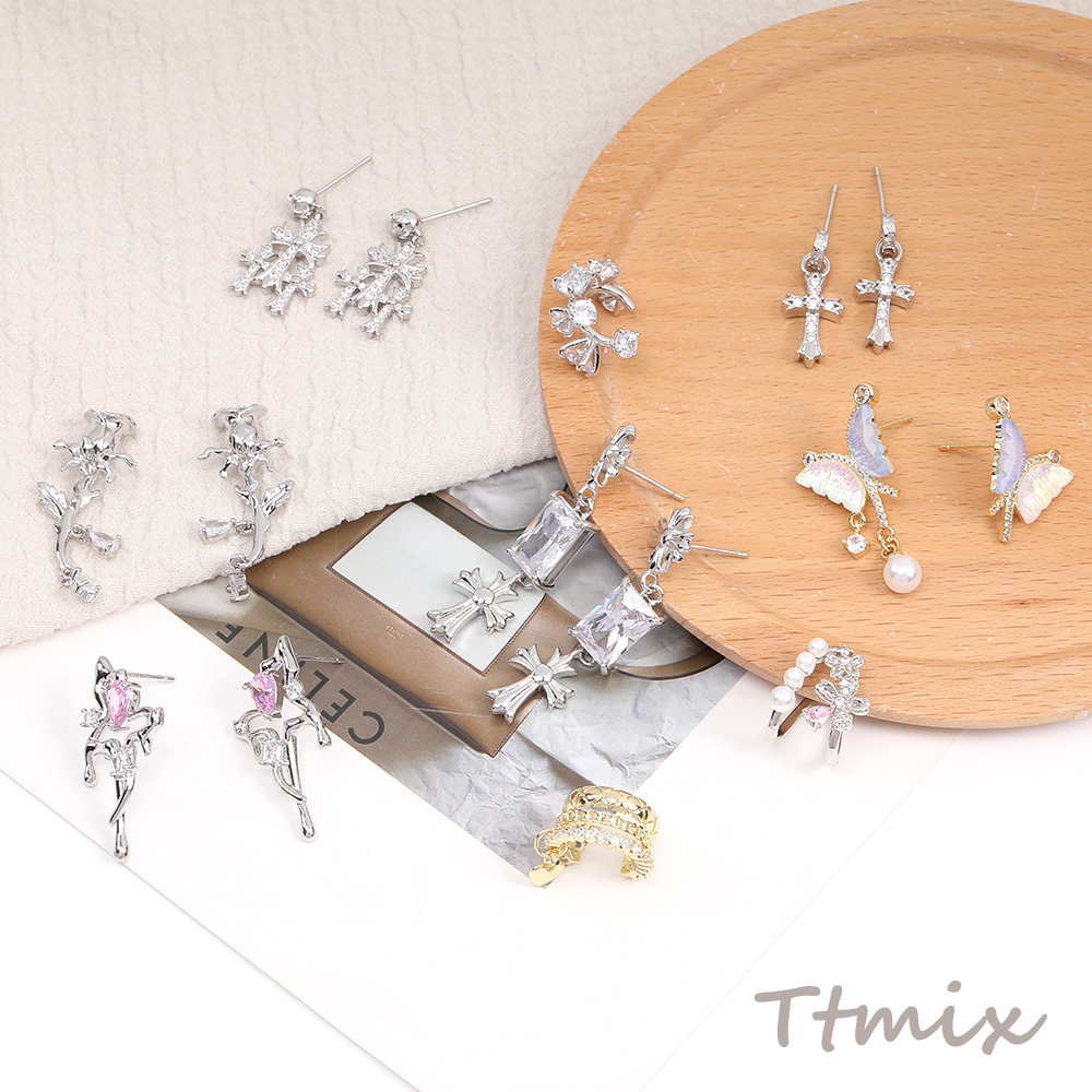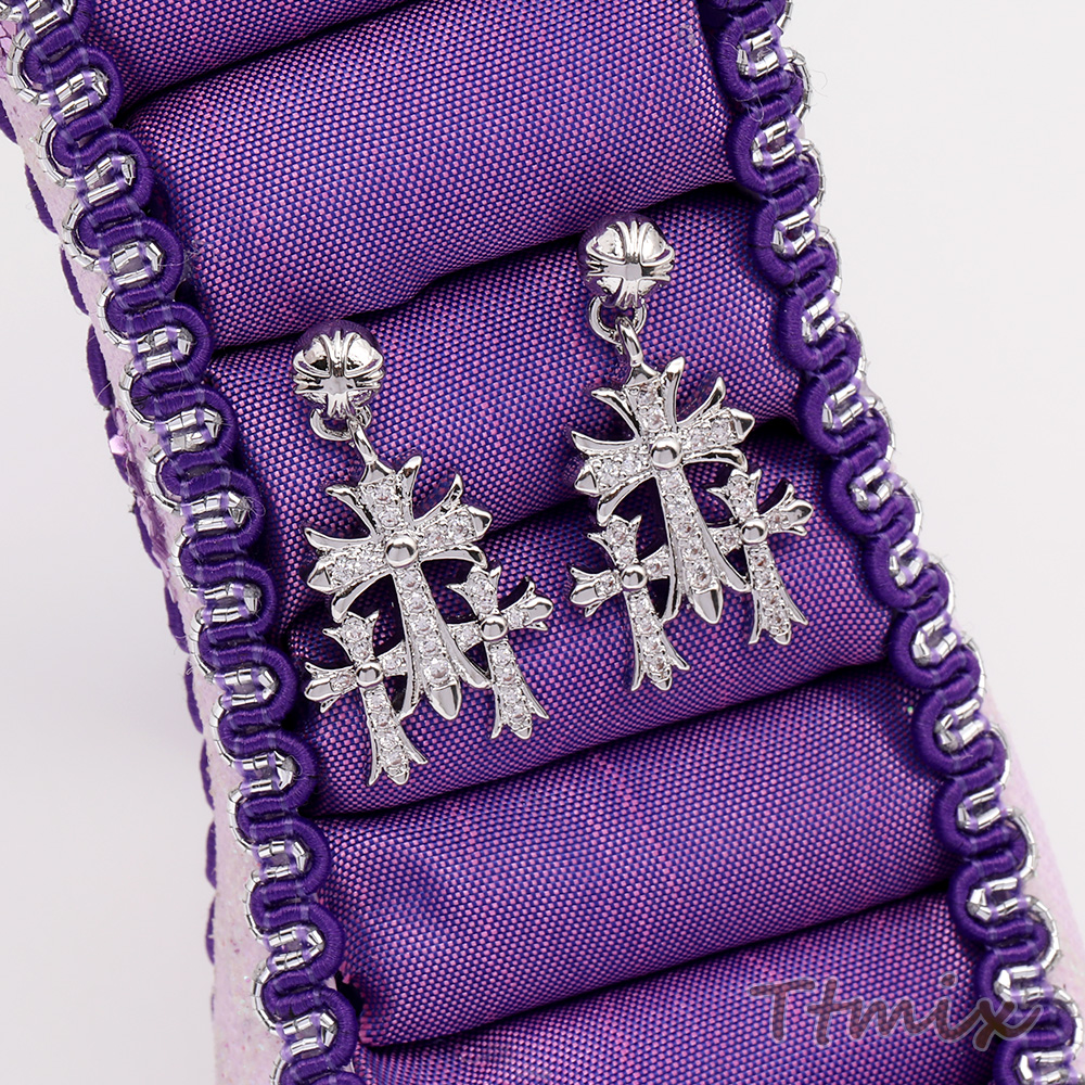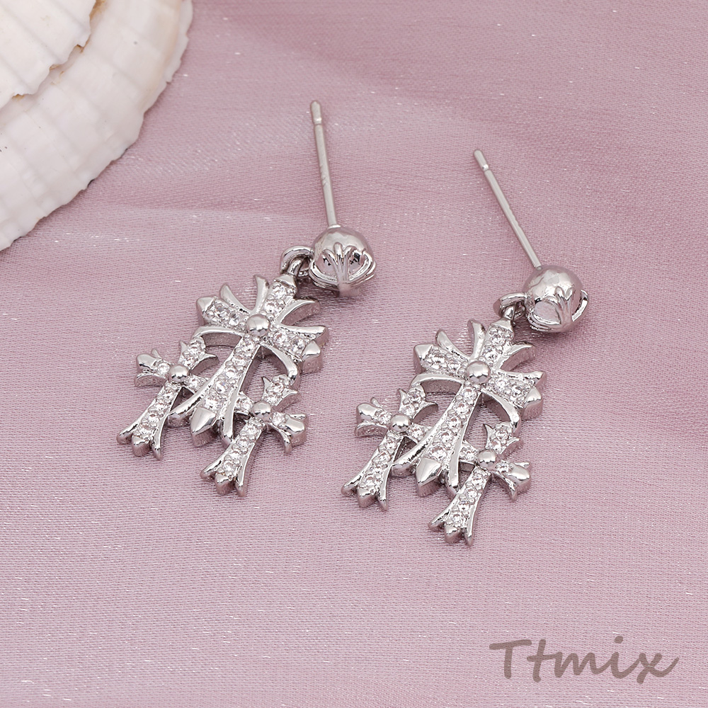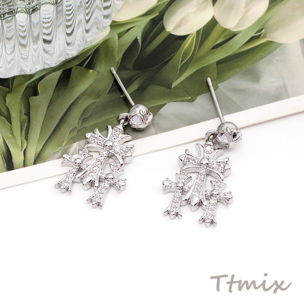 ジルコニアピアス デザインピアス 14×26mm ロジウム(1ペア)