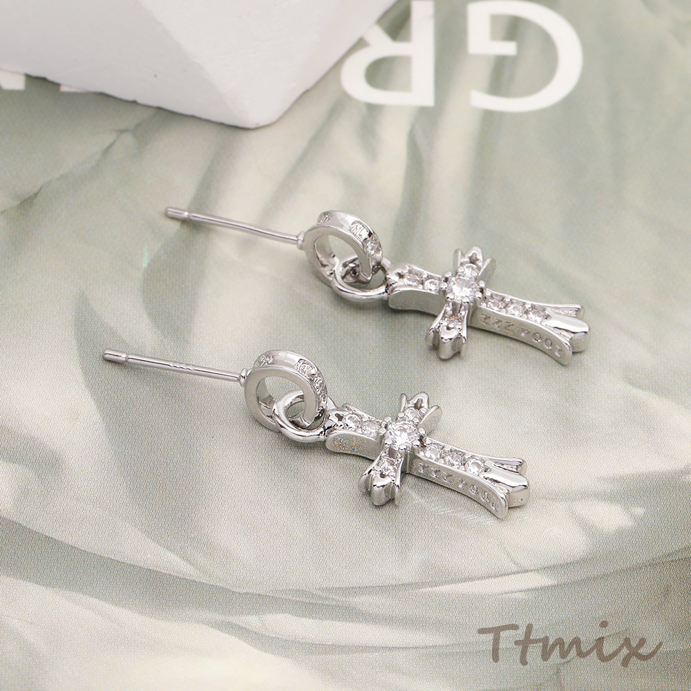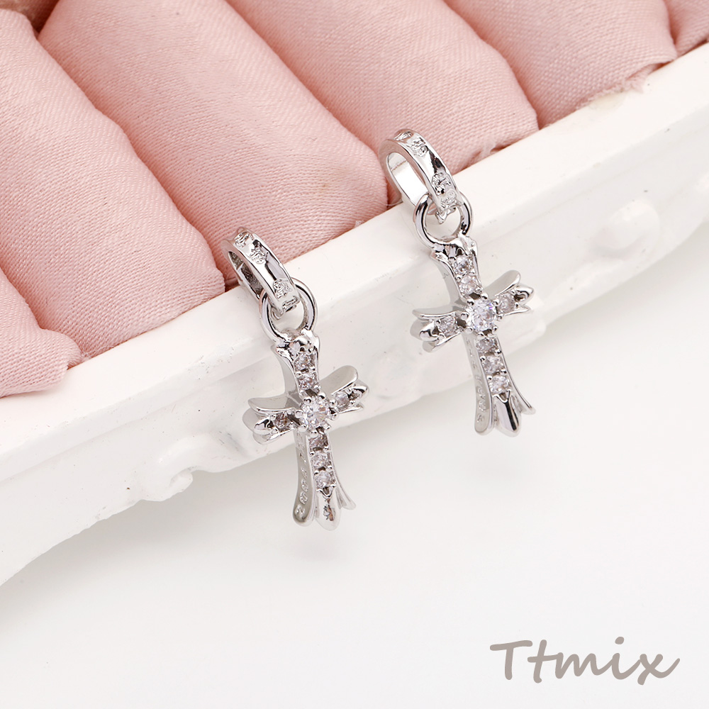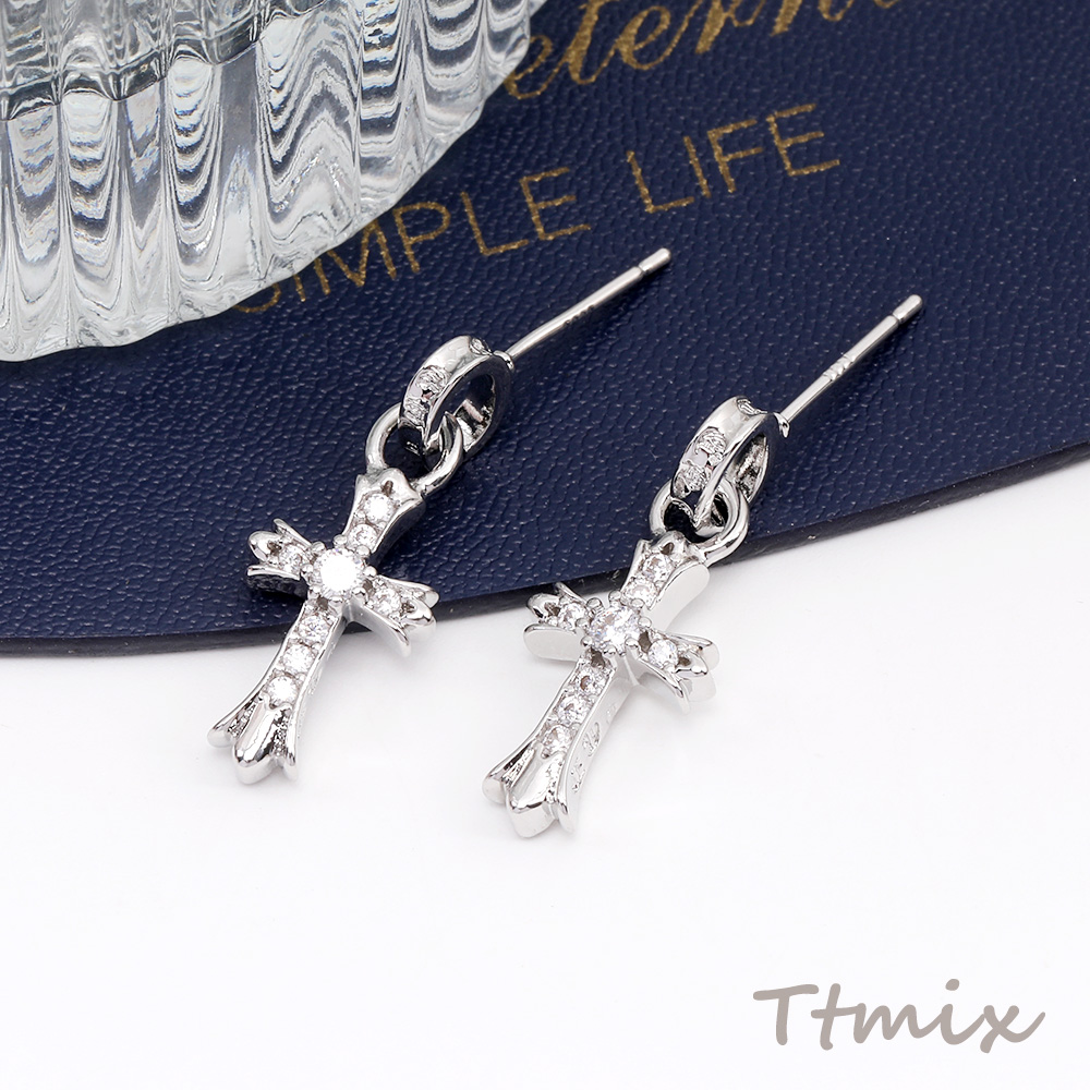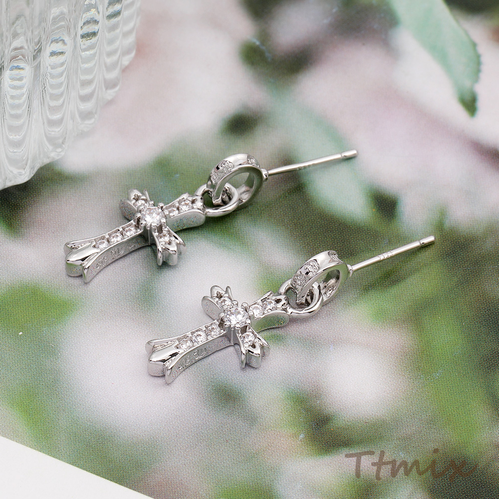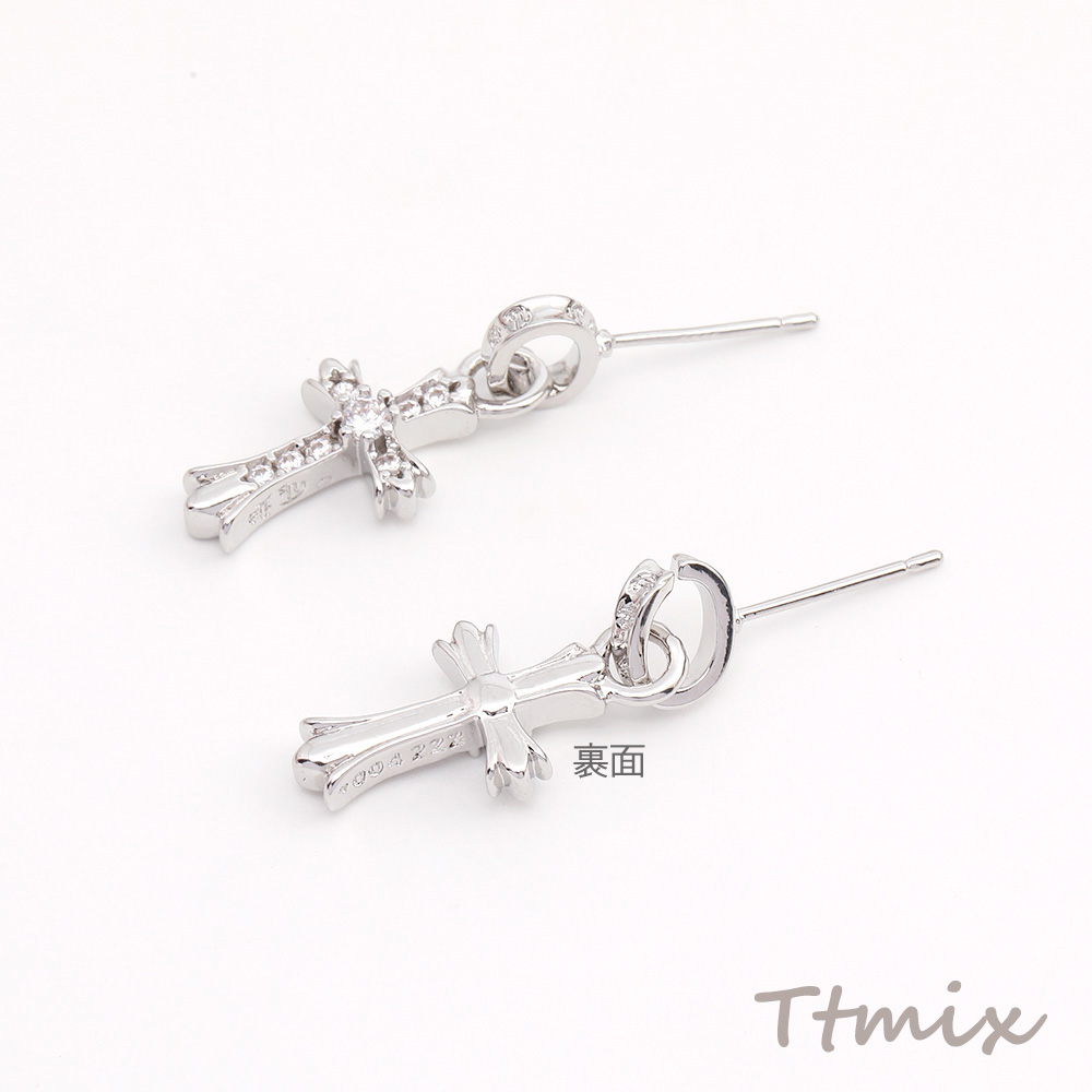 ジルコニアピアス デザインピアス 十字架 10×25mm ロジウム(1ペア)
